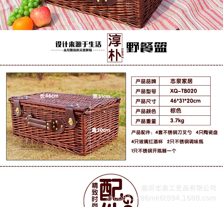 Comercio exterior personalizado canasta de picnic trenzada en sauce canasta de frutas trenzada a mano canasta de picnic al por mayor
