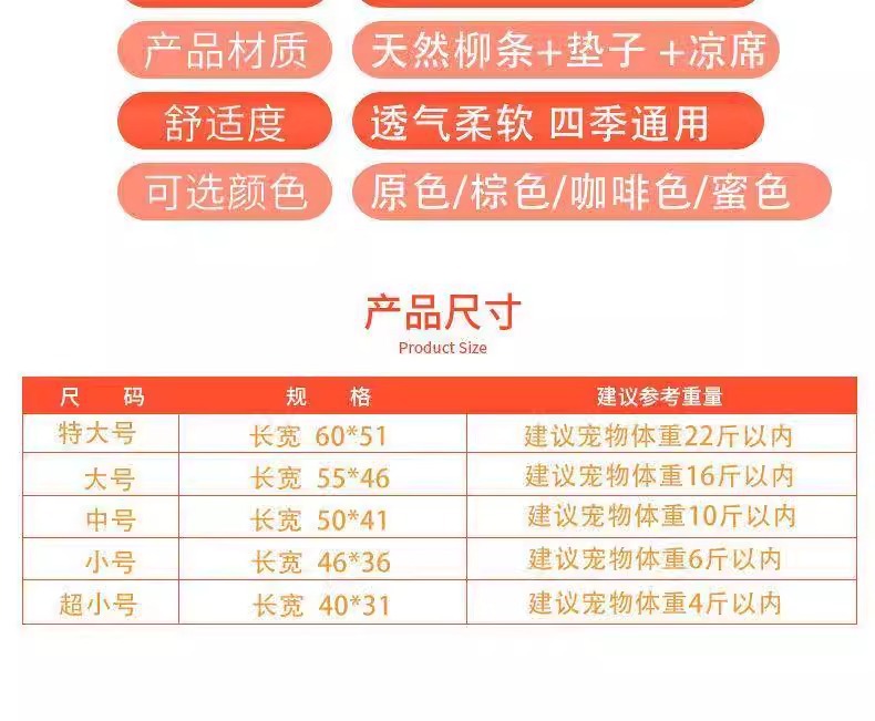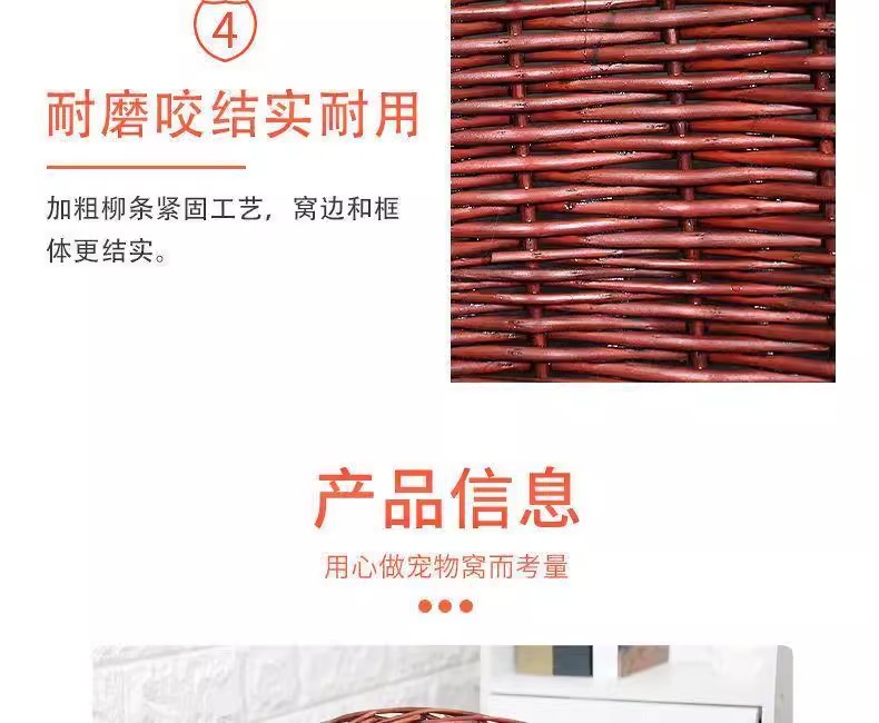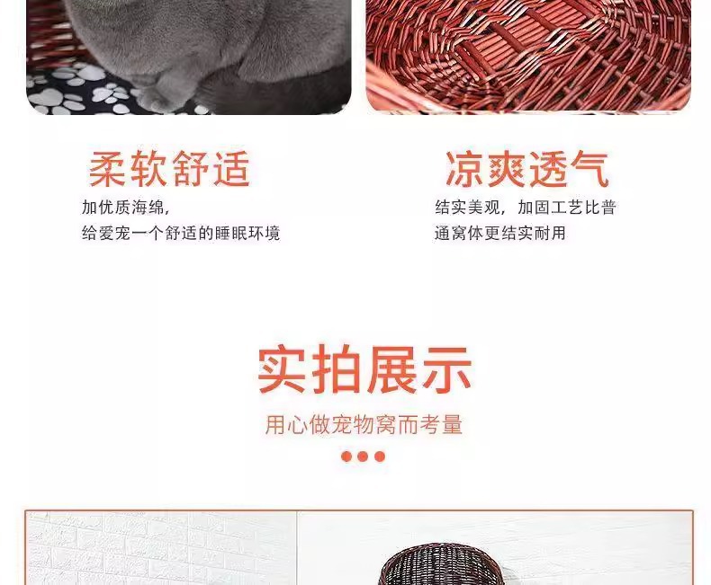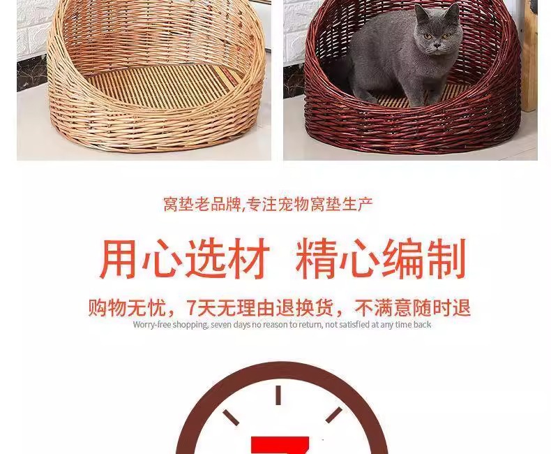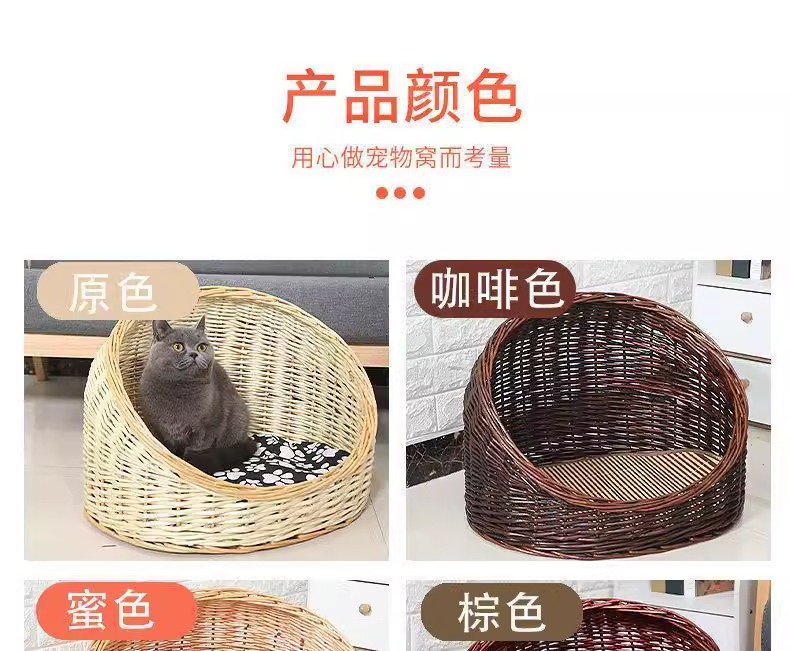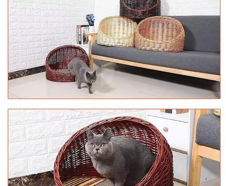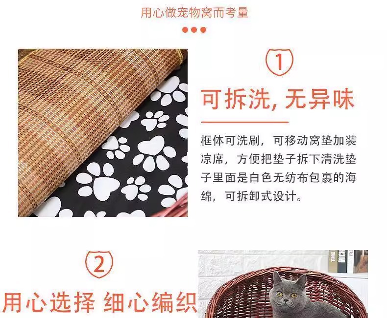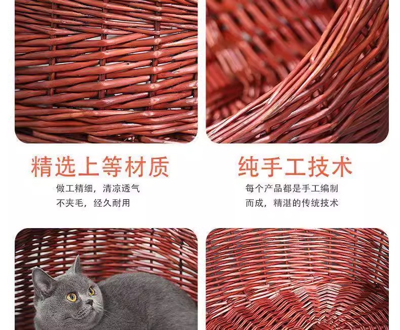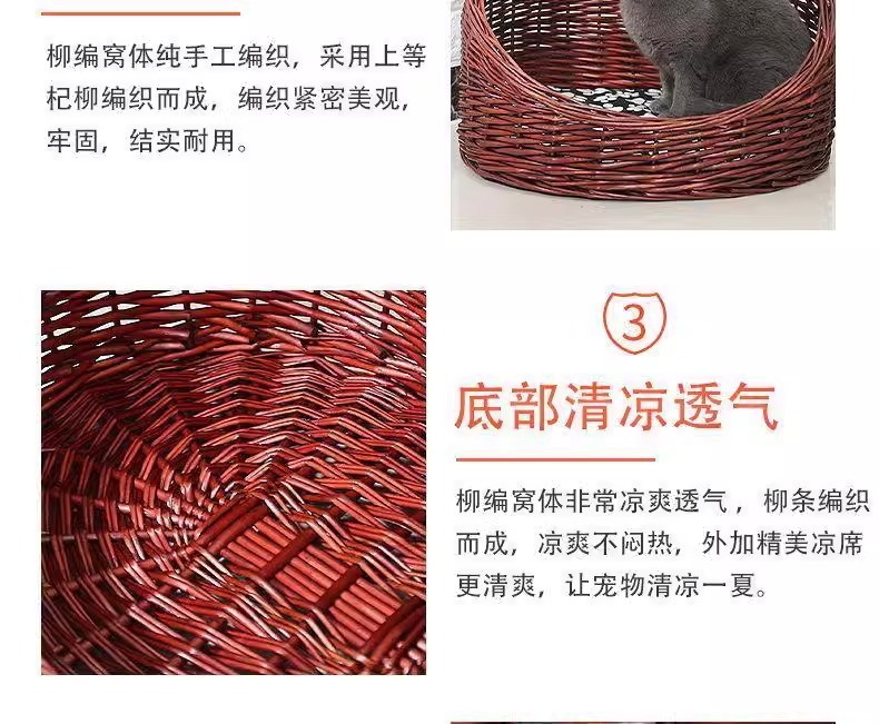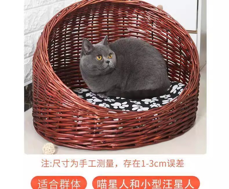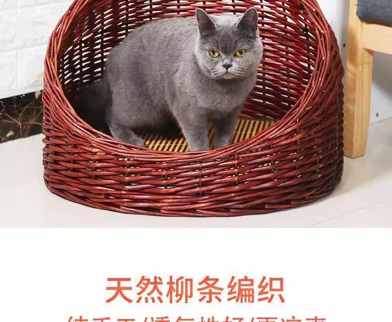 Perro de mimbre, nido para gatos, cuatro estaciones, casa para gatos de ratán universal, verano, perro pequeño y mediano extraíble y lavable, nido para mascotas tejido de peluche