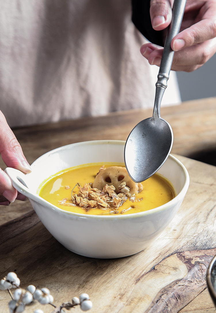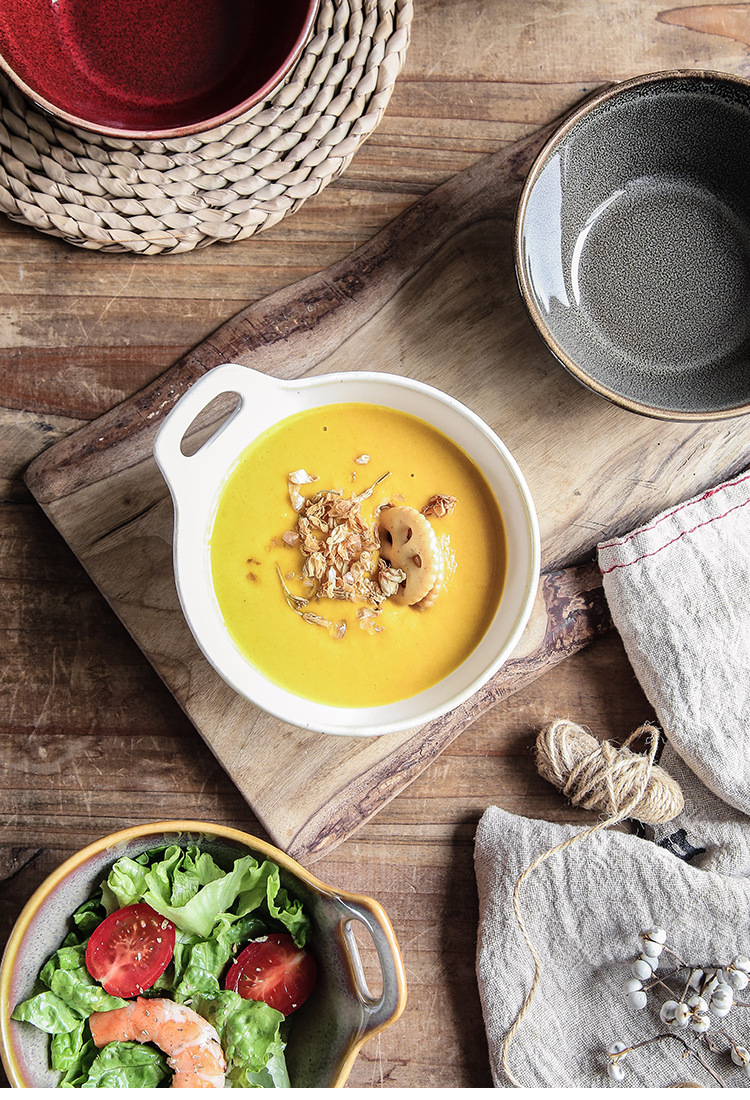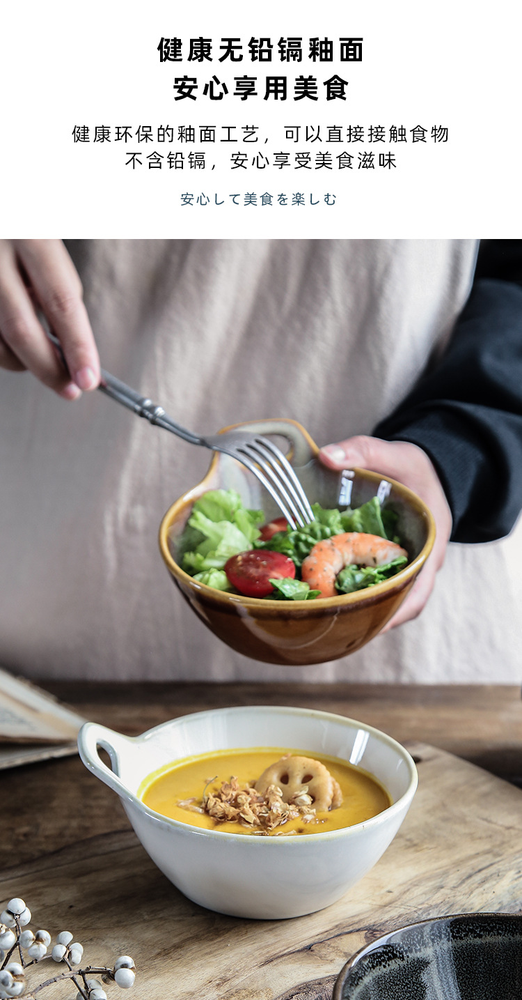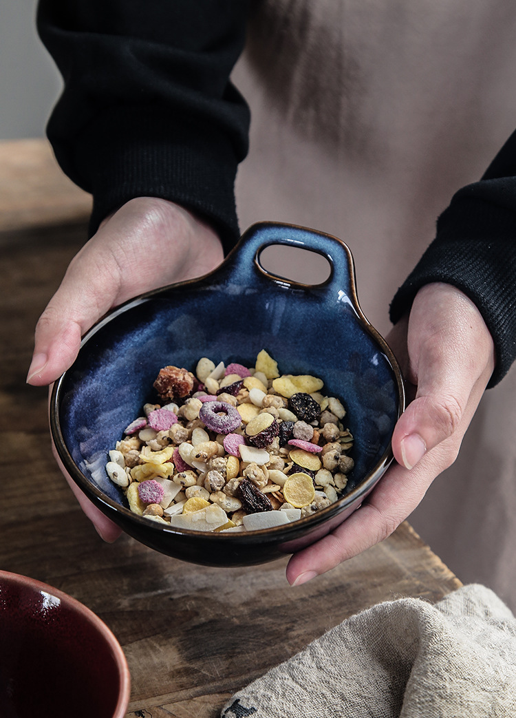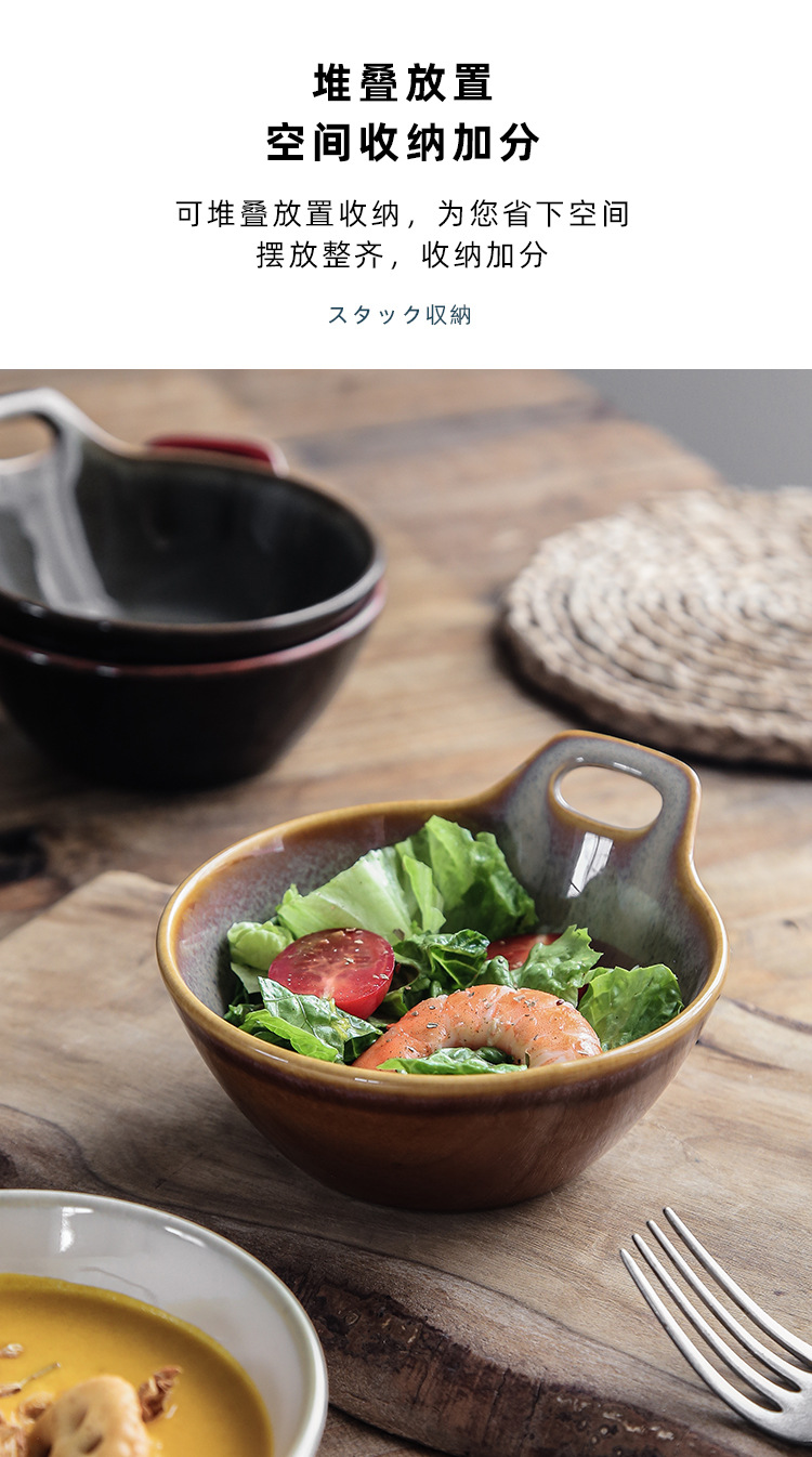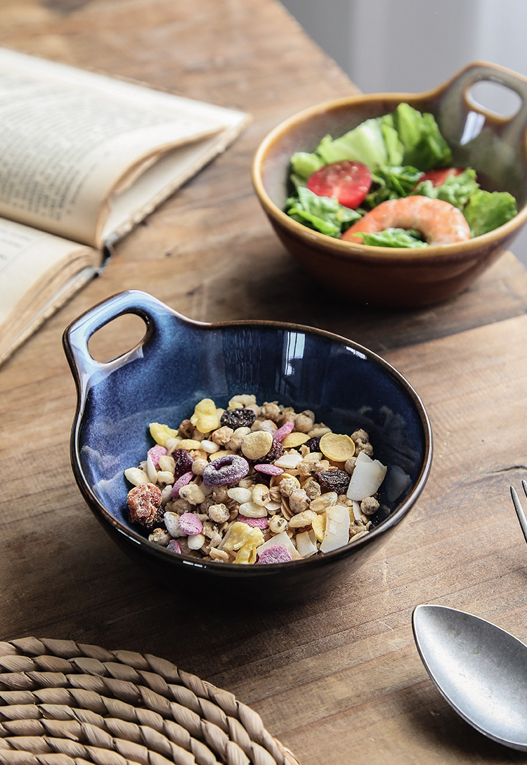 Horno transfronterizo tazón de una sola manija tazón de avena tazón de ensalada de frutas cuenco de postre linda chica tazón para hornear