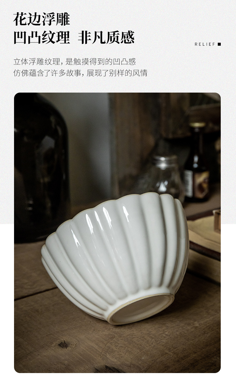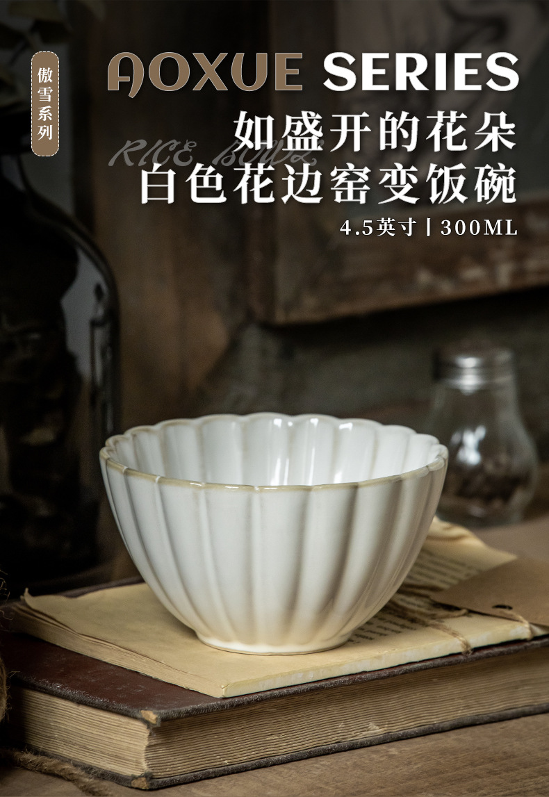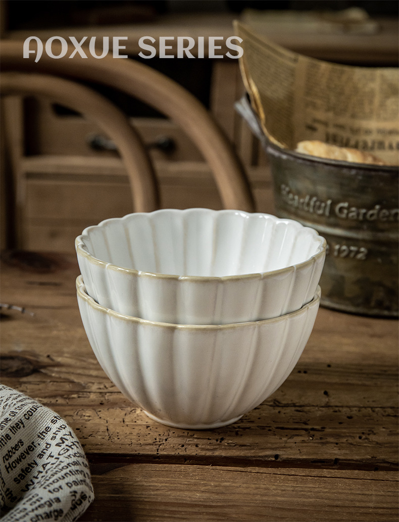 Aoxue super hermoso cuenco de encaje cuenco de 4,5 pulgadas cuenco de arroz de cerámica en relieve horno retro se convierte en cuenco pequeño cuenco de congee de alto valor