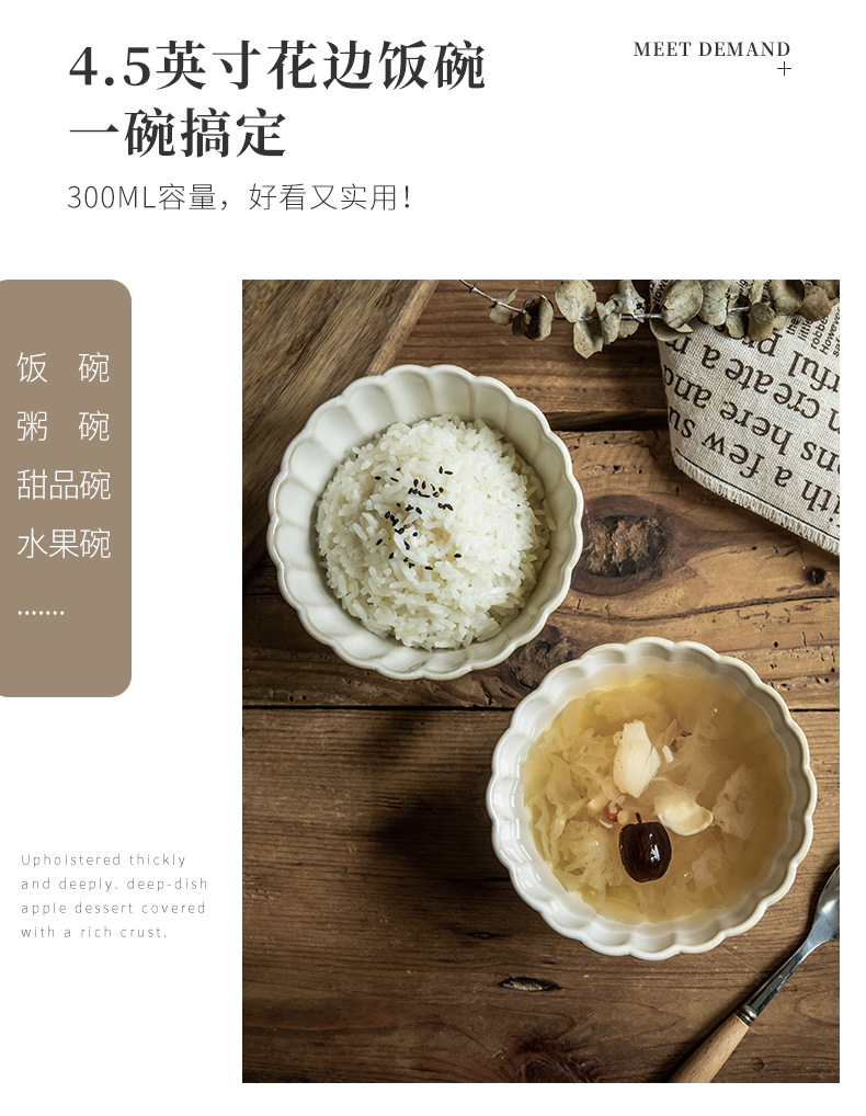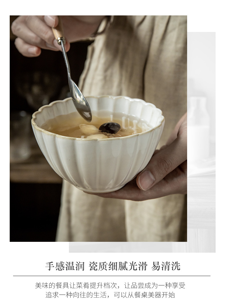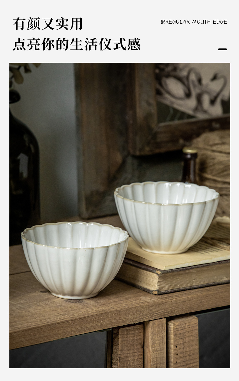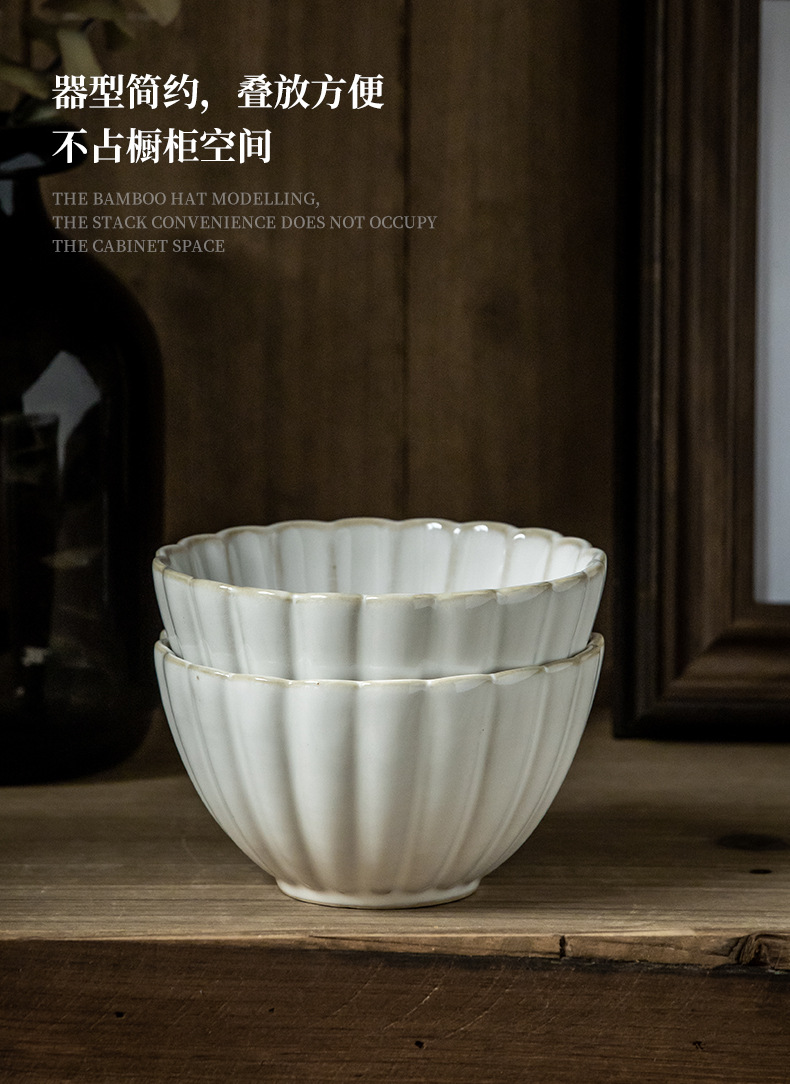 Aoxue super hermoso cuenco de encaje cuenco de 4,5 pulgadas cuenco de arroz de cerámica en relieve horno retro se convierte en cuenco pequeño cuenco de congee de alto valor