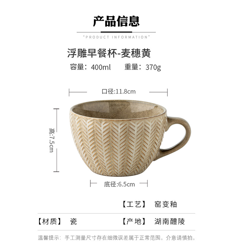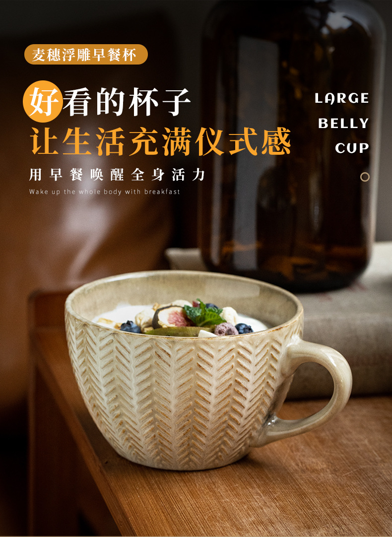 Creativo trigo oído alivio Taza de cerámica taza de avena tendencia de la personalidad taza de la vendimia taza de café taza de agua del hogar