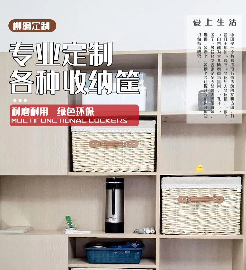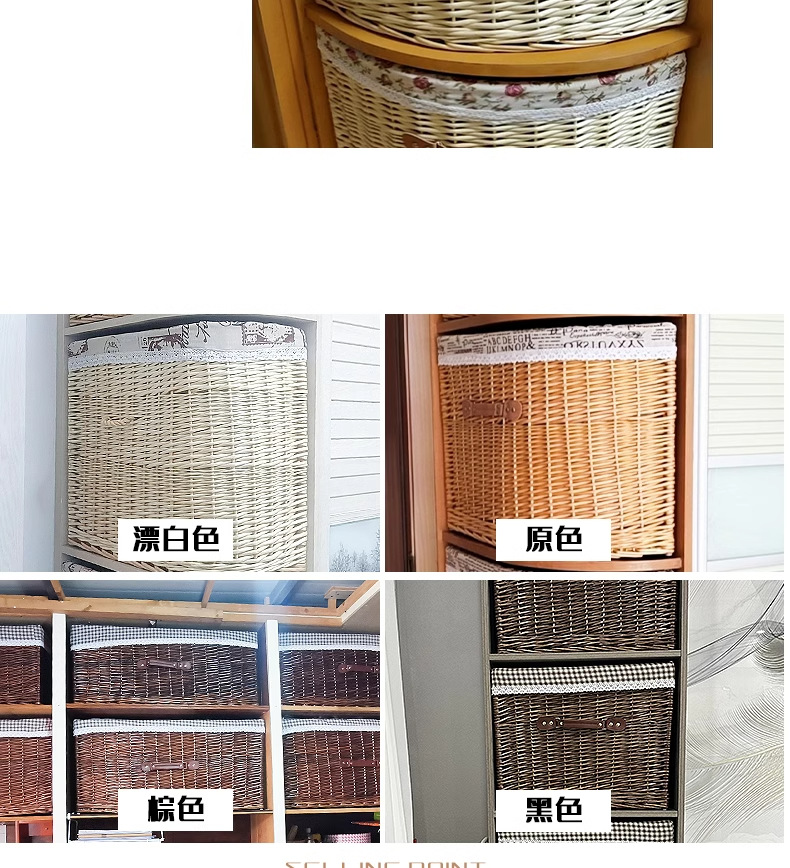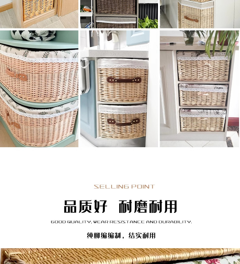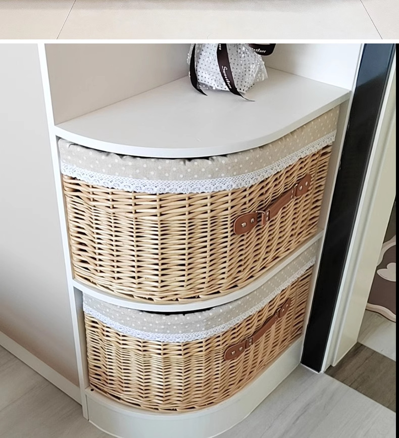 Caja de almacenamiento de tipo cajón de trenzado de sauce con cuadrícula de esquina de forma especial en forma de sector triangular semicircular