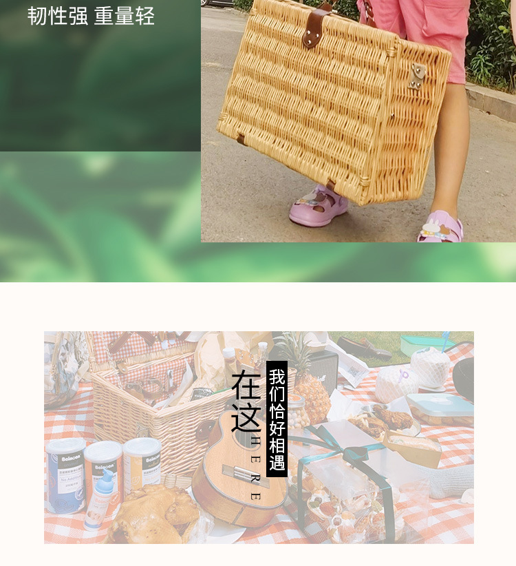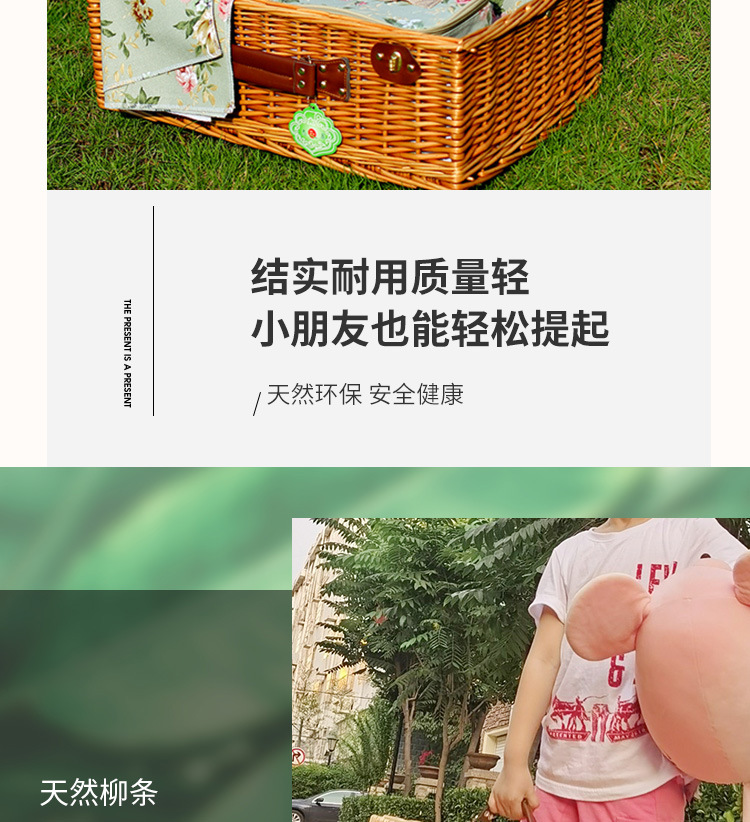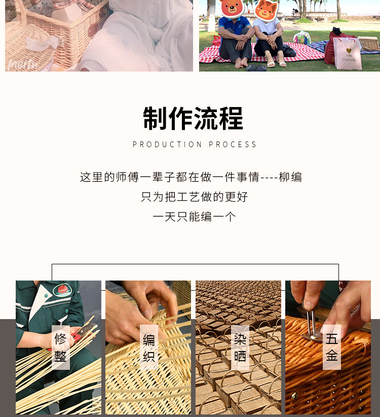 Fábrica de stock de cestas de mano de sauce con cubierta de cestas de regalo de caña al aire libre con cubierta de cubierta de cestas de picnic de estilo retro