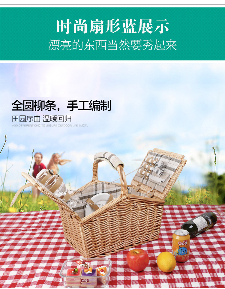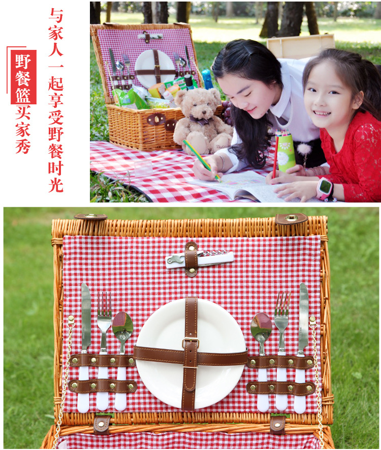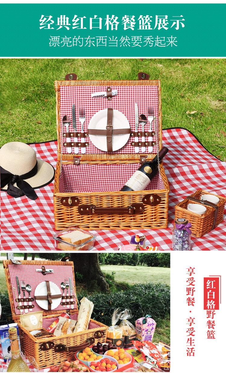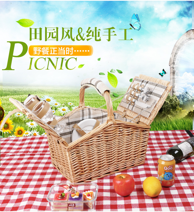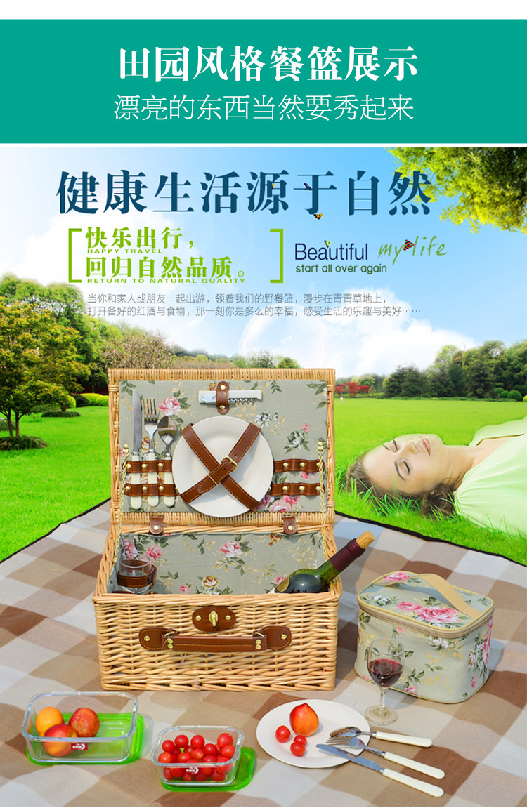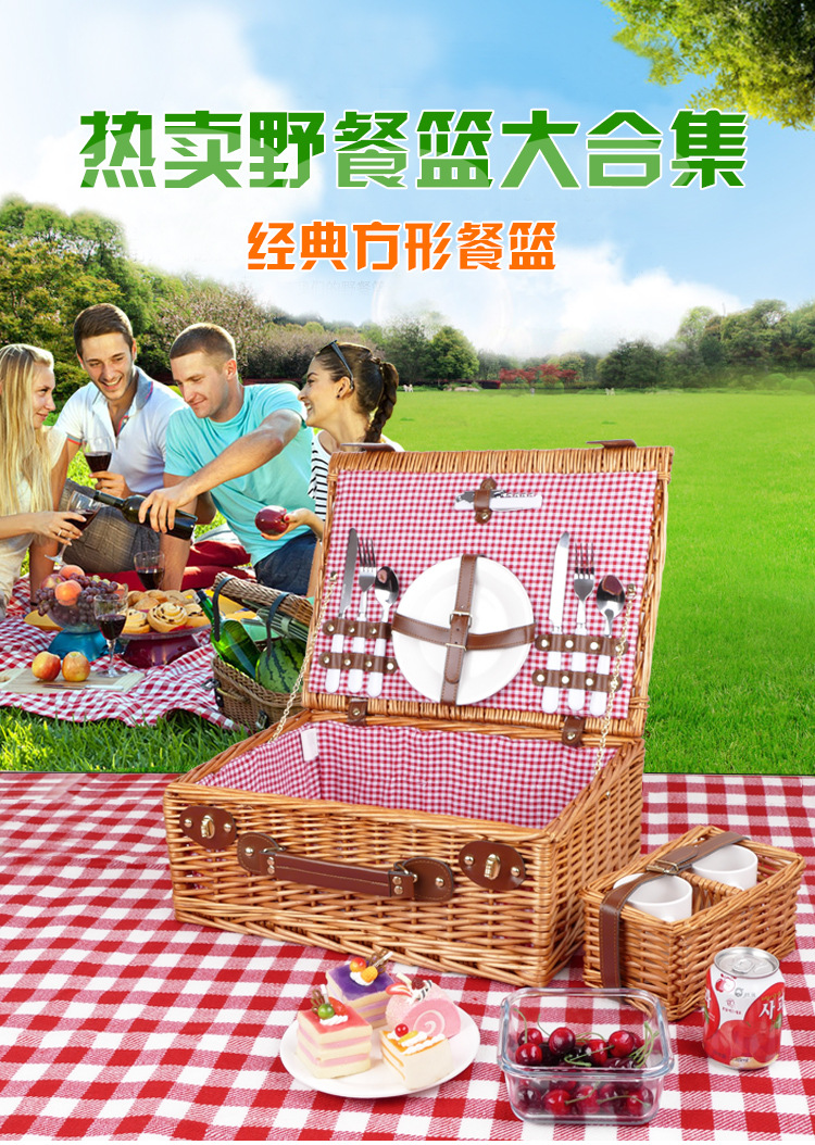 Cesta de regalo portátil de ratán de stock de fábrica con tapa Tour de primavera con vajilla Cesta de frutas Cesta de picnic de mimbre hecha a mano