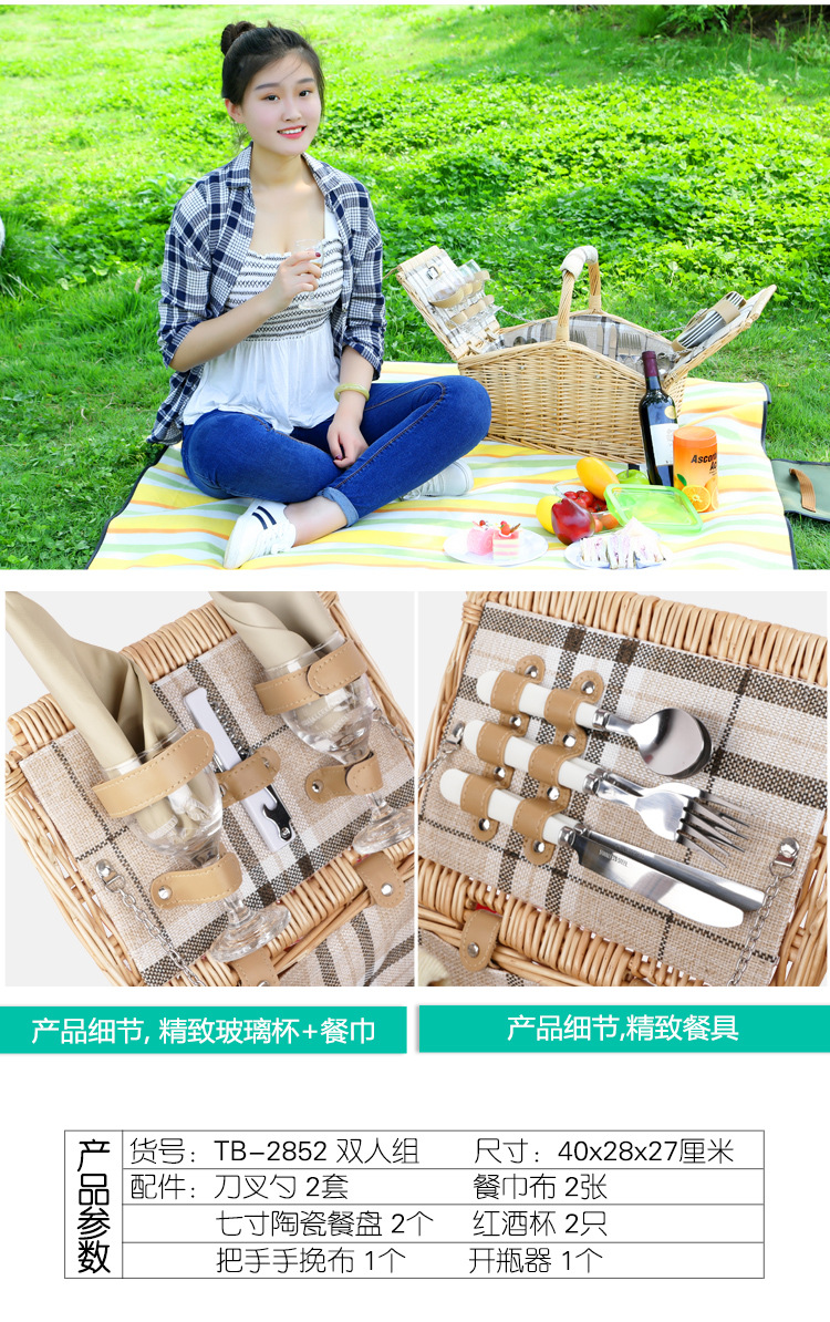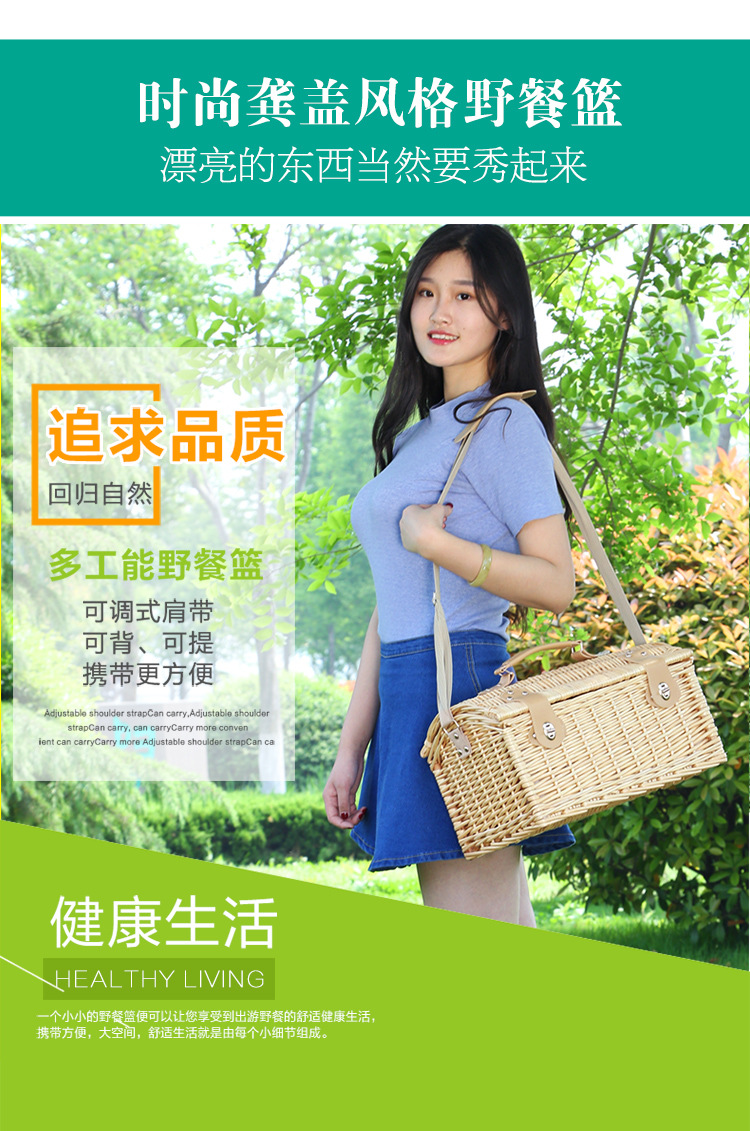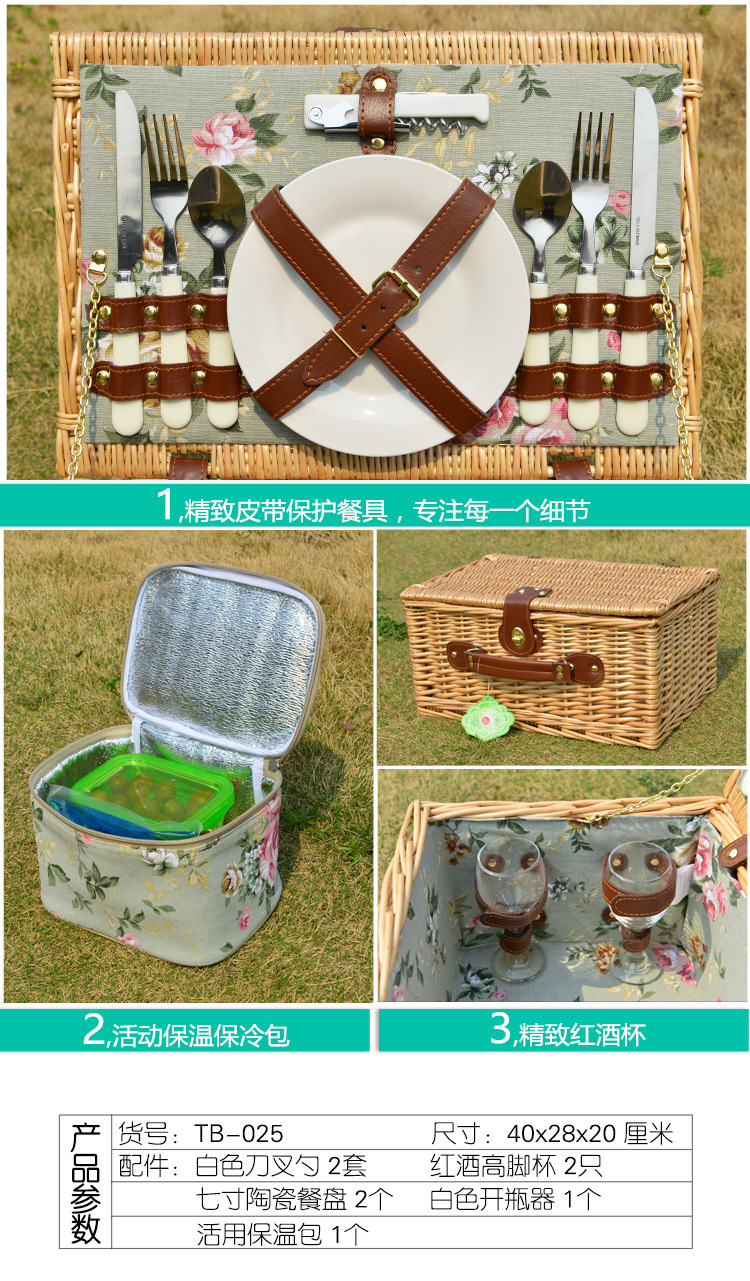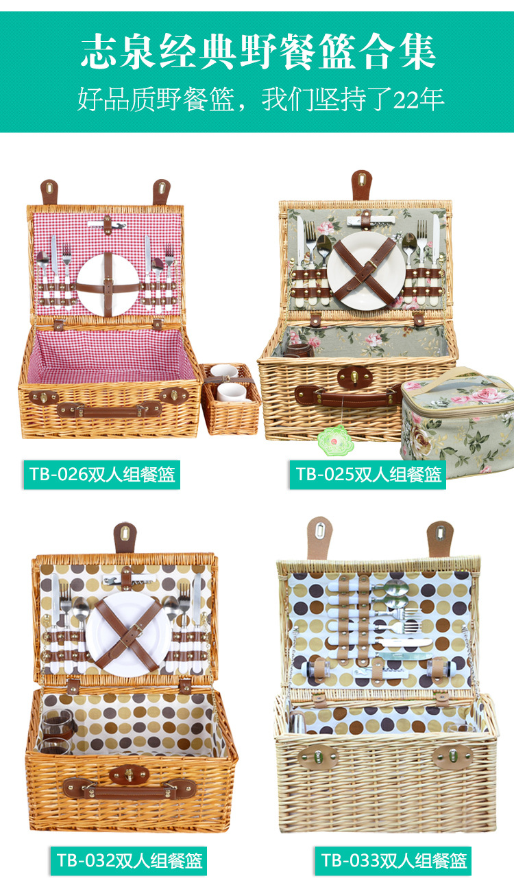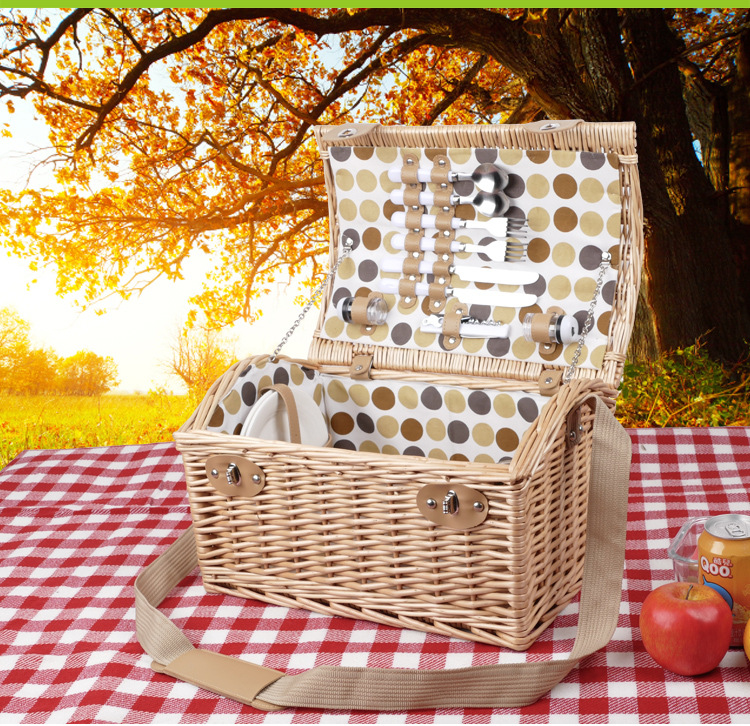 Cesta de regalo portátil de ratán de stock de fábrica con tapa Tour de primavera con vajilla Cesta de frutas Cesta de picnic de mimbre hecha a mano