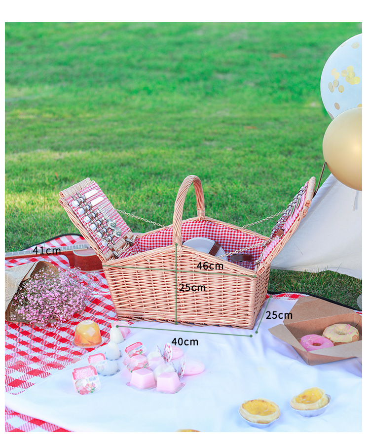 Fábrica de puntos de mano de sauce con cubierta de mano cesta de regalo primavera con cubierta de mesa idyllic ins cesta de picnic de hiedra