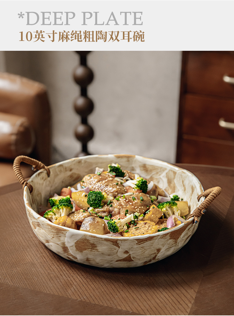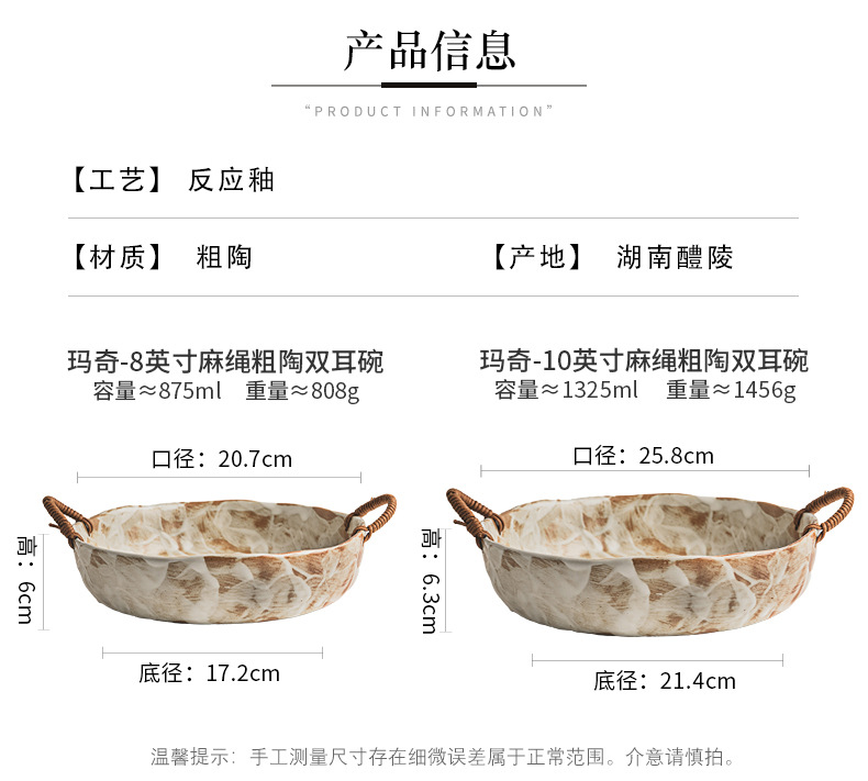 | Color | Tazón de cerámica de doble oreja gruesa de cuerda de cáñamo de 8 pulgadas, tazón de cerámica de doble oreja gruesa de cuerda de cáñamo de 10 pulgadas |