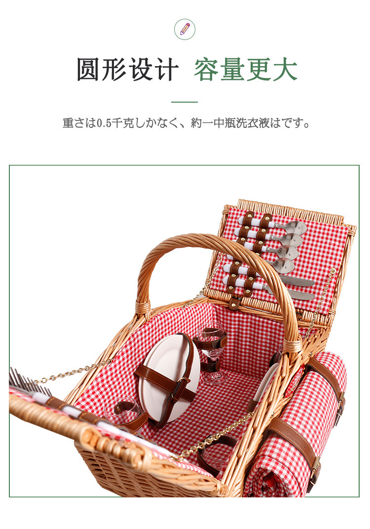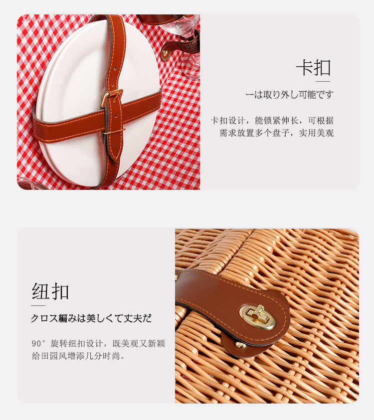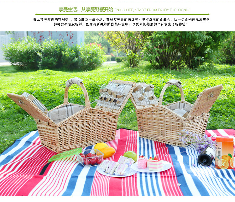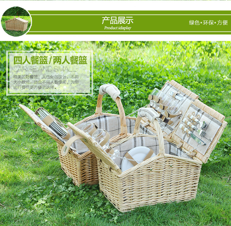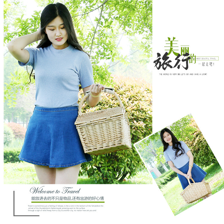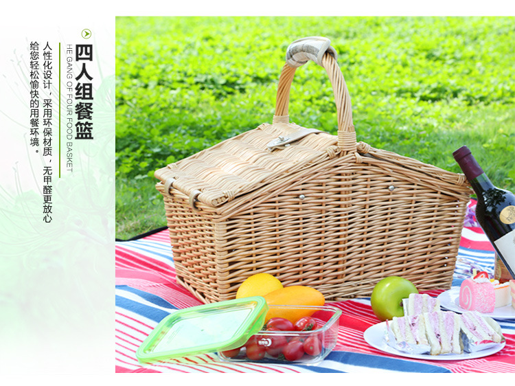 Fábrica de punto de mano mano de sauce acompañado de cestas de regalo con cubierta de cestas de almacenamiento de caña con cubierta de mesa de primavera cesta de picnic
