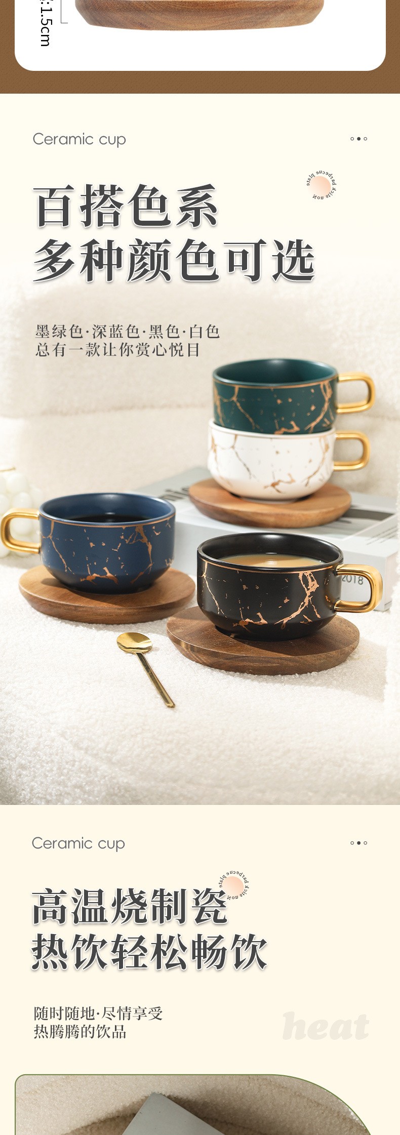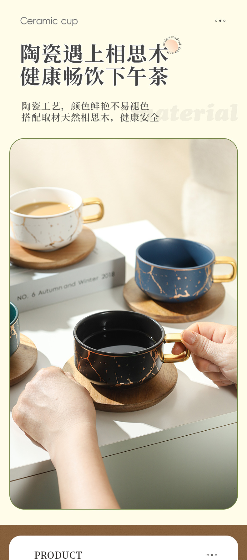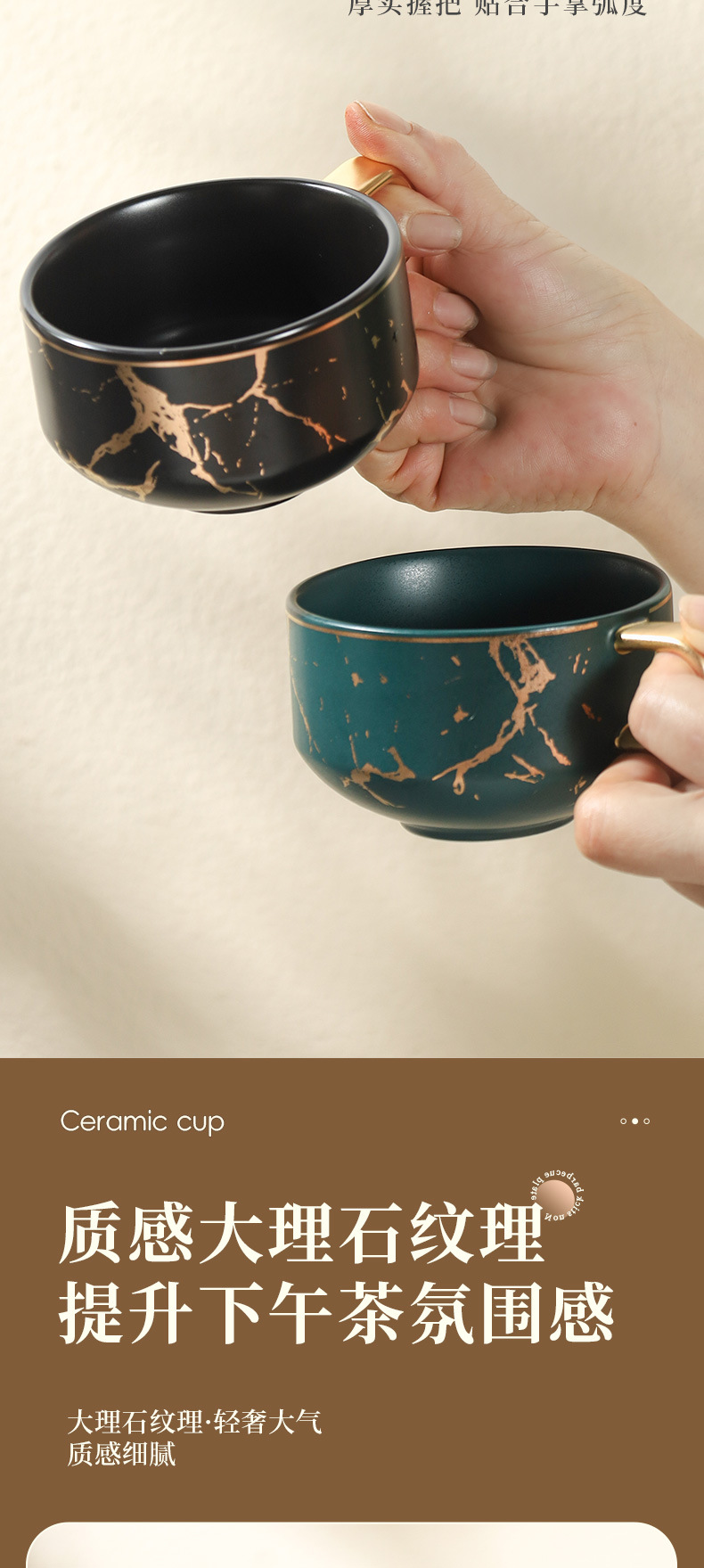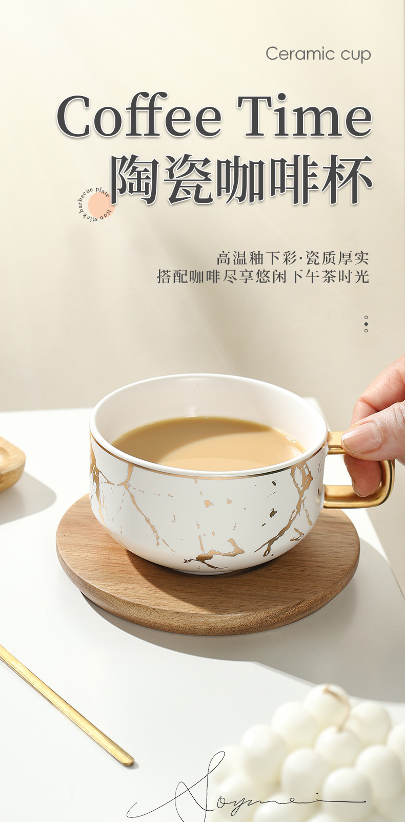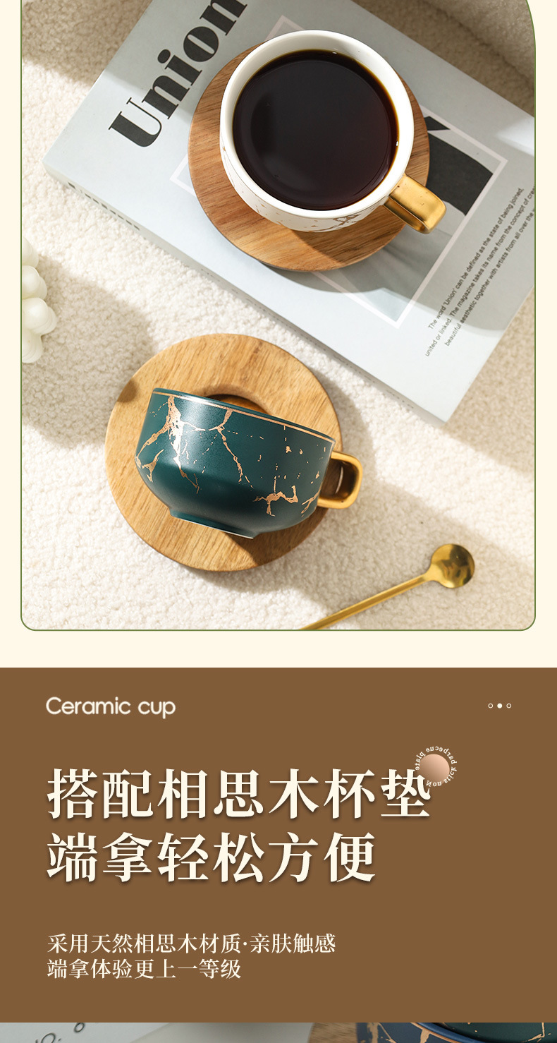 Juego de tazas y platillos de café de cerámica minimalista moderno, taza de mármol, taza de leche de desayuno para el hogar, taza y platillo creativos