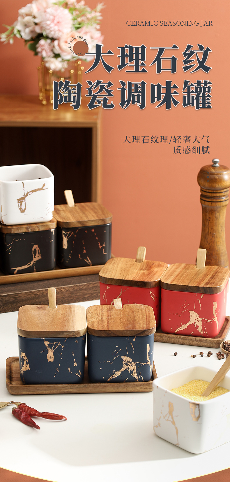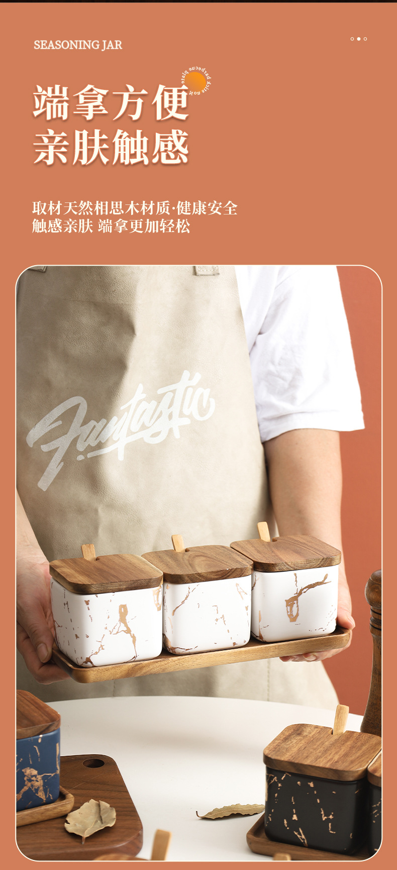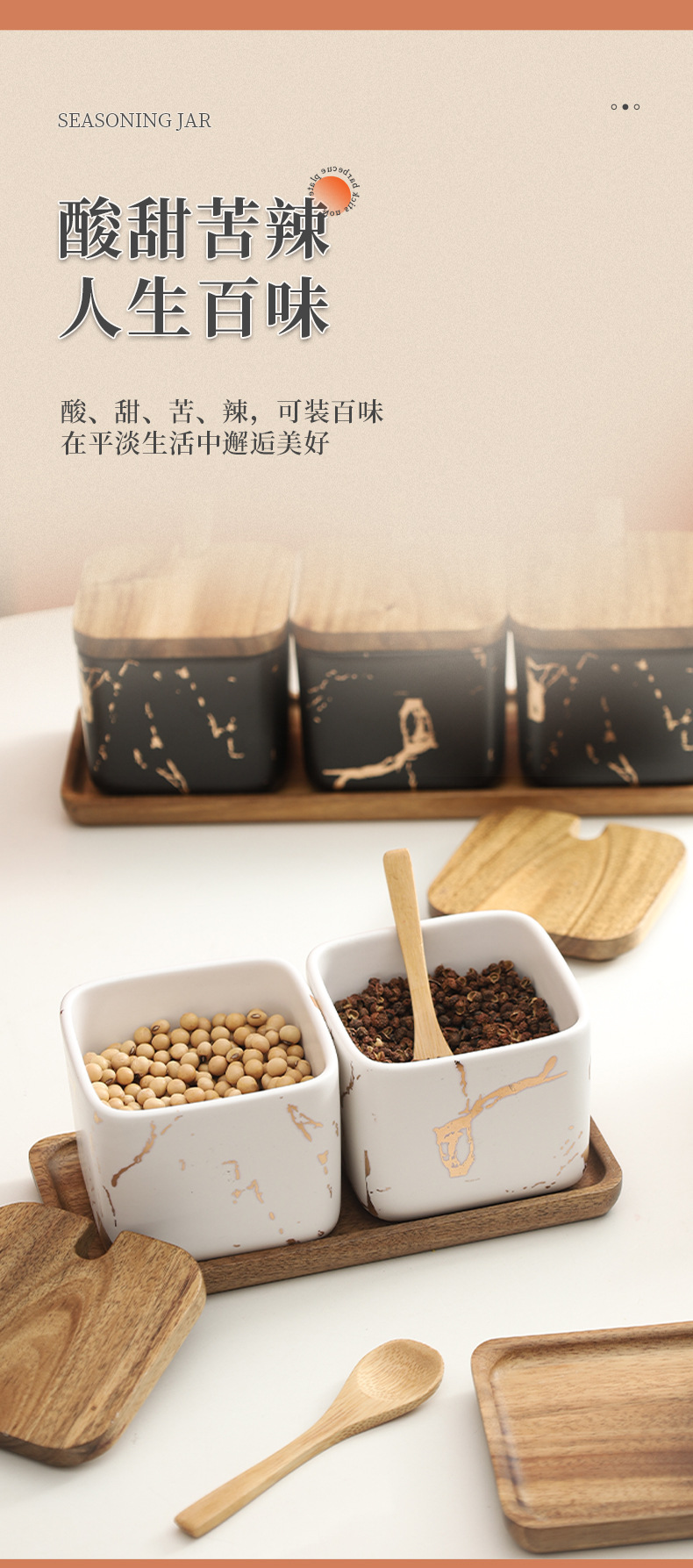Creativo simple madera sólida condimento lata conjunto de combinación de estilo nórdico al por mayor