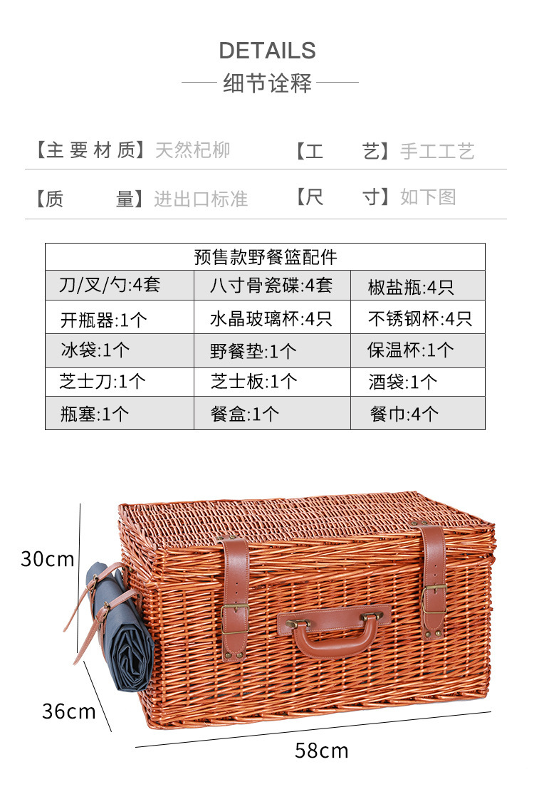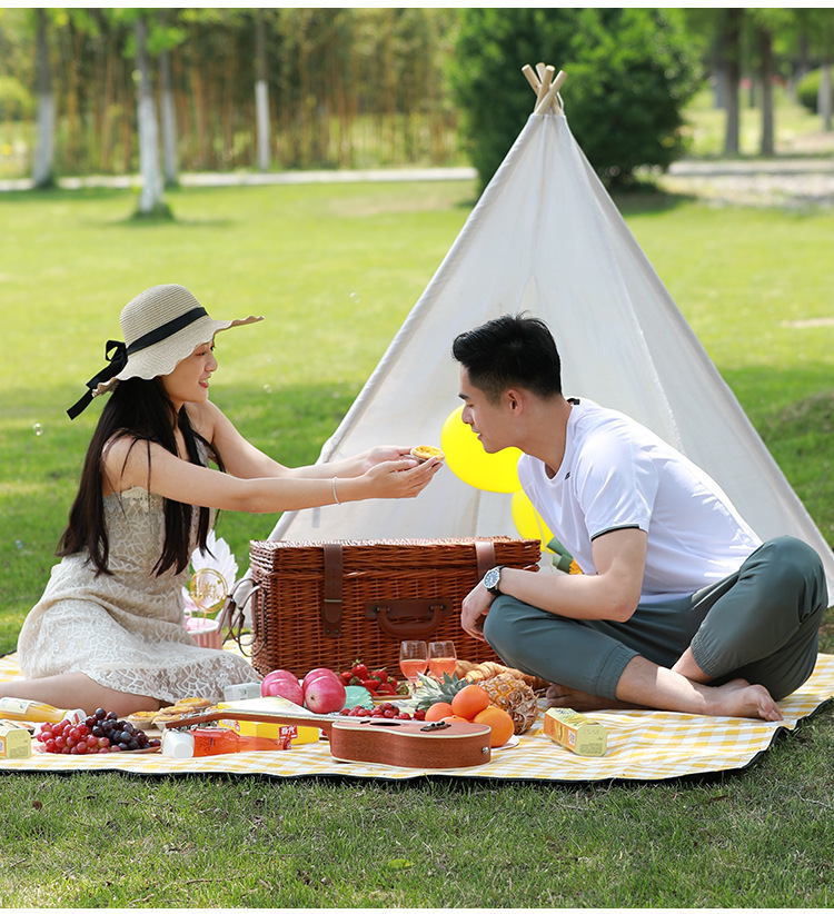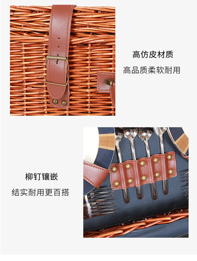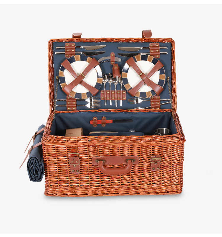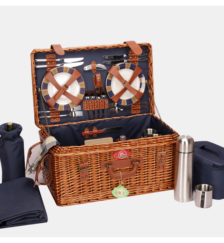 Fábrica spot comercio exterior de alta gama set de canasta de picnic al aire libre de sauce con cubiertos cojín de mesa canasta de picnic