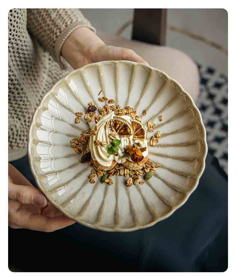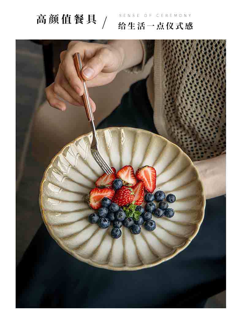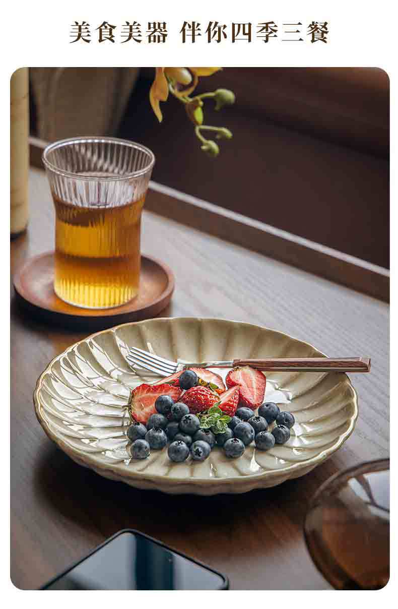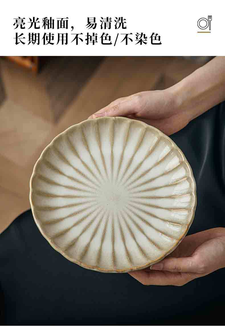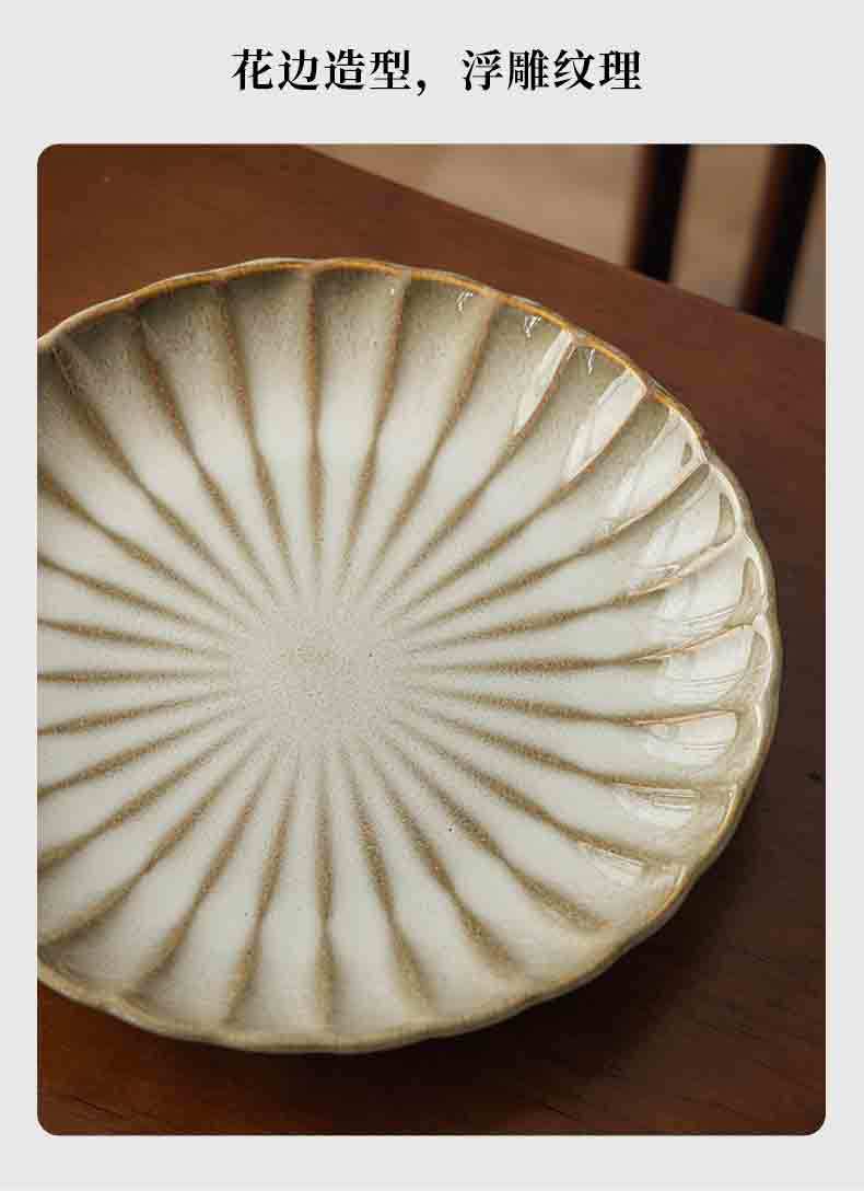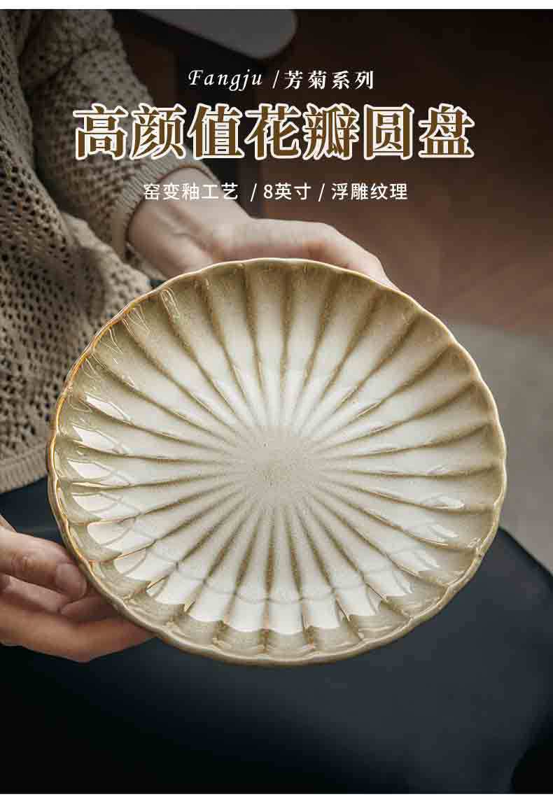 Fangju Yellow Relief 2025 nuevo plato de pasta de cerámica de disco de 8 pulgadas plato de postre retro plato de cena exportación transfronteriza