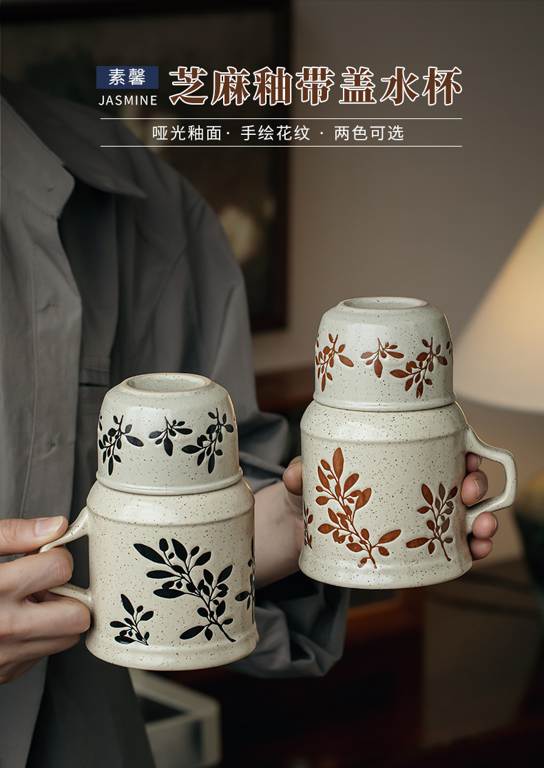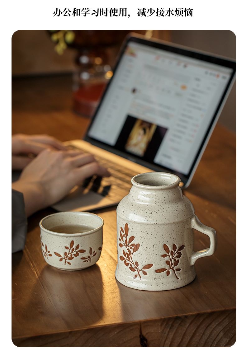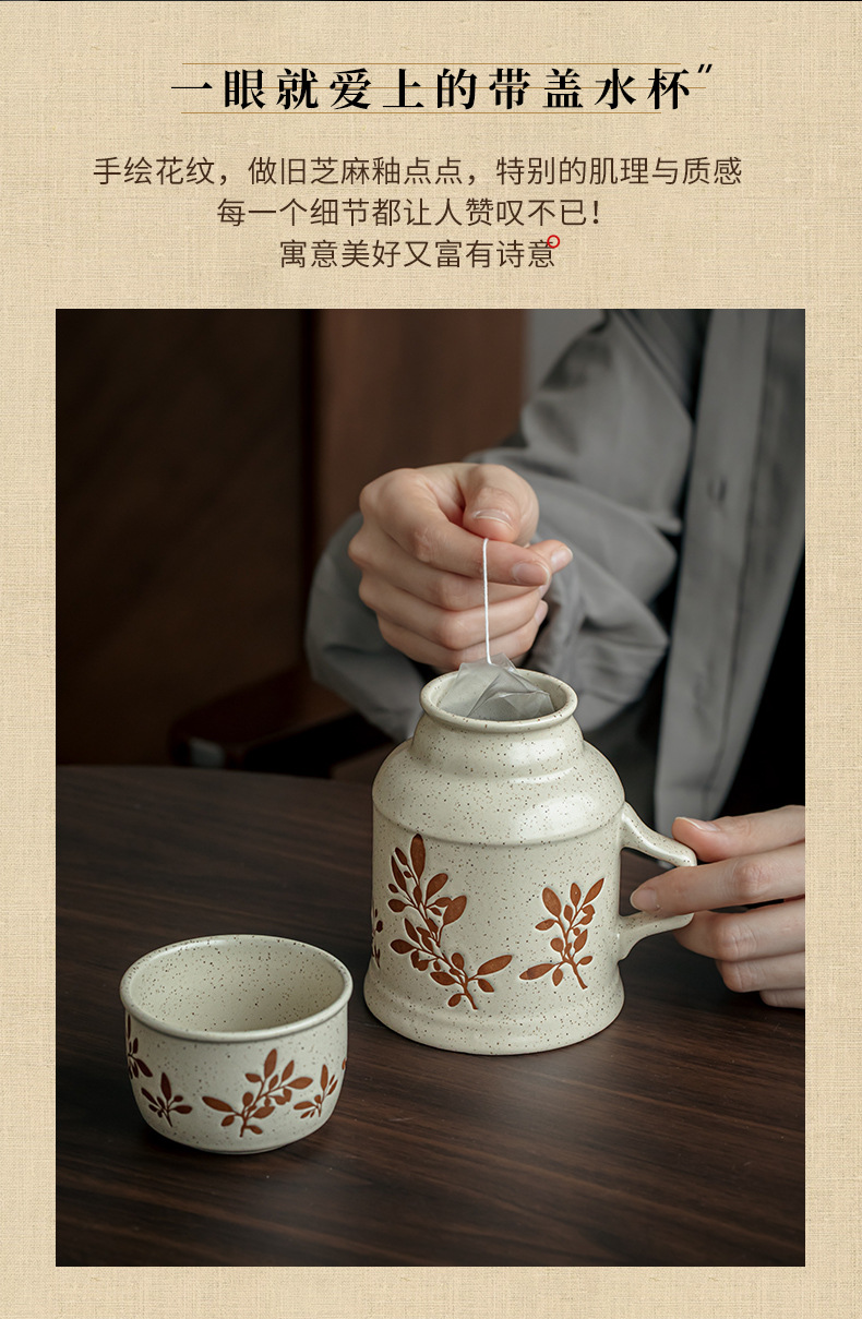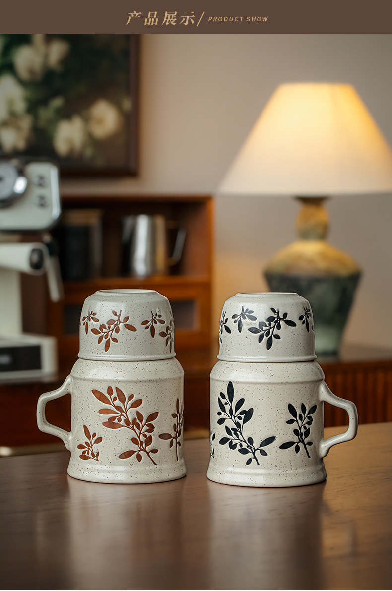 Suxin pintoresco tetera pequeña pintada a mano taza de pareja taza de té con tapa taza de agua de cerámica de alto valor con regalo a mano