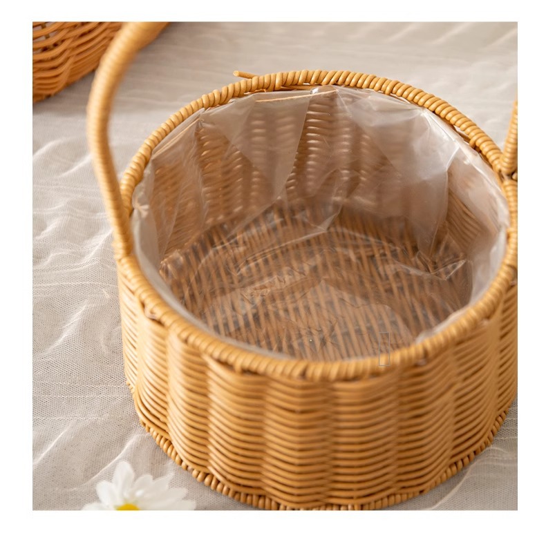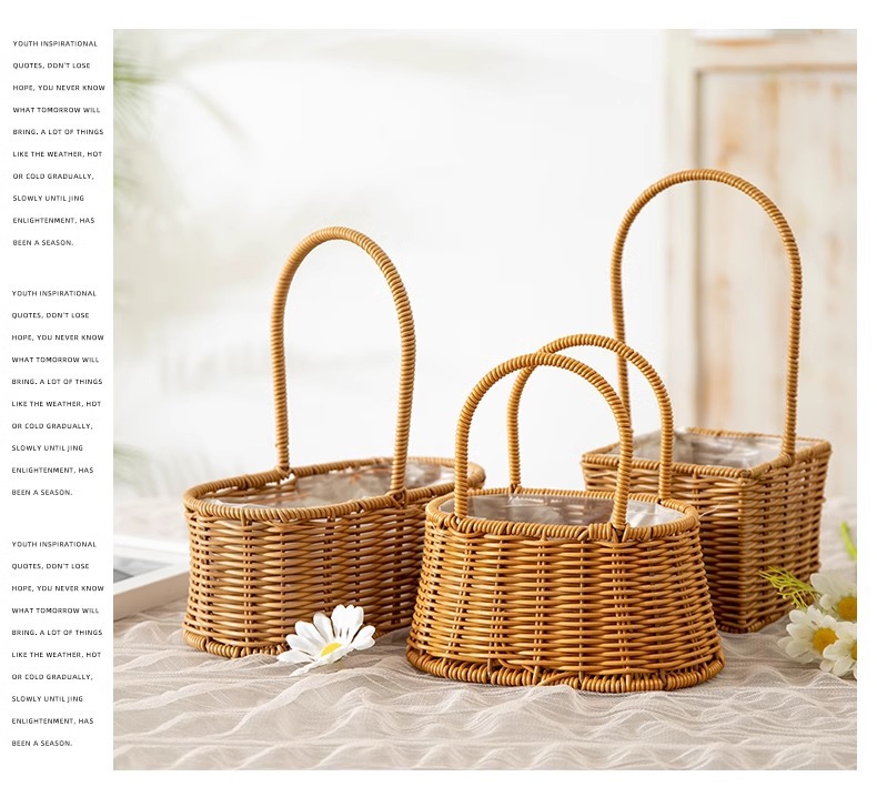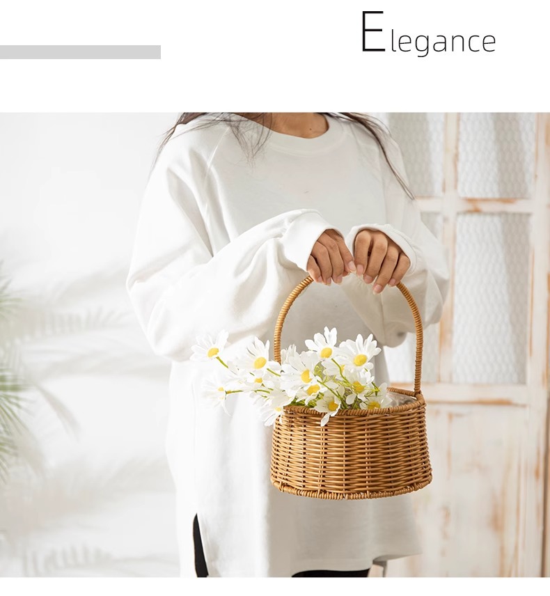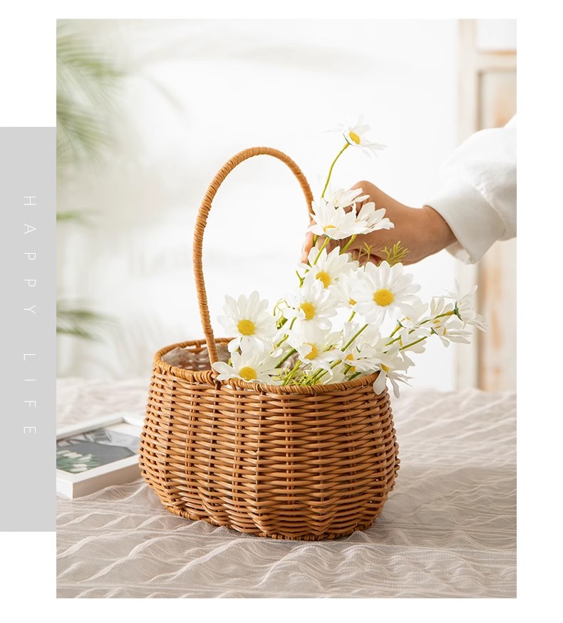 Cestas de flores de caña tejidas a mano canasta de mano pastoral creativa Qixi Festival de caña floral decorativa canasta huevo