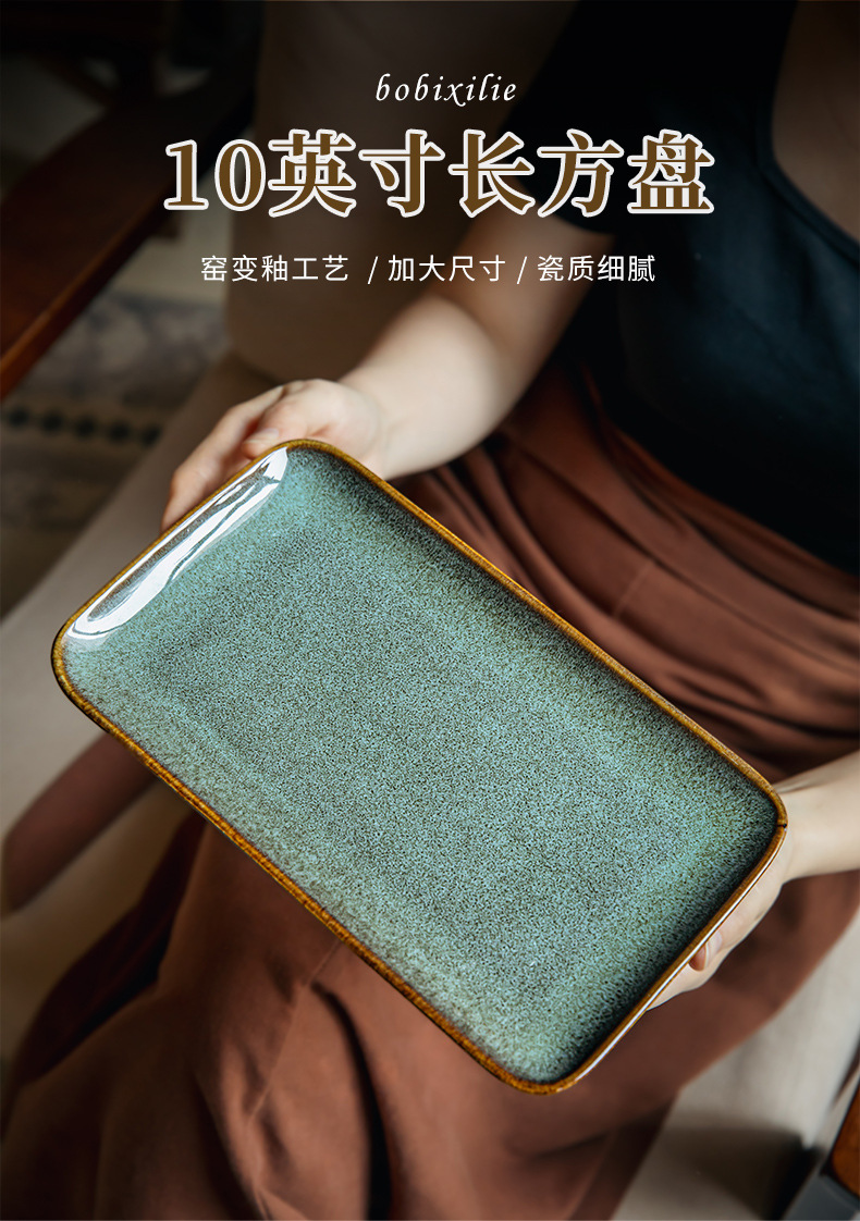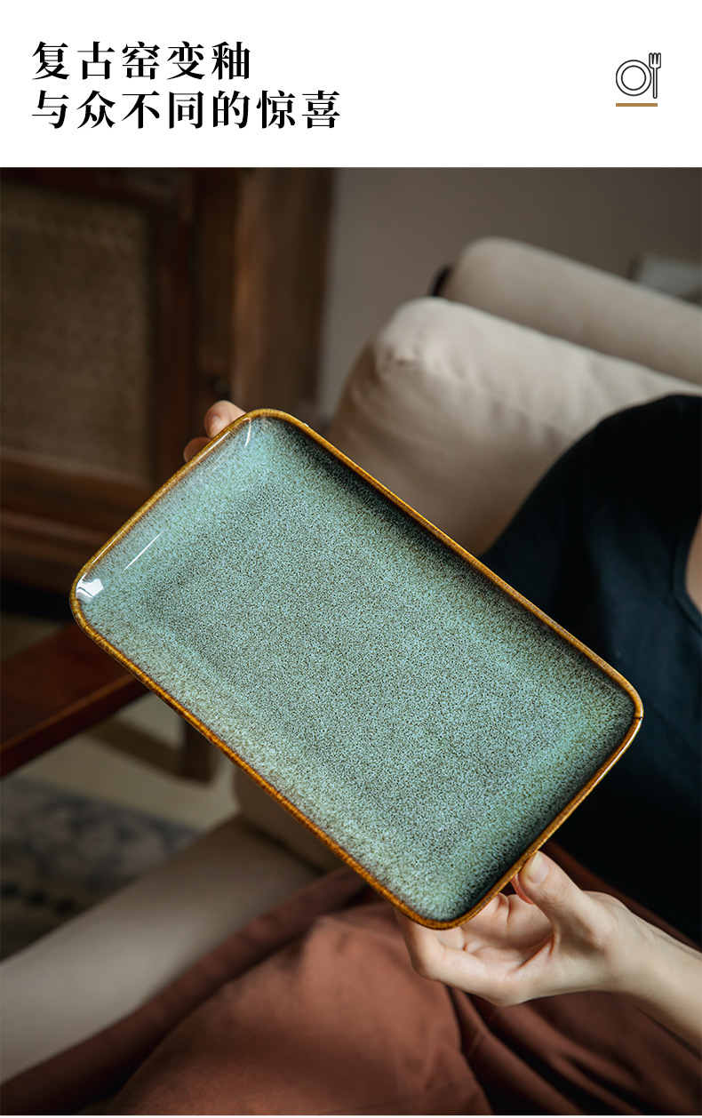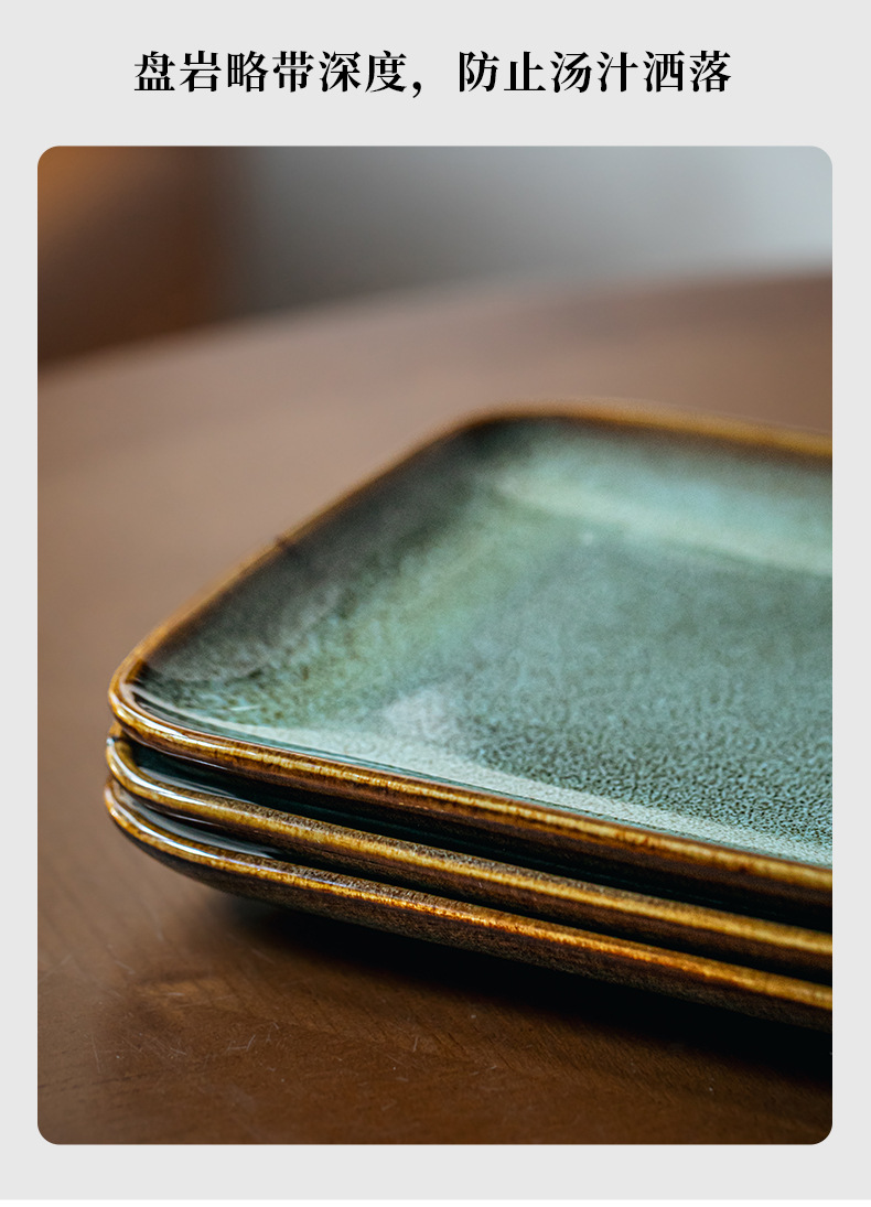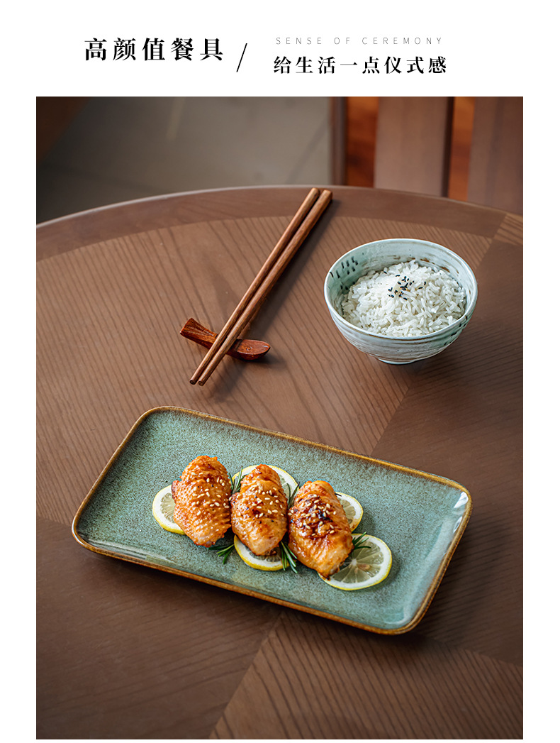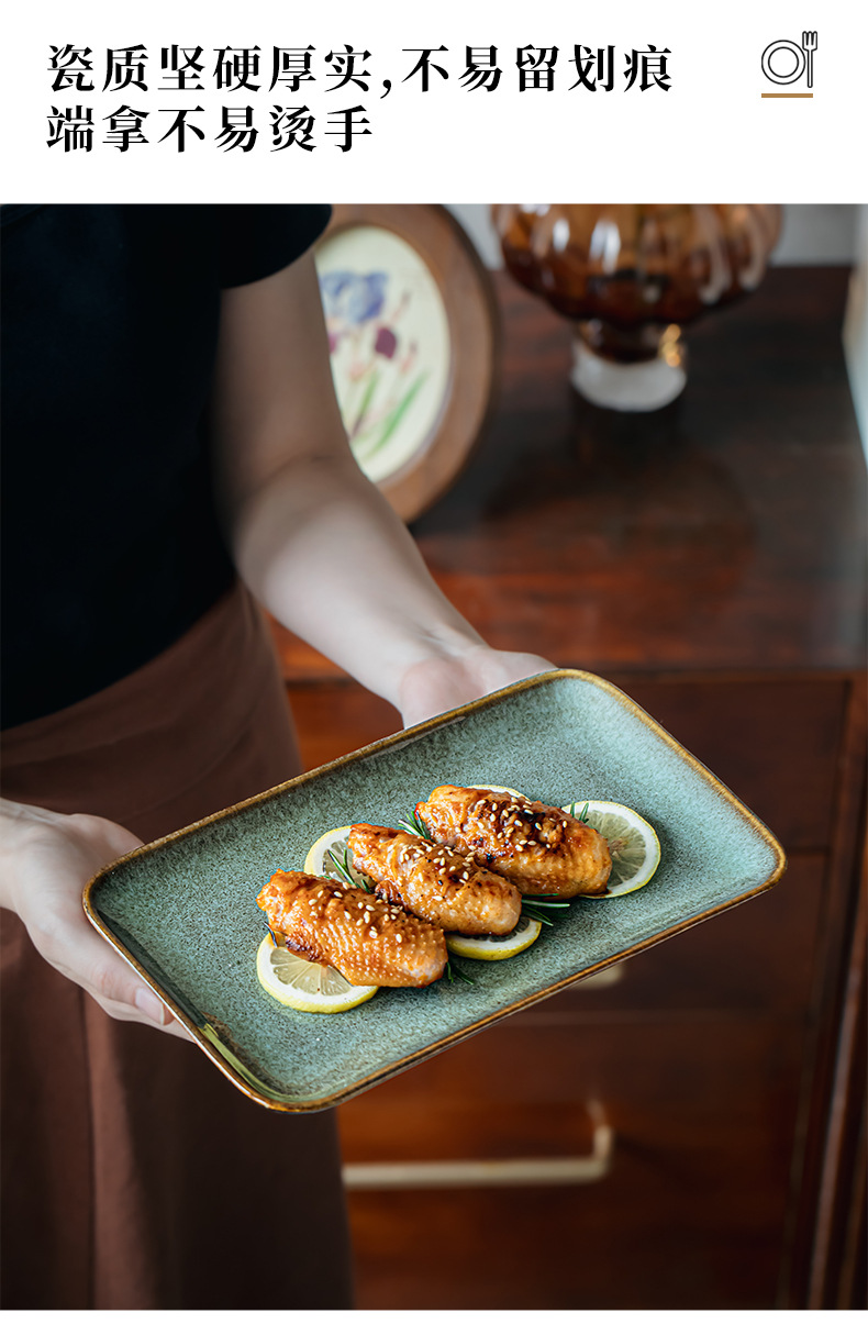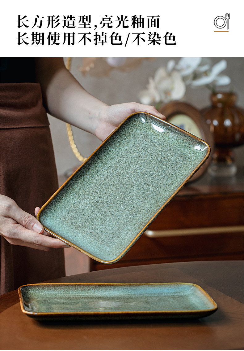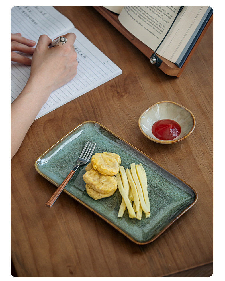 Bobbi verde retro textura rectangular platos de bocadillos de cerámica platos de sushi japonés exportación transfronteriza