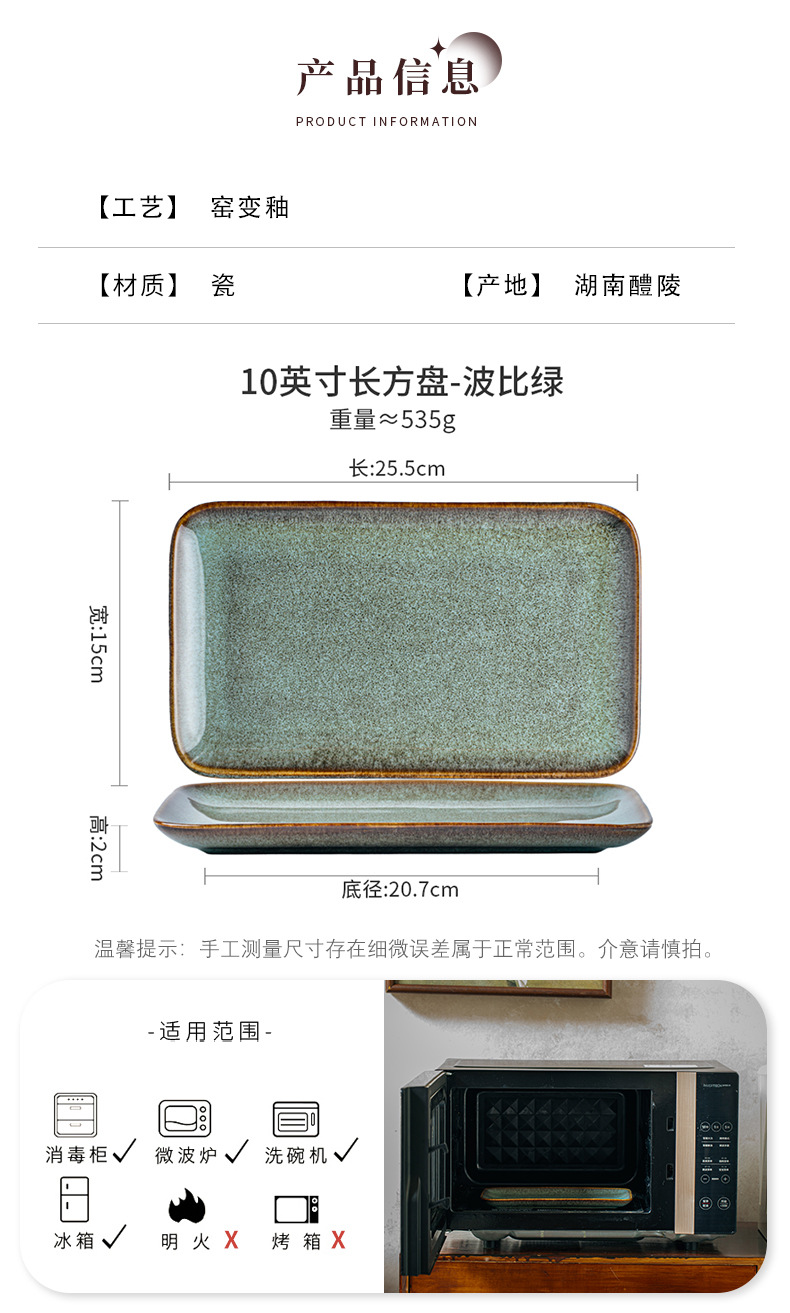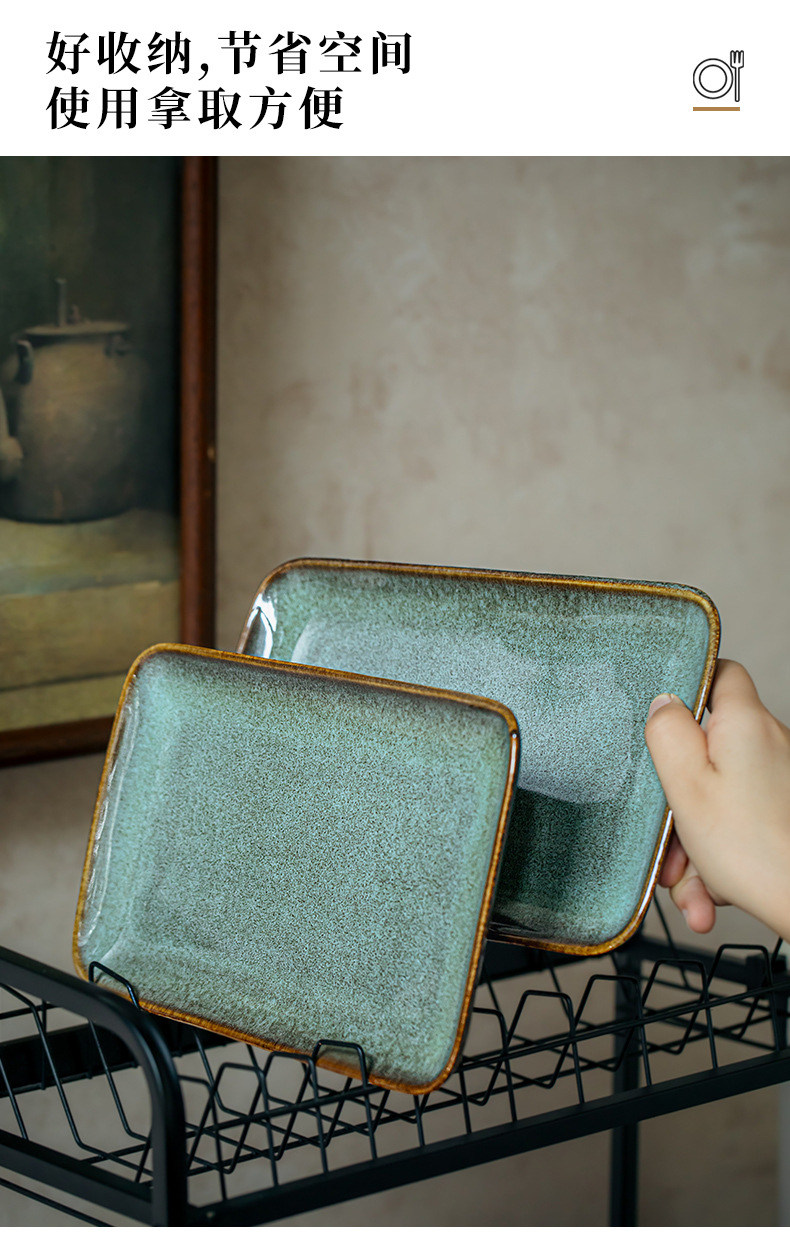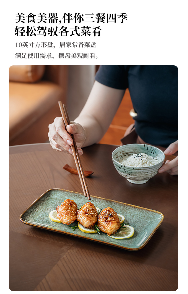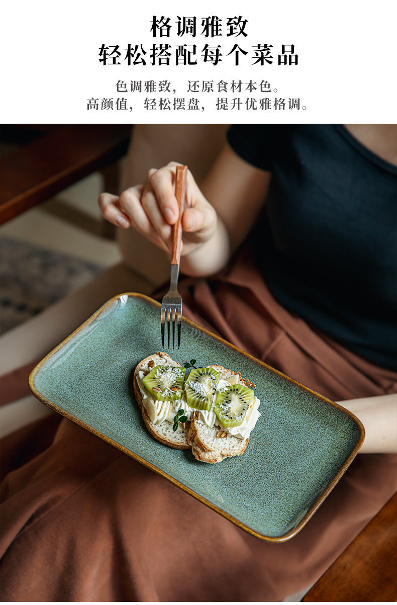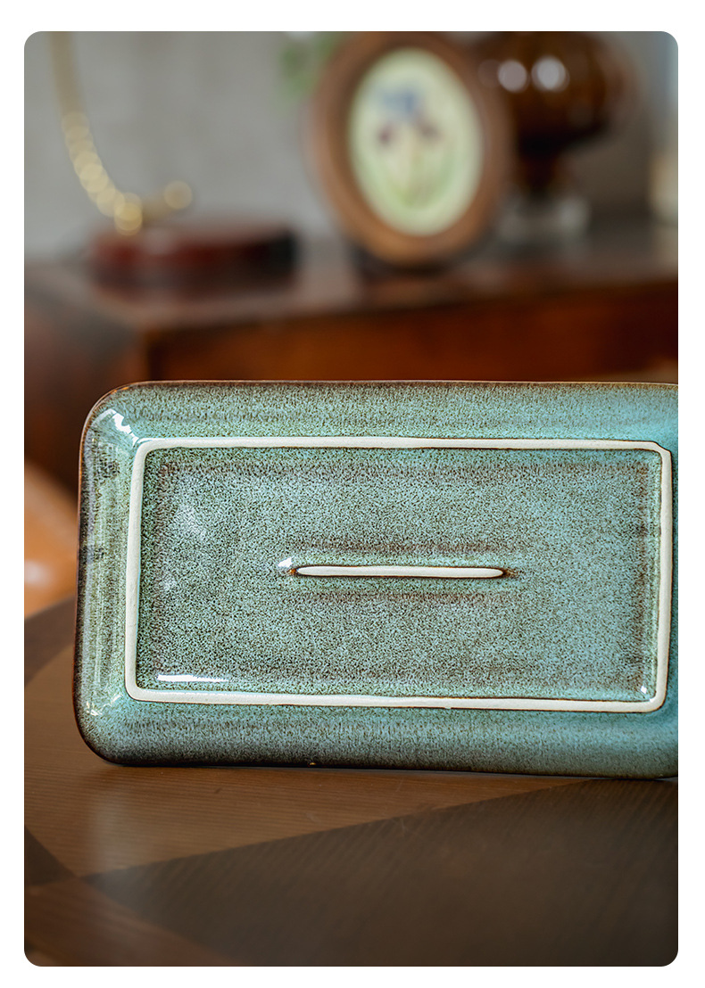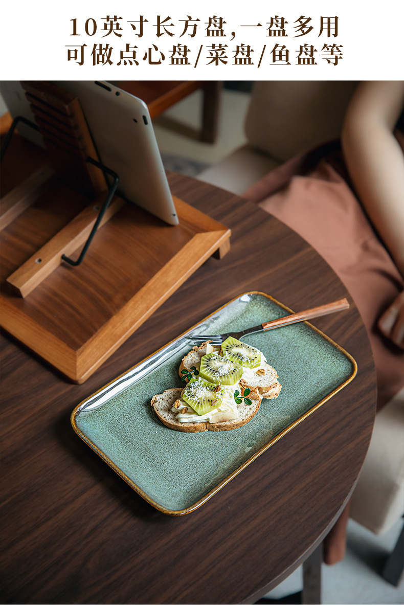Bobbi verde retro textura rectangular platos de bocadillos de cerámica platos de sushi japonés exportación transfronteriza