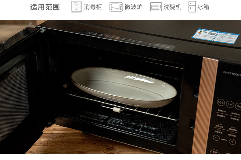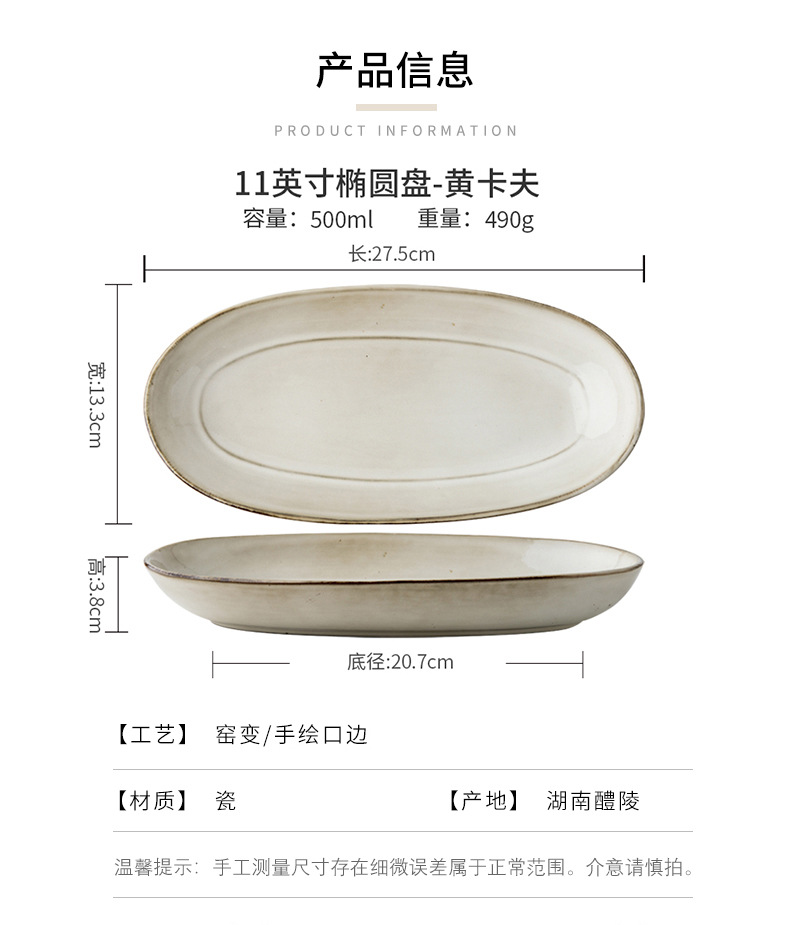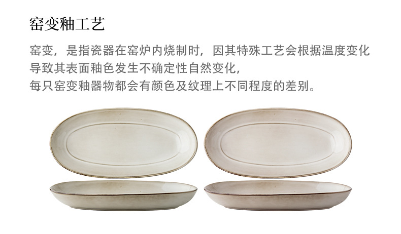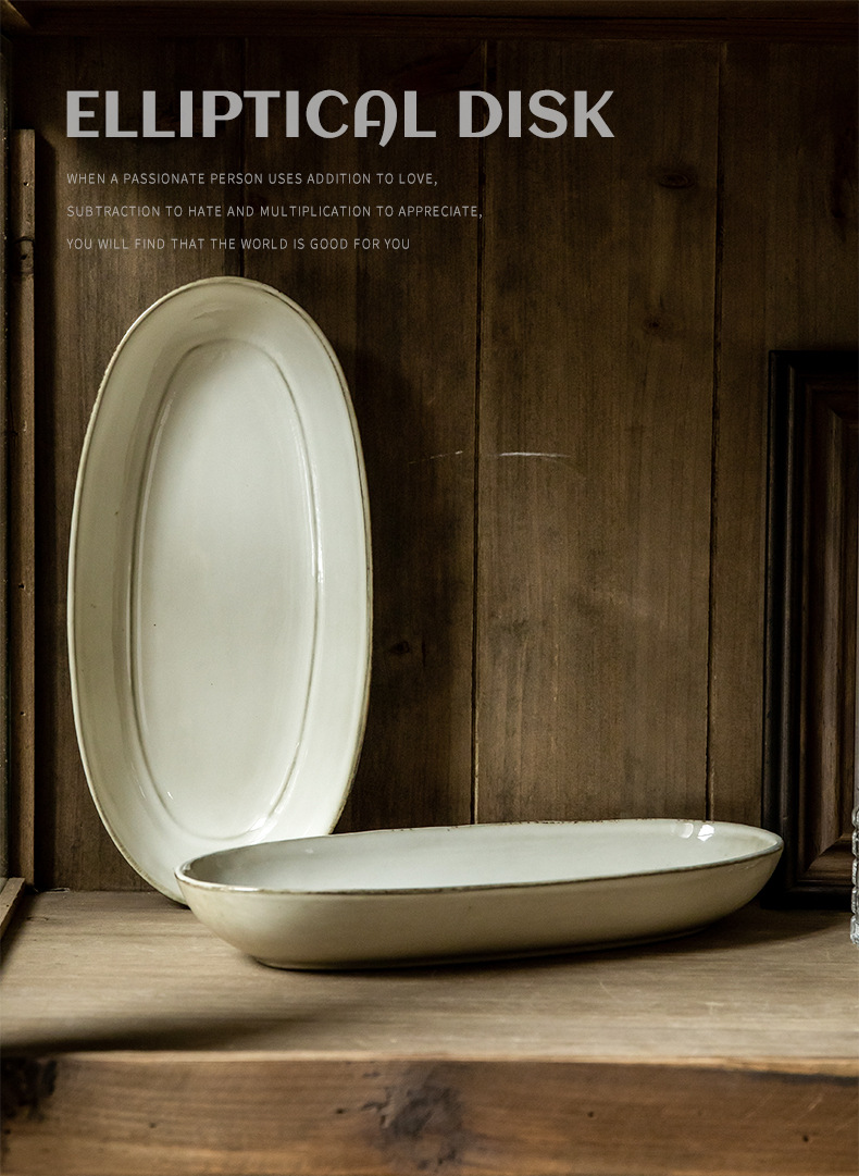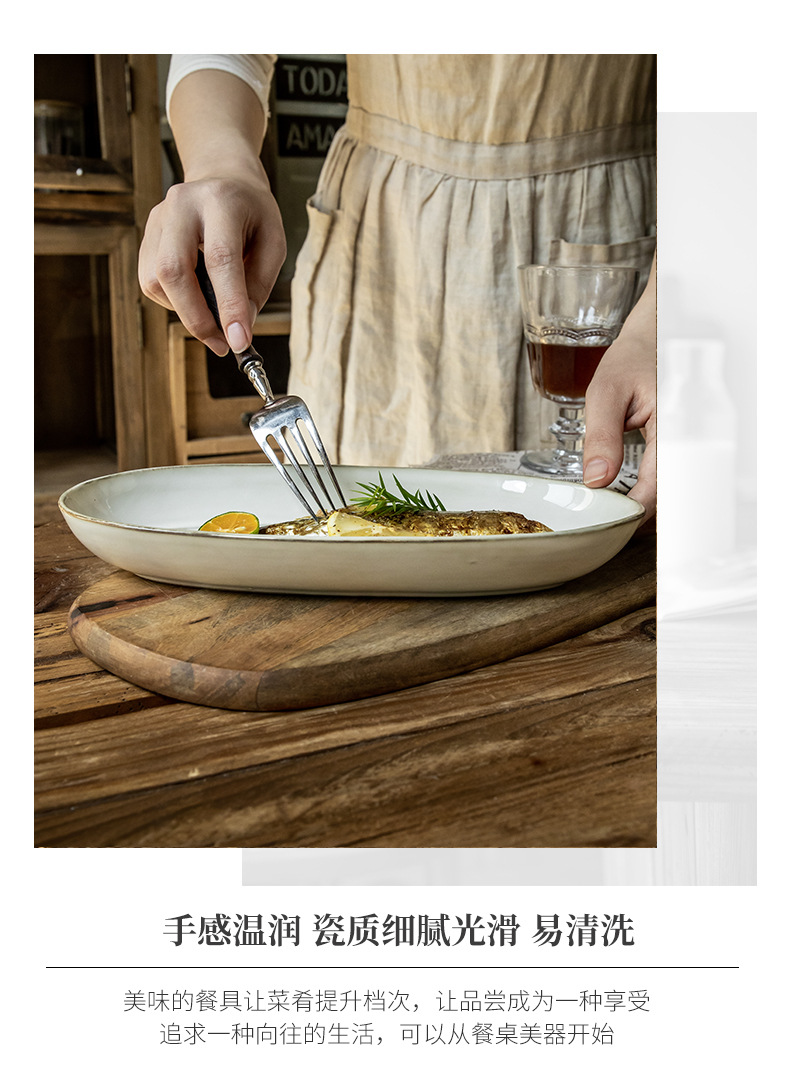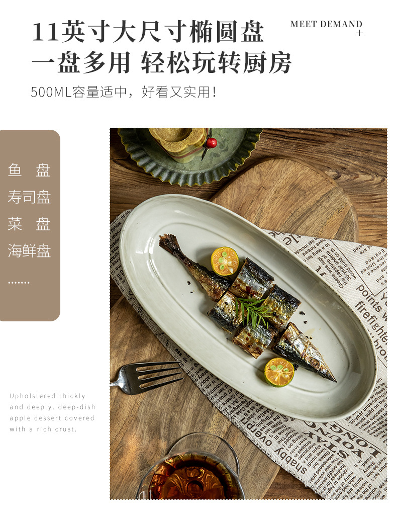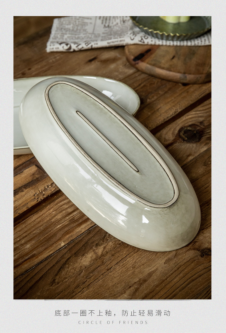 Placa de pescado vintage retro 11 pulgadas horno elíptico placa de pescado al vapor placa de cerámica doméstica placa de material diario exportación transfronteriza