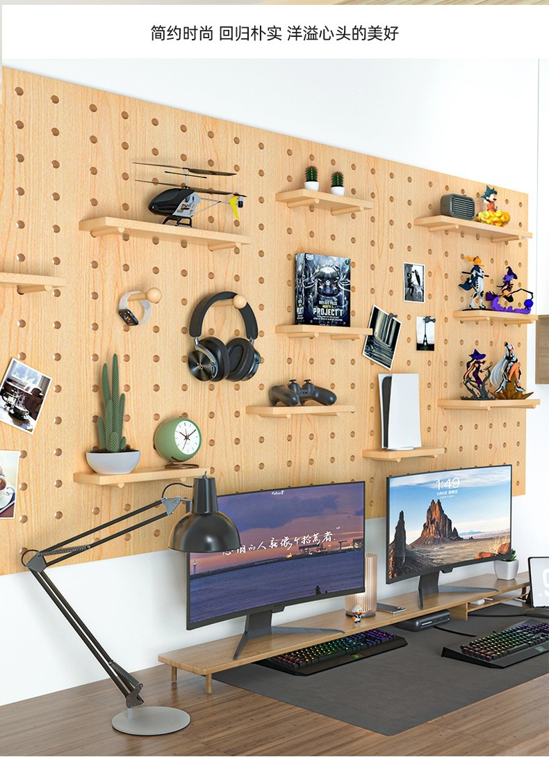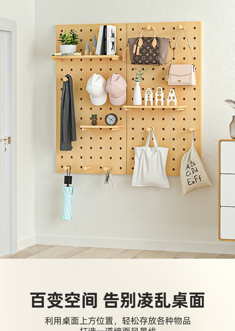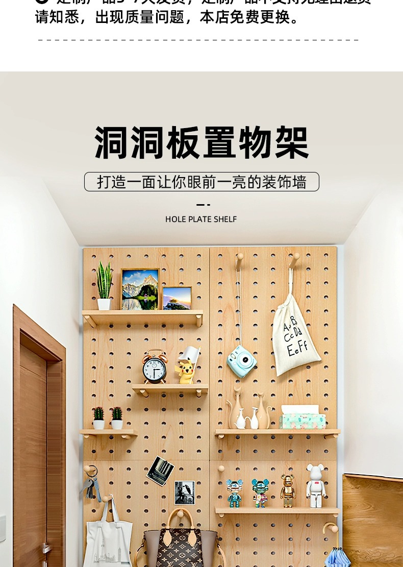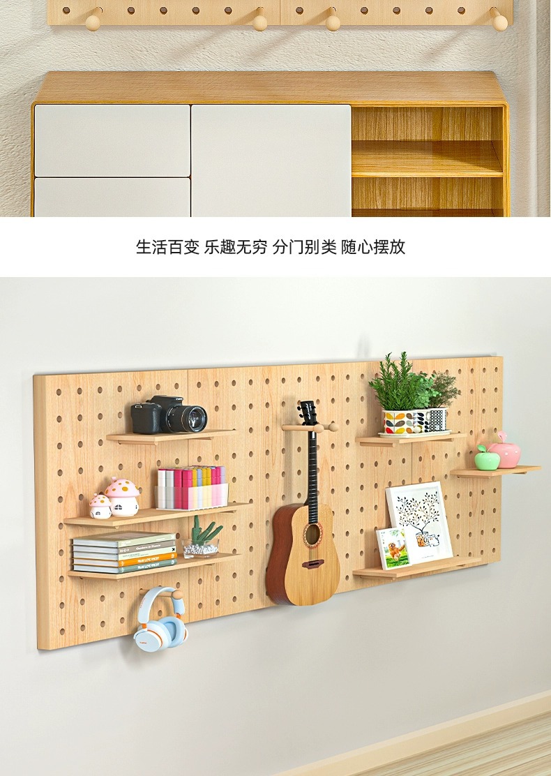 Tablero de agujero de madera maciza estante de pared de pasillo personalizado estante de pared de madera estantería de almacenamiento de partición estante de pared de tablero colgante