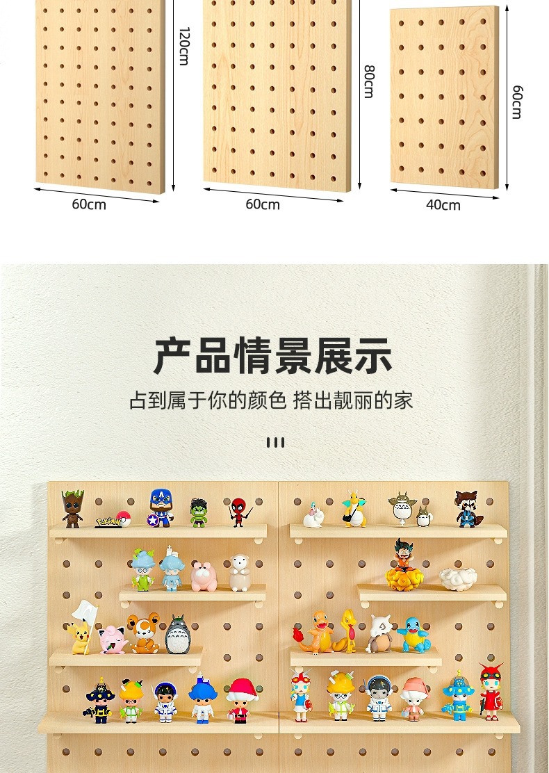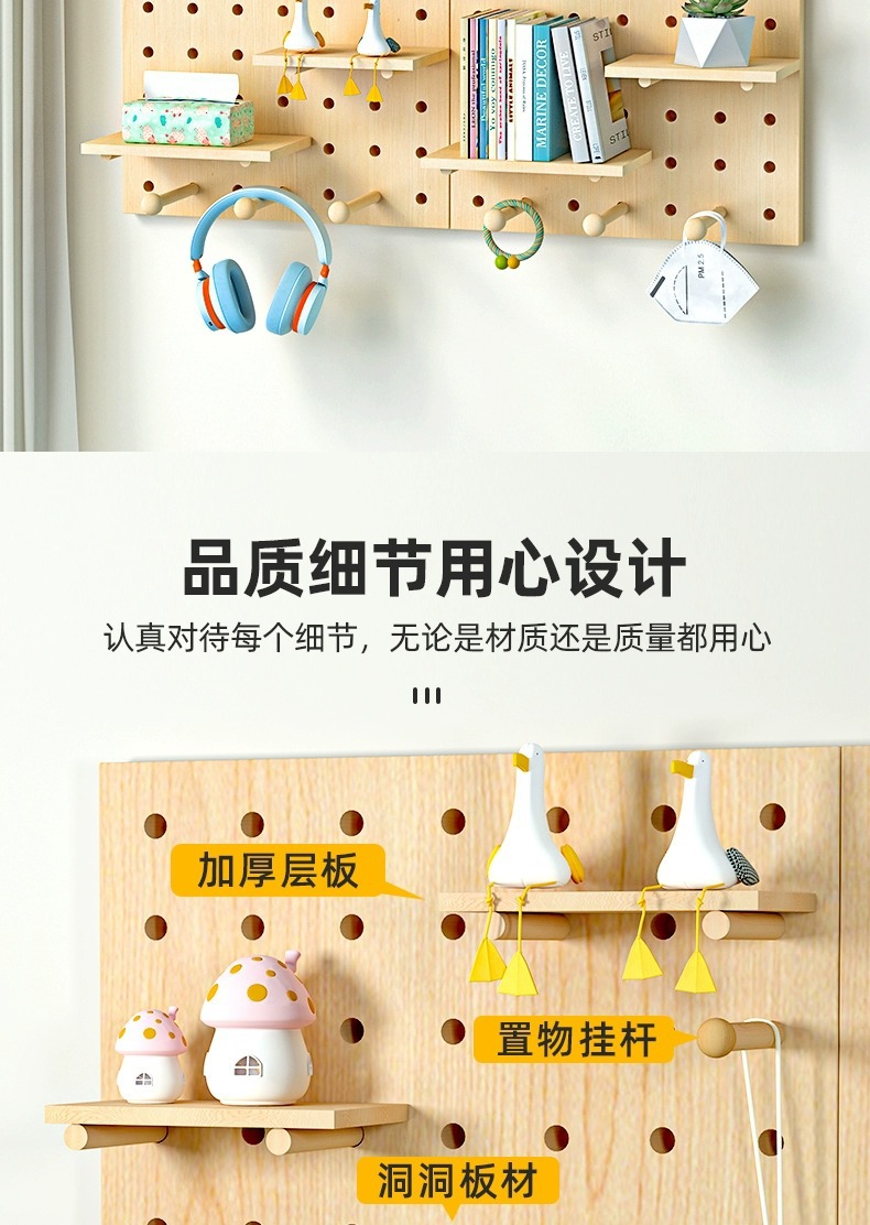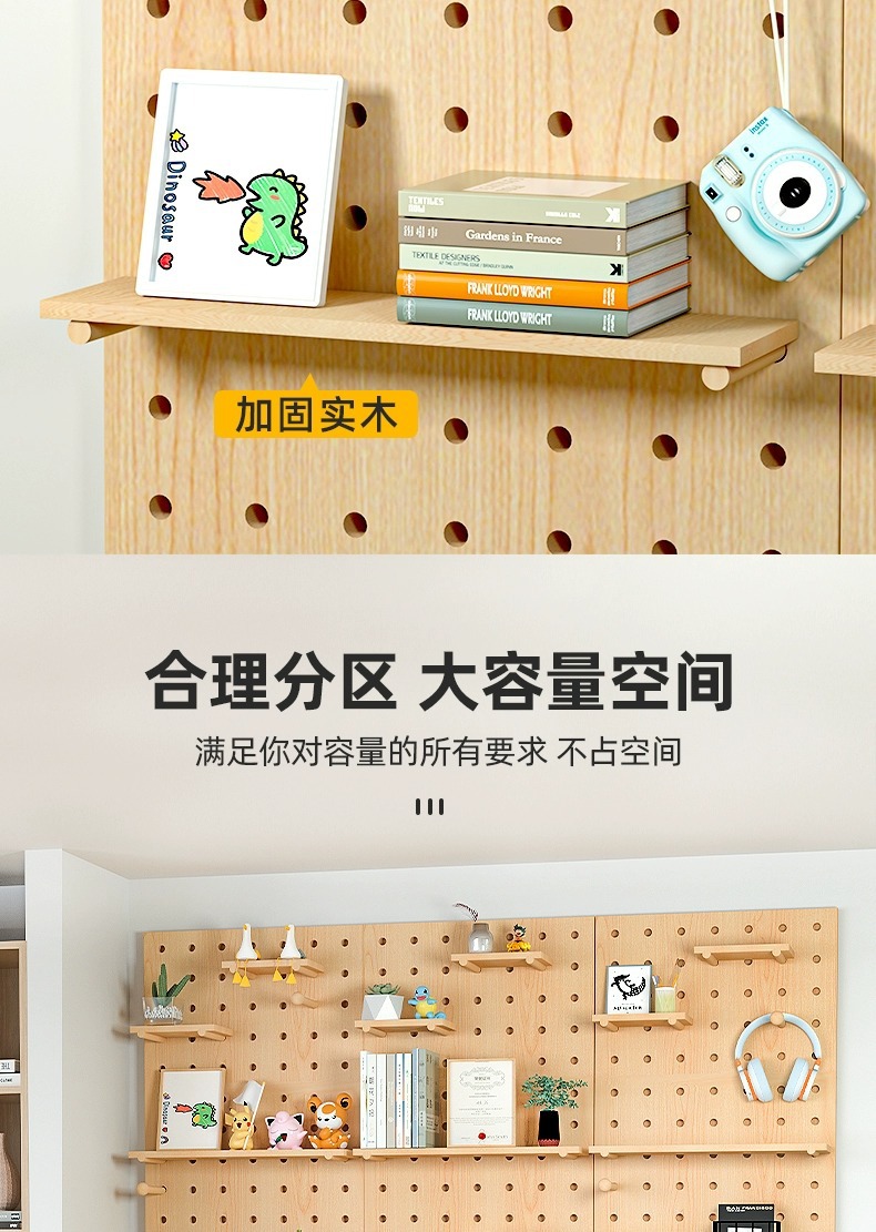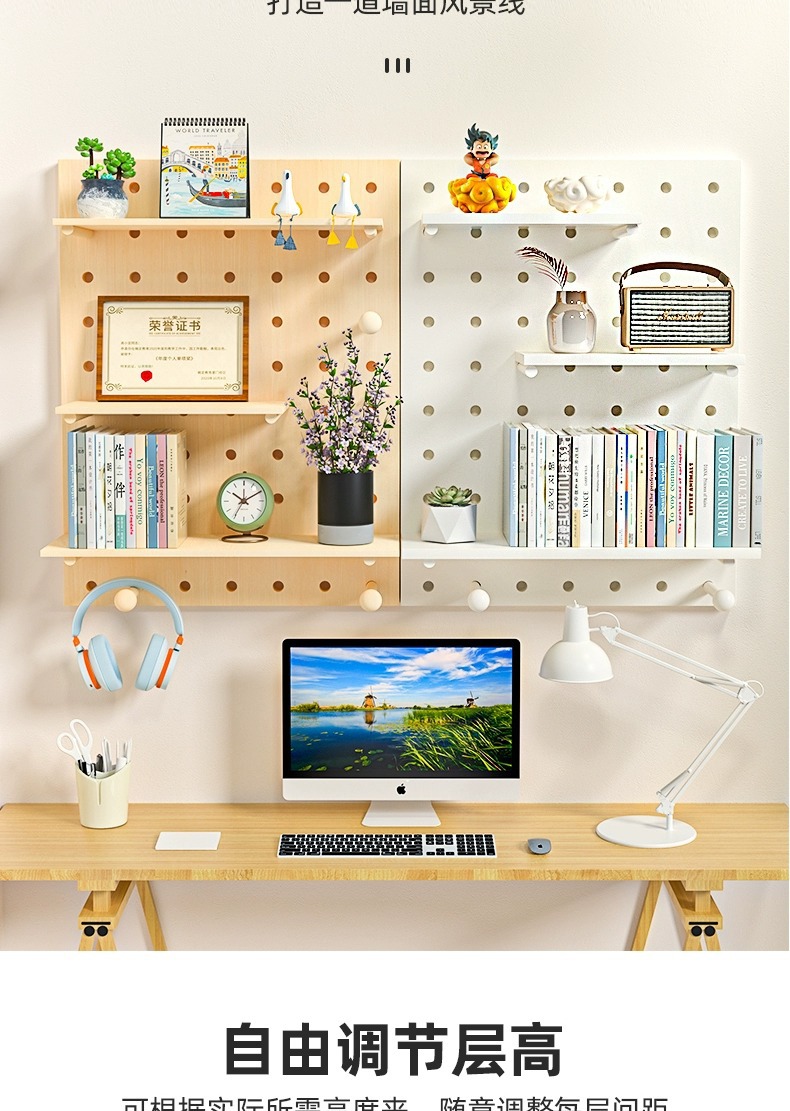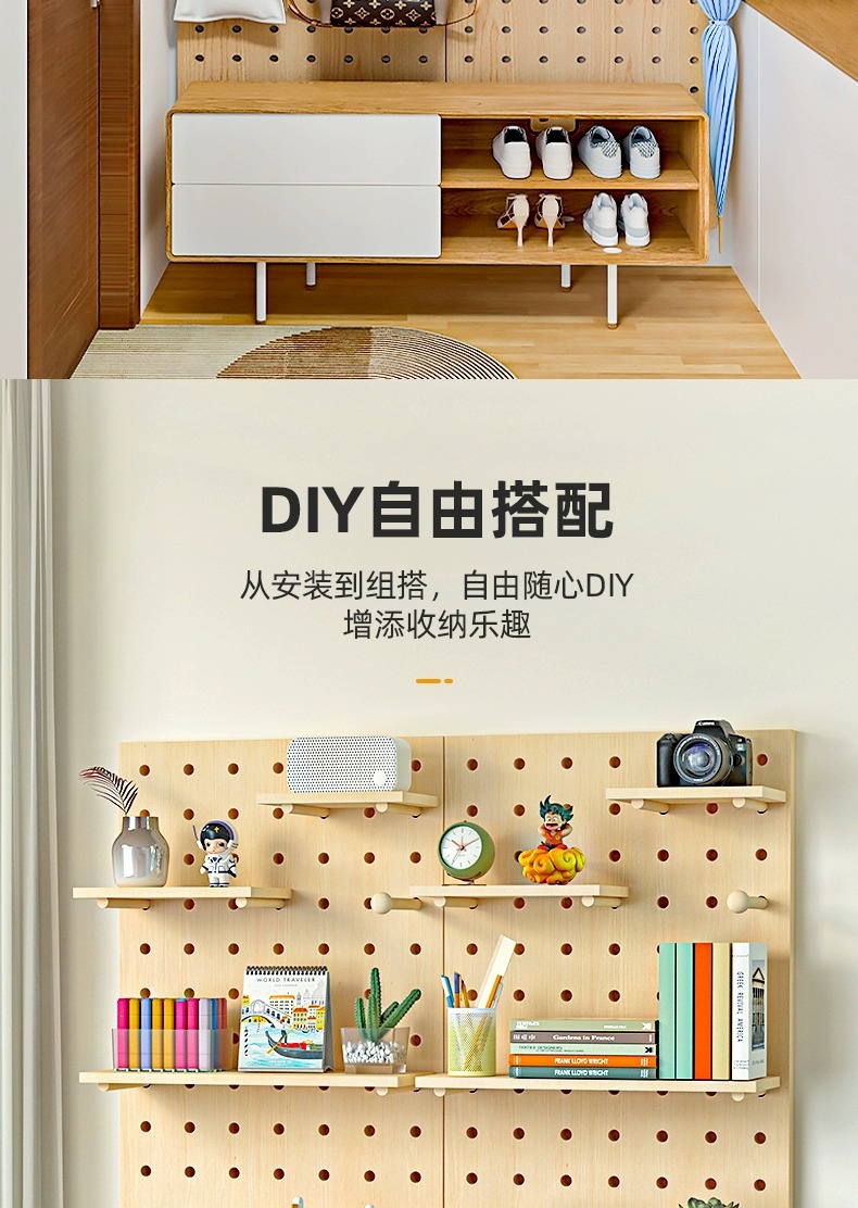 Tablero de agujero de madera maciza estante de pared de pasillo personalizado estante de pared de madera estantería de almacenamiento de partición estante de pared de tablero colgante