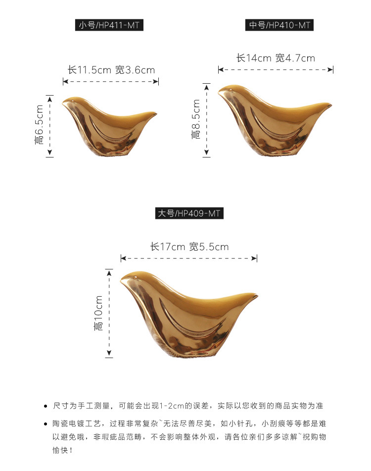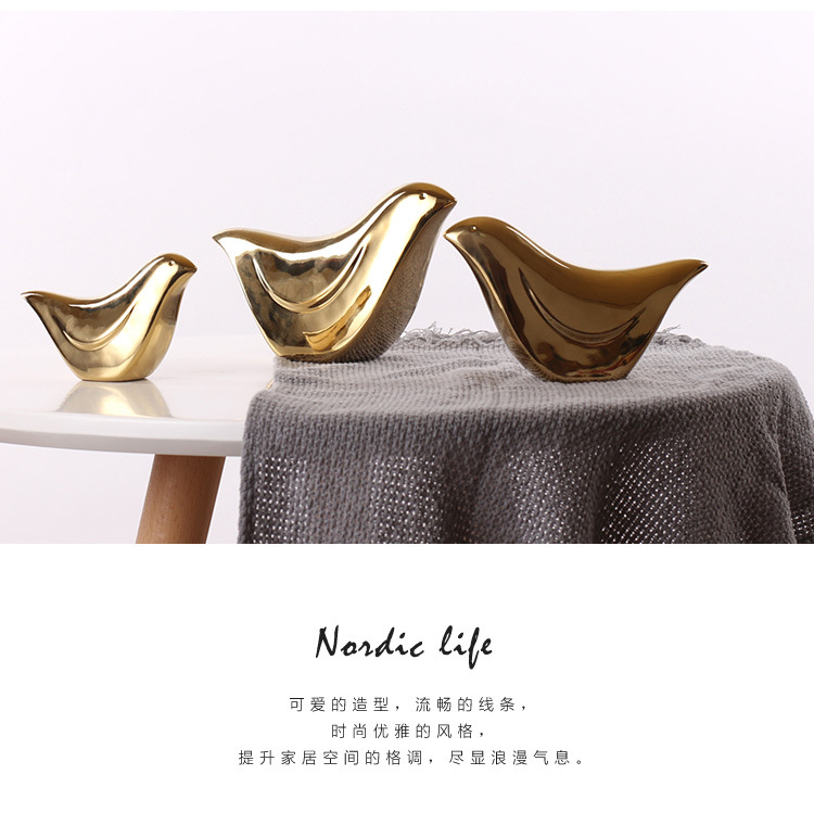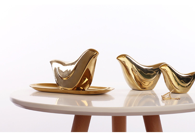 Nórdico creativo pájaro de cerámica hogar Oro suave decoración personalidad Linda pequeña decoración fábrica al por mayor