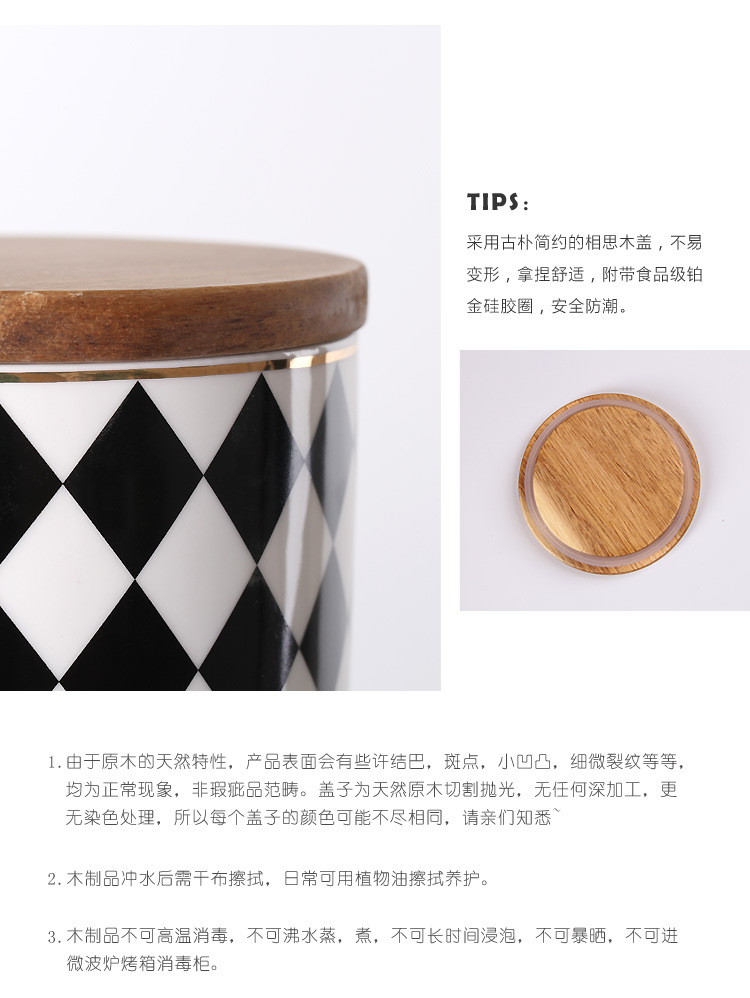 Nórdico moderno patrón geométrico simple tarro de almacenamiento de tres capas de cerámica densa tarro sellado creativo adornos de decoración suave