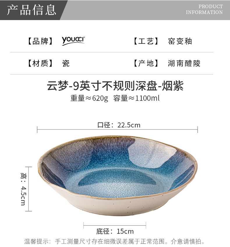 | Color | Yunmeng - disco profundo irregular de 9 pulgadas - púrpura de humo |