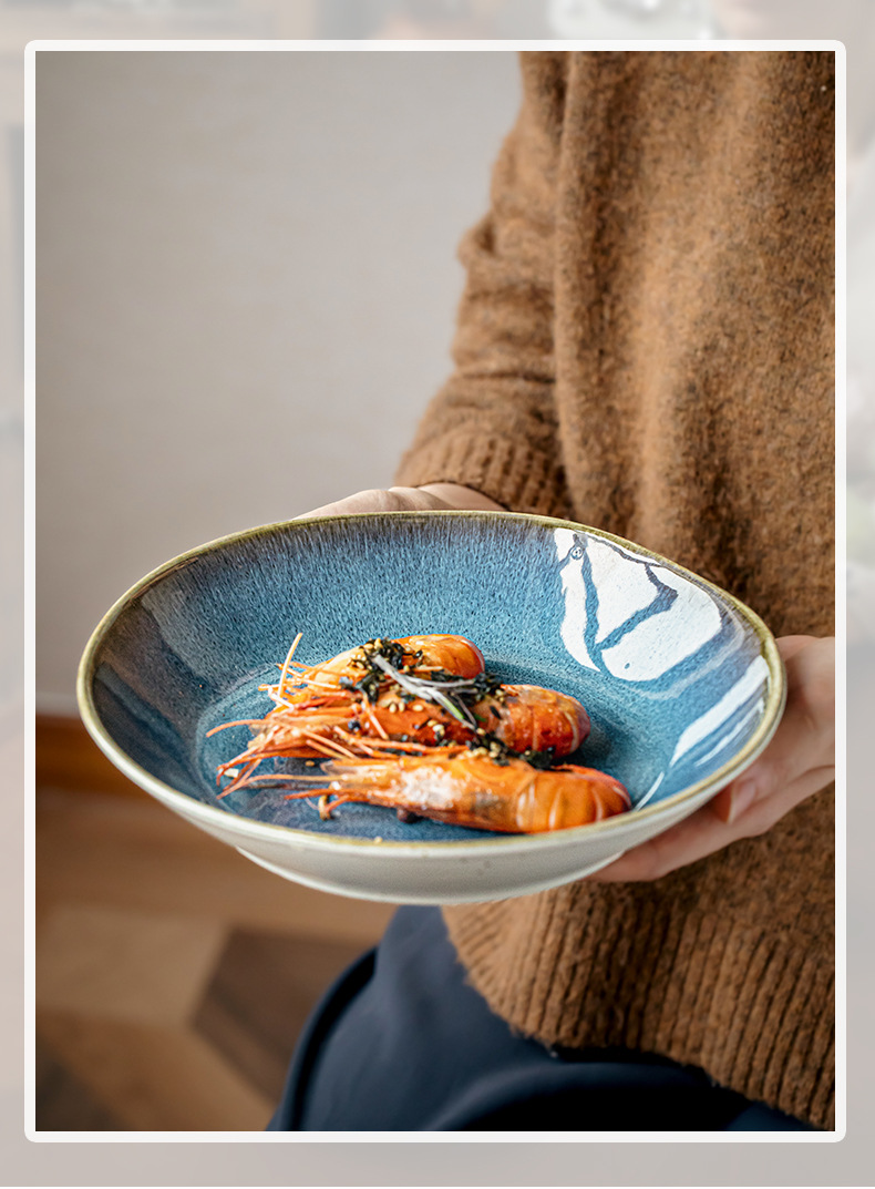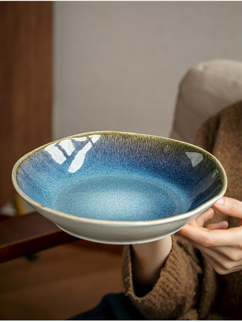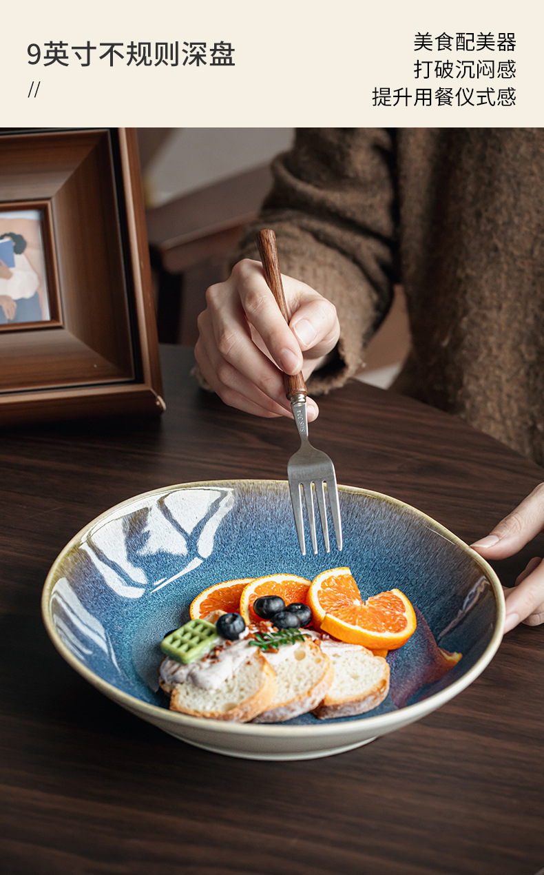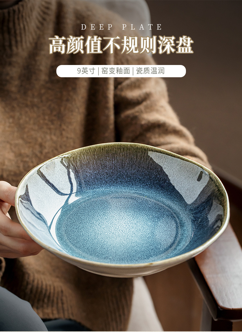 Yunmeng textura super buena 9 pulgadas irregulares plato de ensalada de cerámica profunda de lujo ligero restaurante plato de platos grandes exportaciones transfronterizas