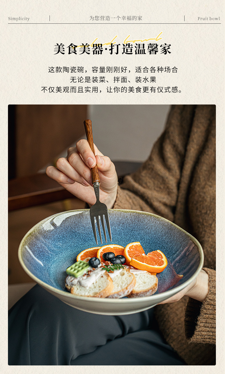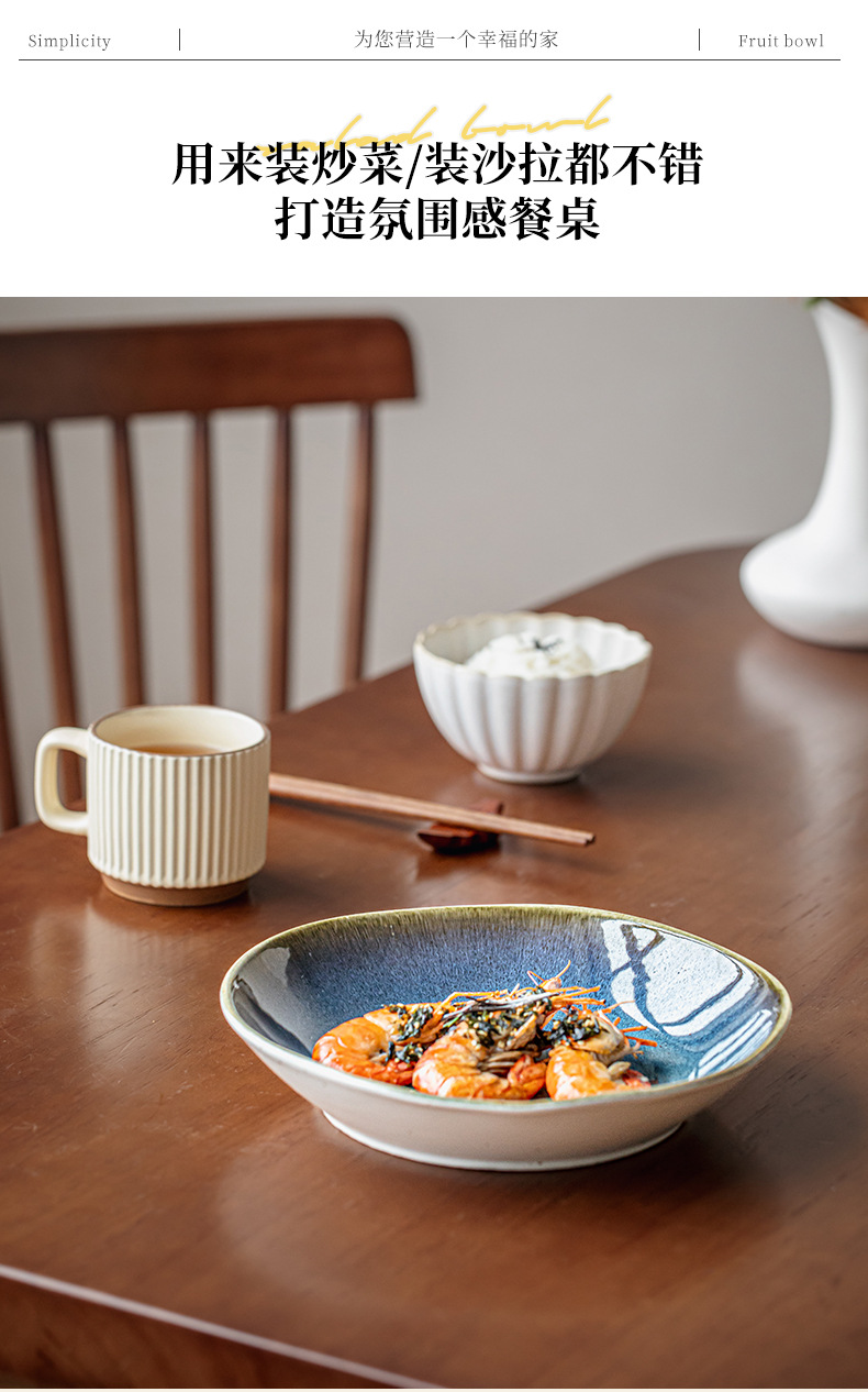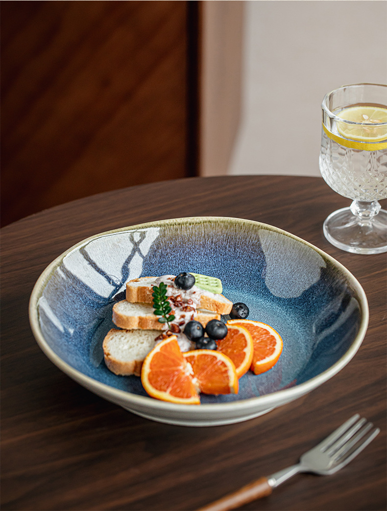 Yunmeng textura super buena 9 pulgadas irregulares plato de ensalada de cerámica profunda de lujo ligero restaurante plato de platos grandes exportaciones transfronterizas