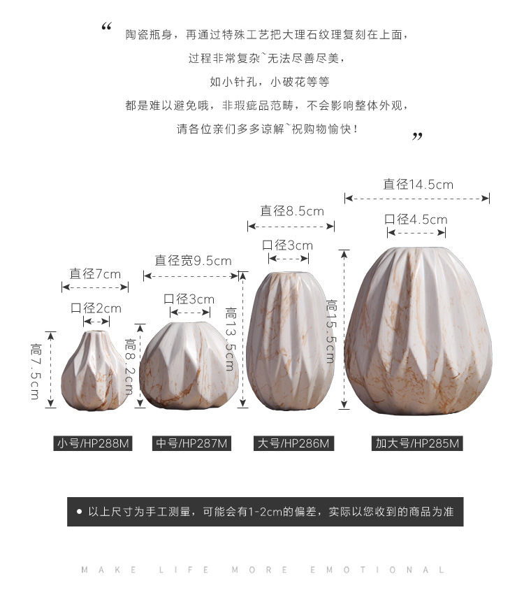 Hotel decoración botella de cerámica salón decoración mesa mármol Arte Creativo moda decoración al por mayor
