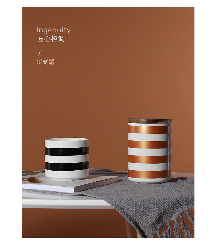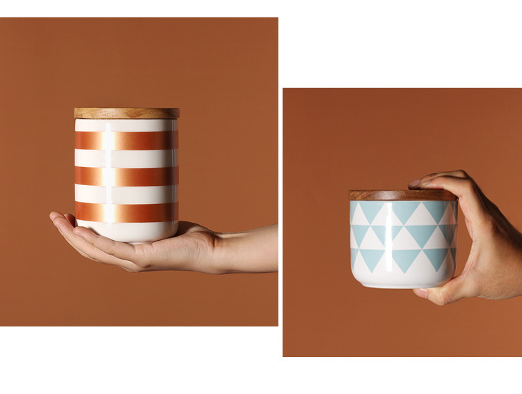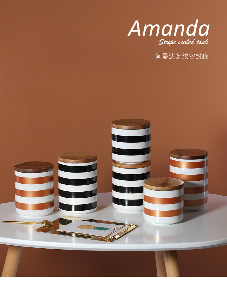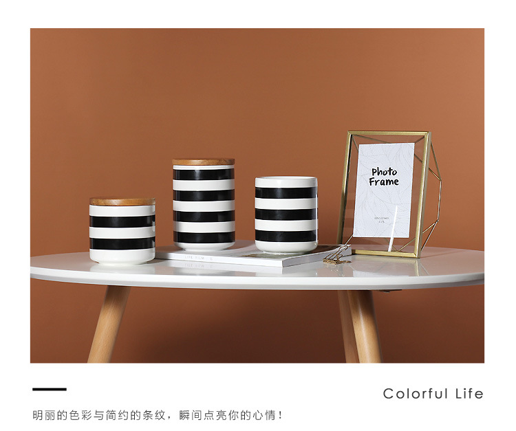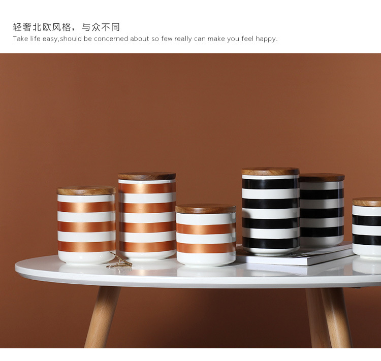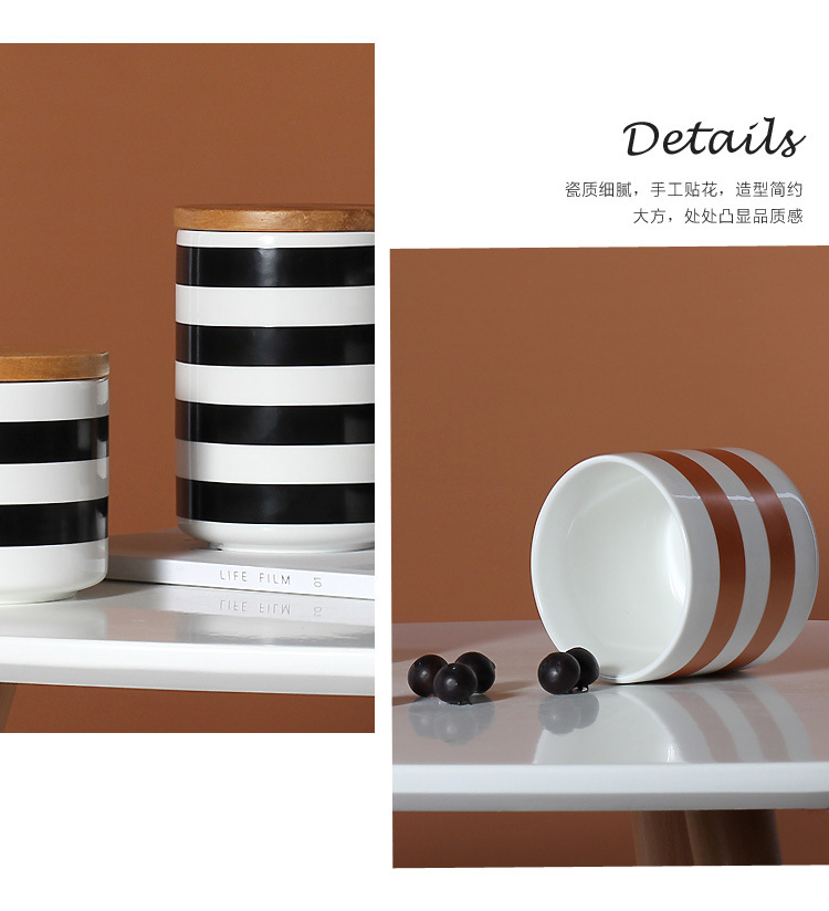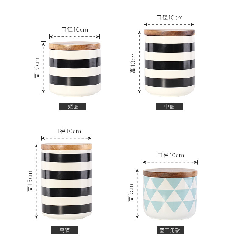 Simple geométrico Negro Nórdico almacenamiento frasco sellado cerámica cocina almacenamiento café merienda té tarro con tapa