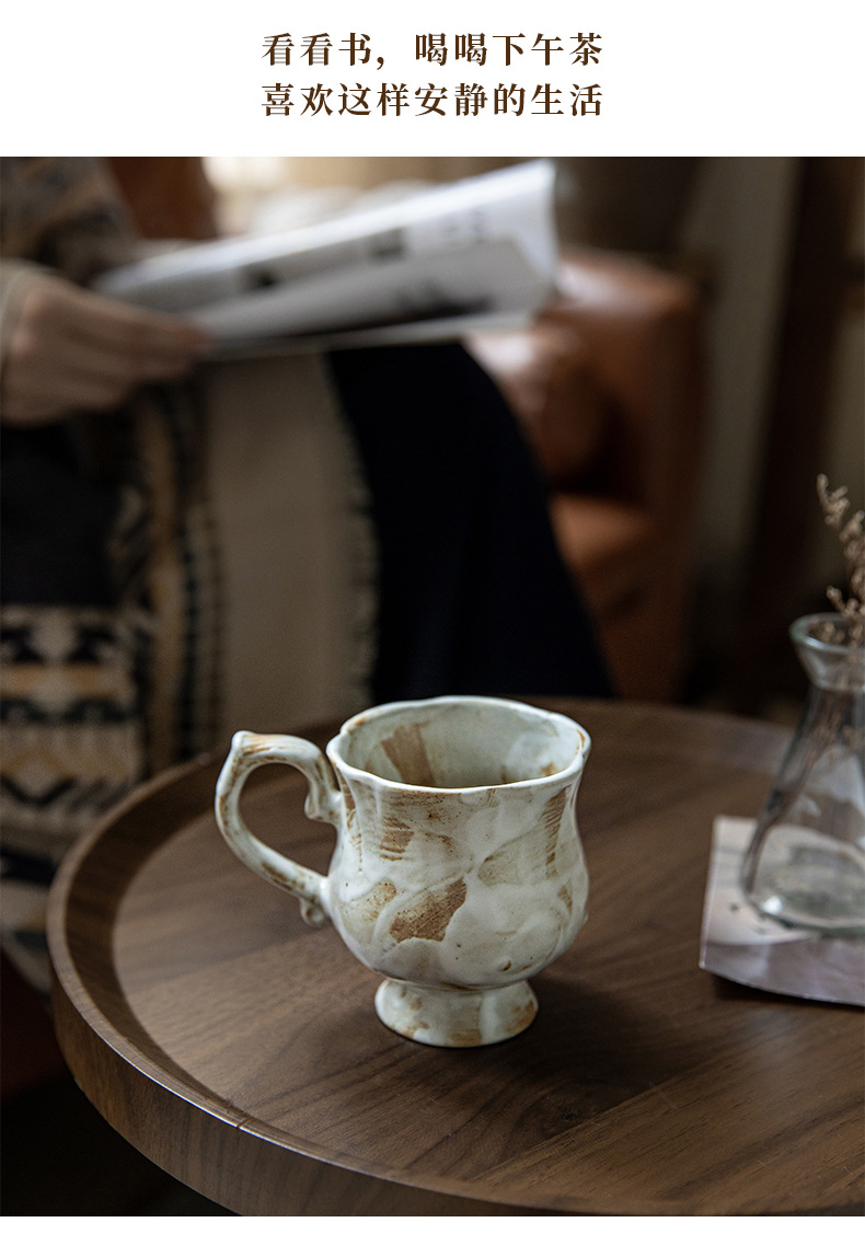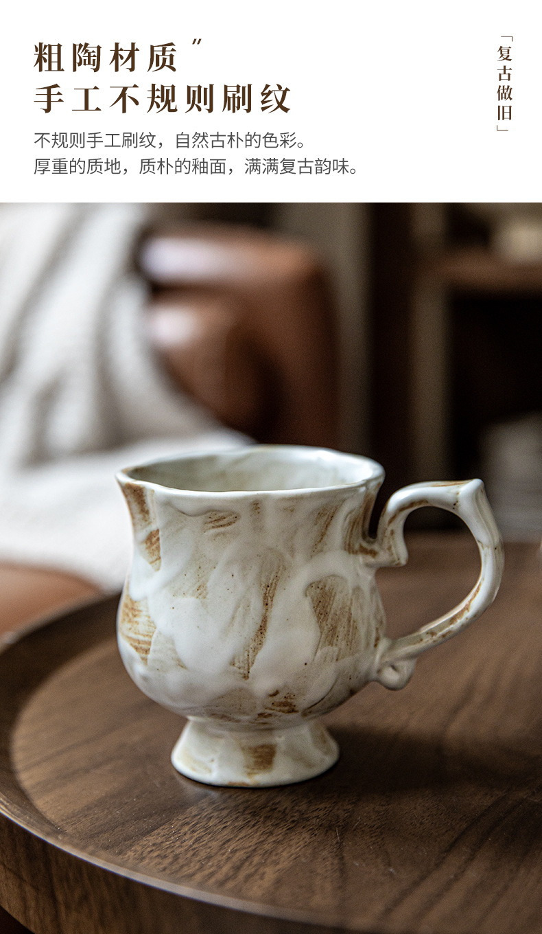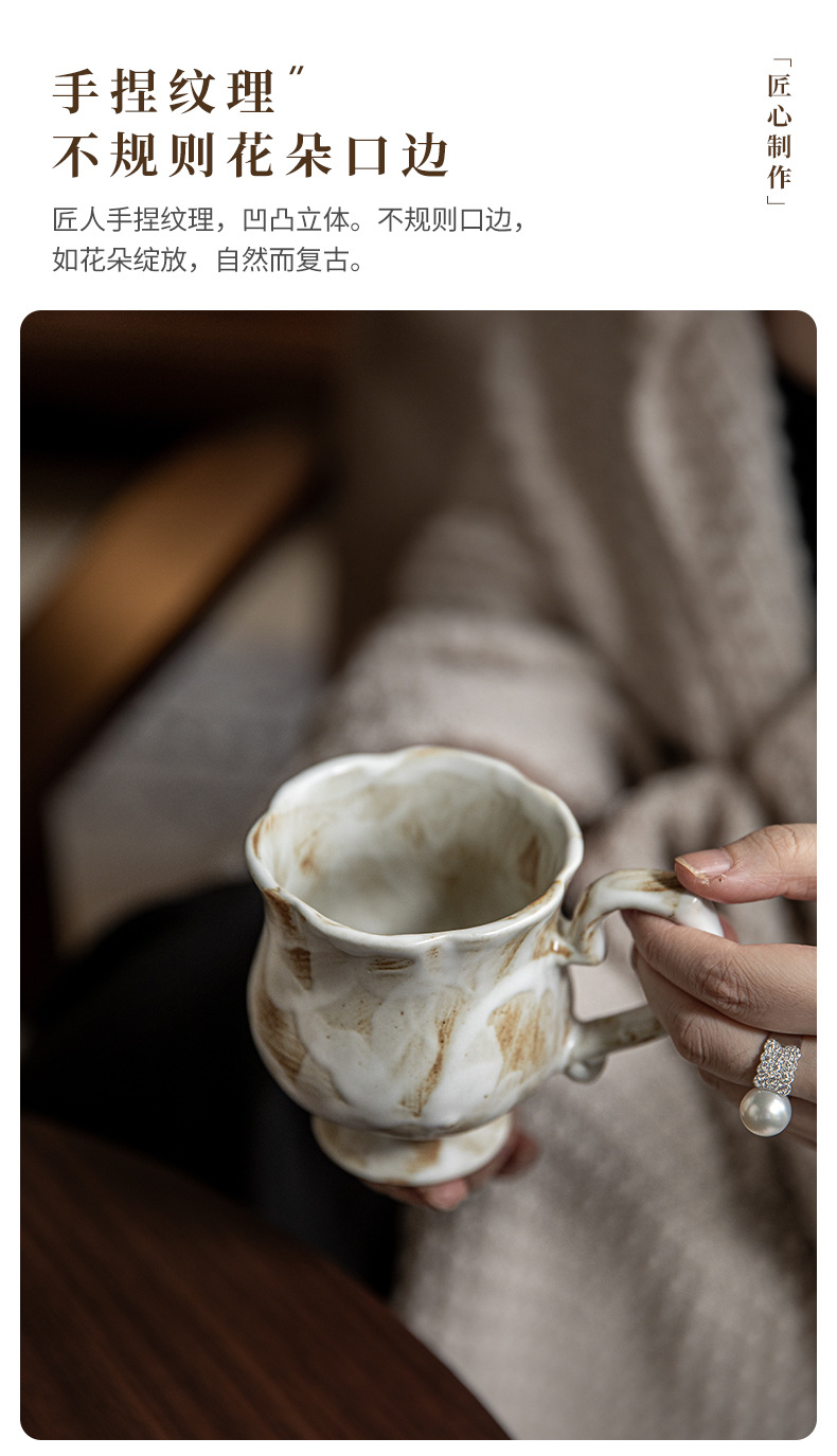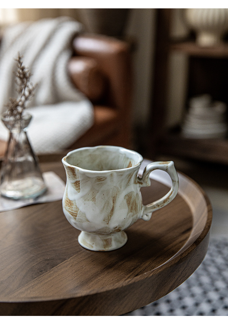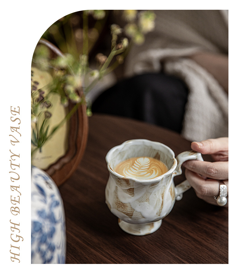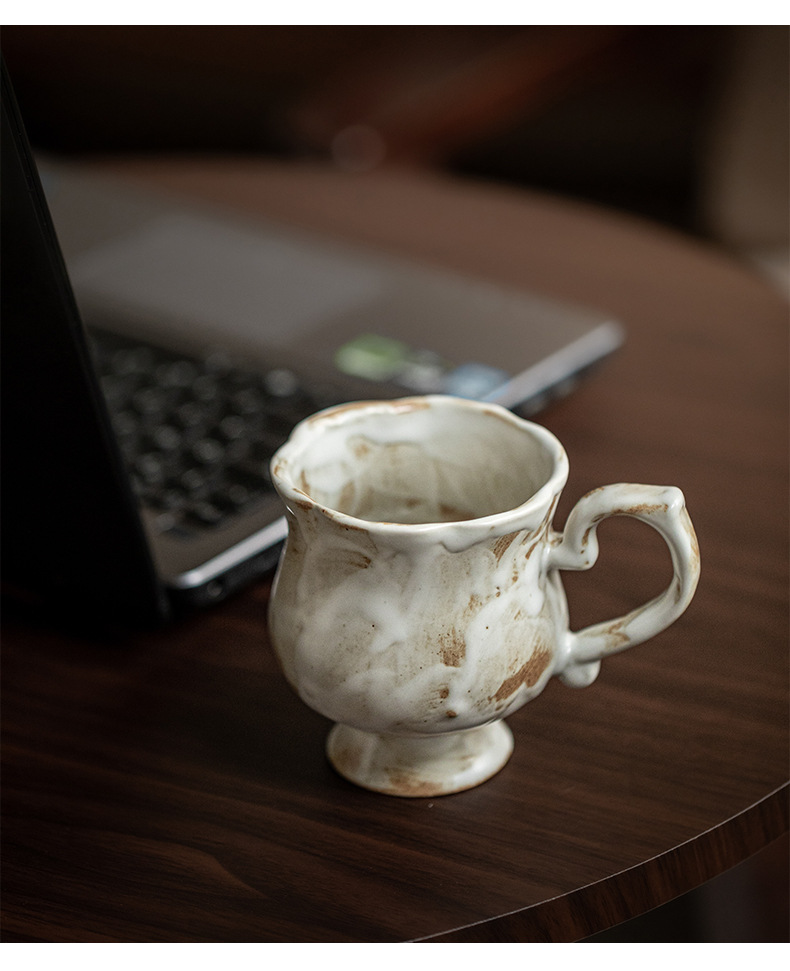 Tazas medievales de pie alto de Marqi vintage de cerámica rugosa tazas de agua de flores 2024 nuevas tazas de café tazas de exportación transfronteriza