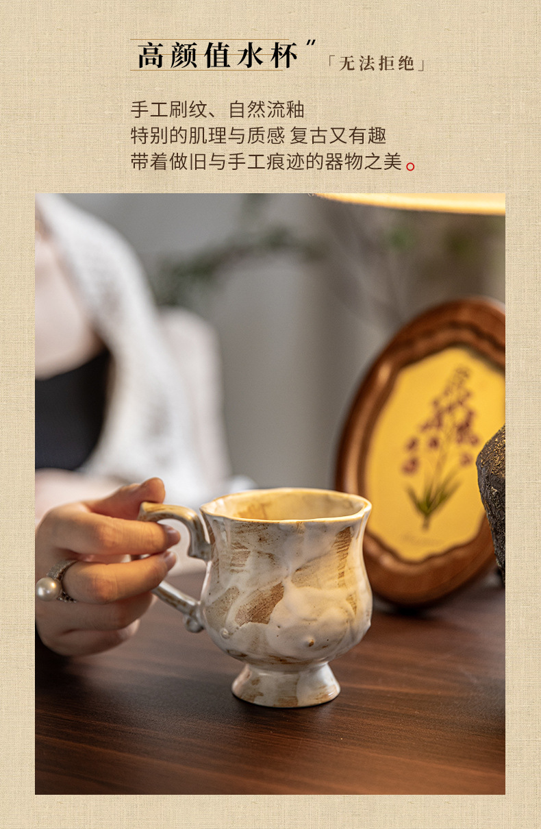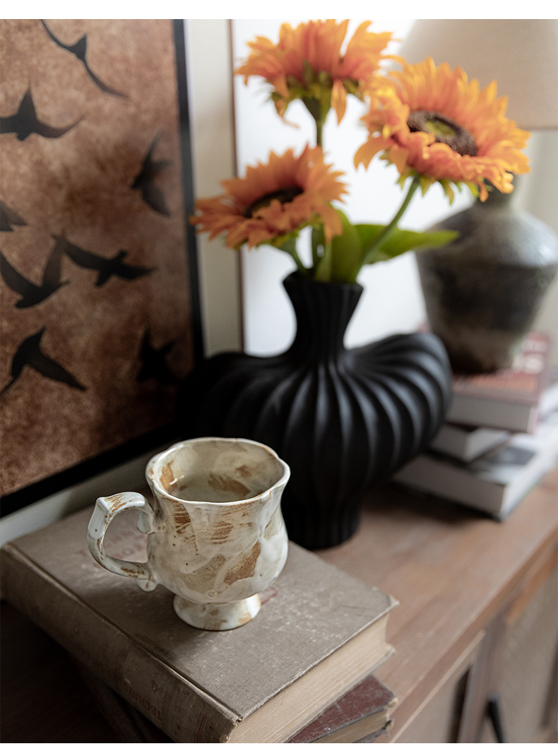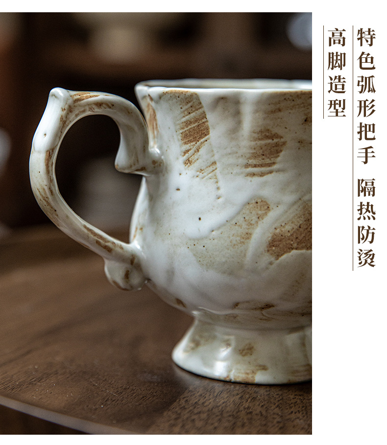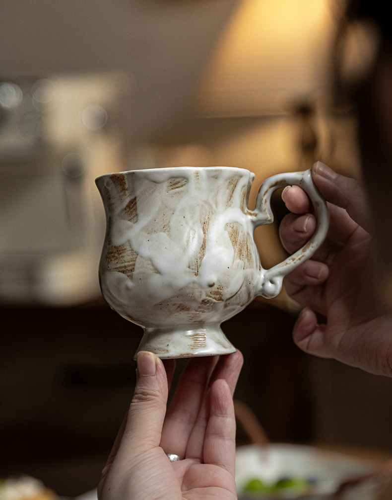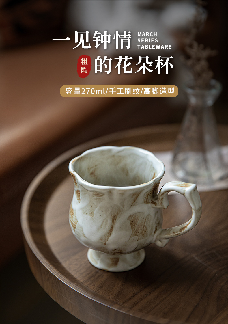 Tazas medievales de pie alto de Marqi vintage de cerámica rugosa tazas de agua de flores 2024 nuevas tazas de café tazas de exportación transfronteriza