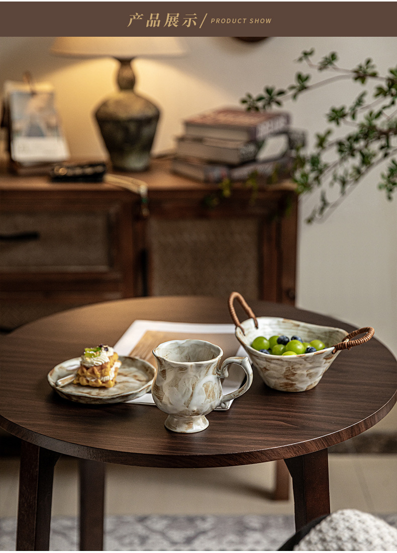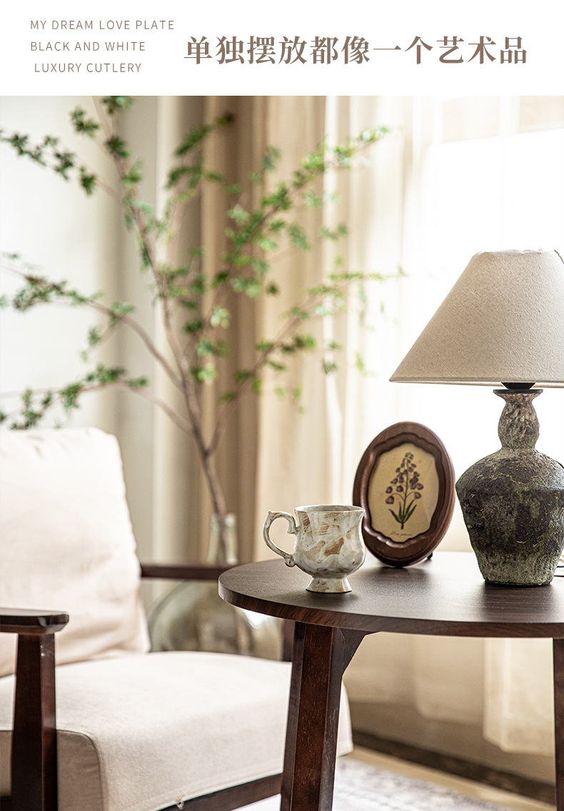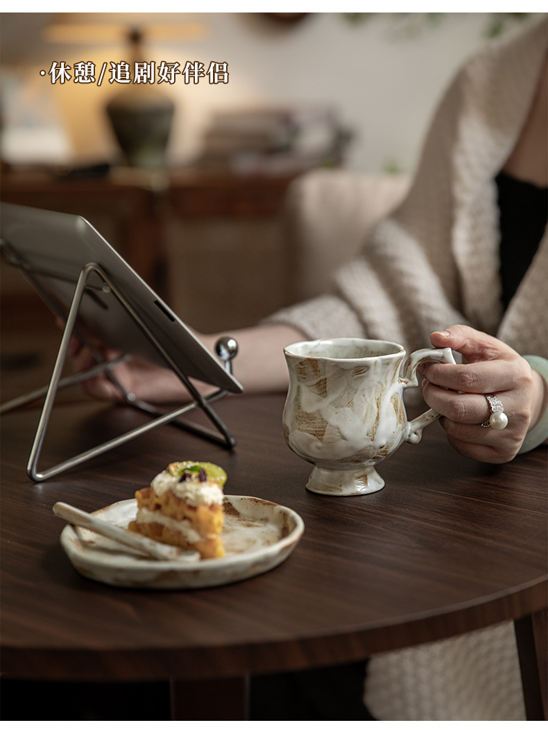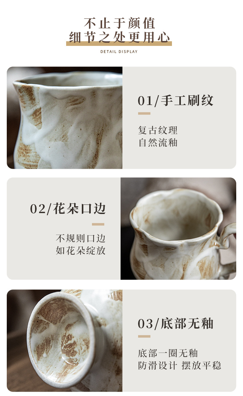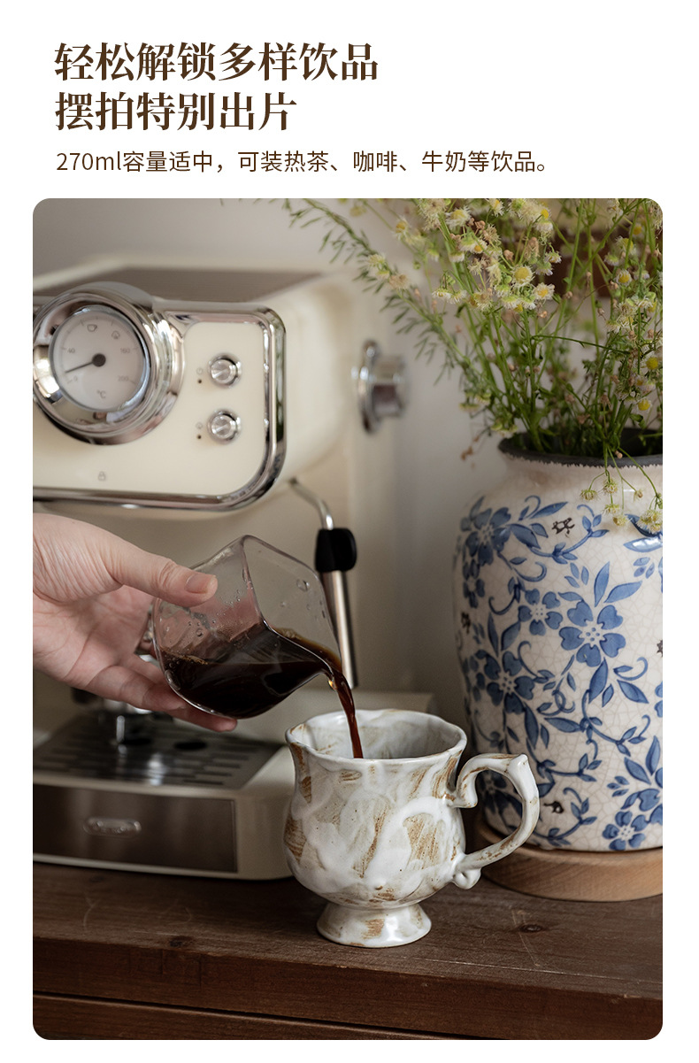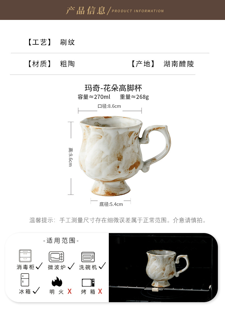 Tazas medievales de pie alto de Marqi vintage de cerámica rugosa tazas de agua de flores 2024 nuevas tazas de café tazas de exportación transfronteriza