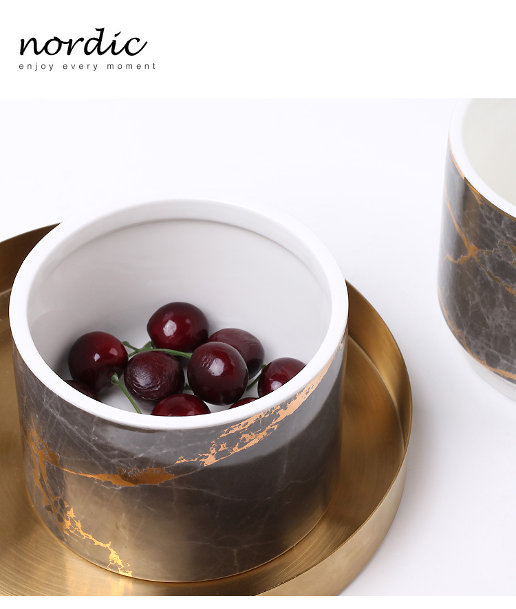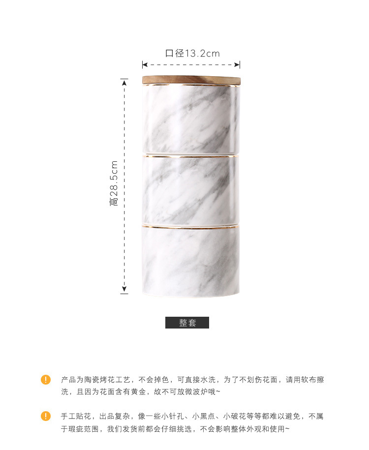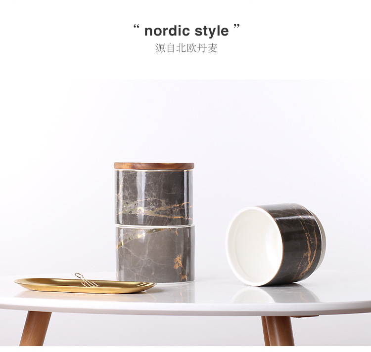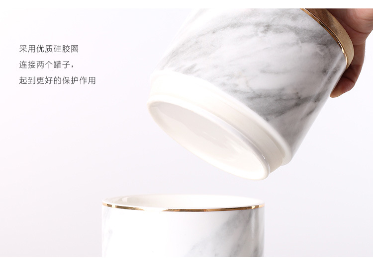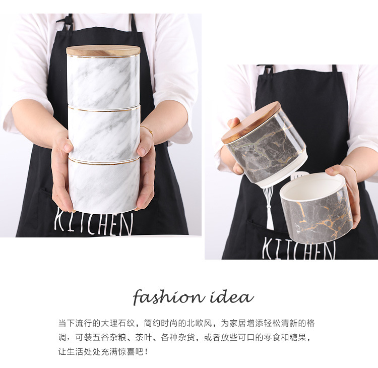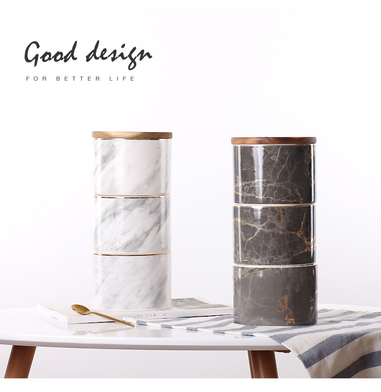 Jarra sellada de cerámica de tres capas de mármol nórdico jarra de almacenamiento de té de café de grano múltiple con tapa Adornos de tarro de almacenamiento