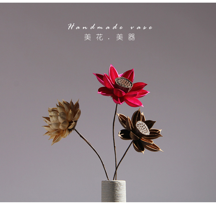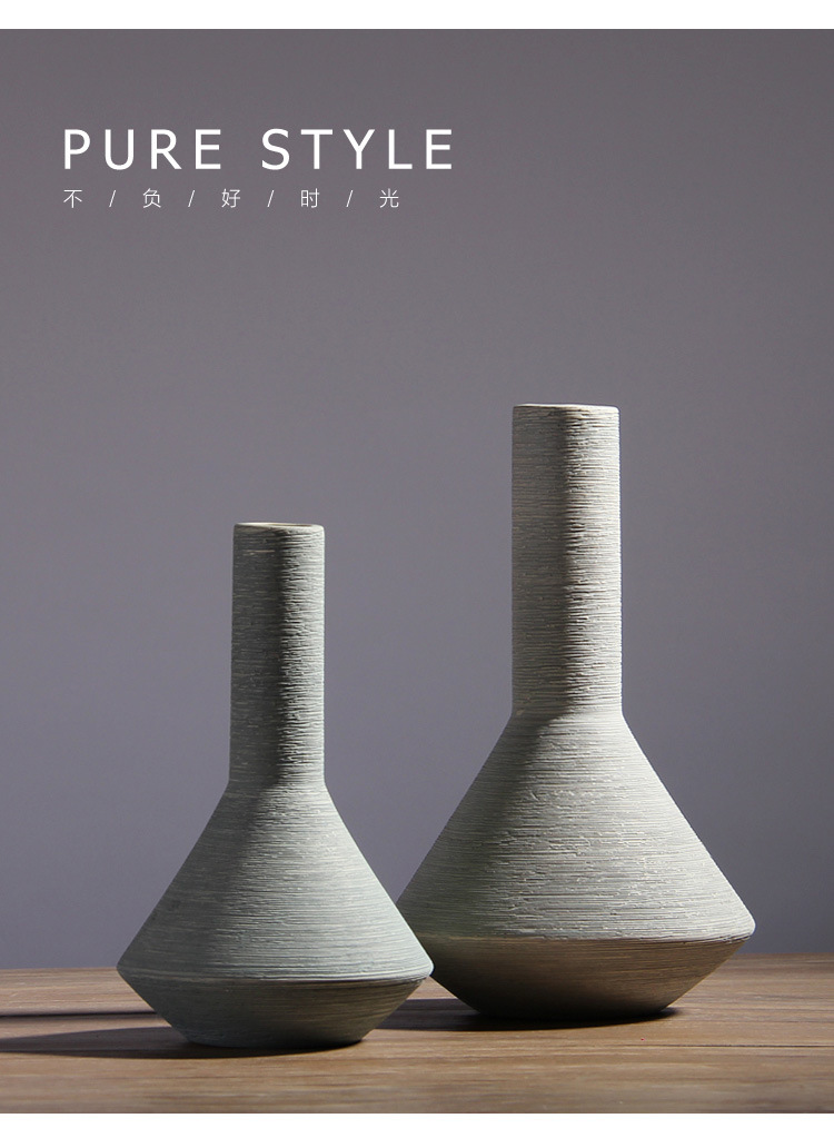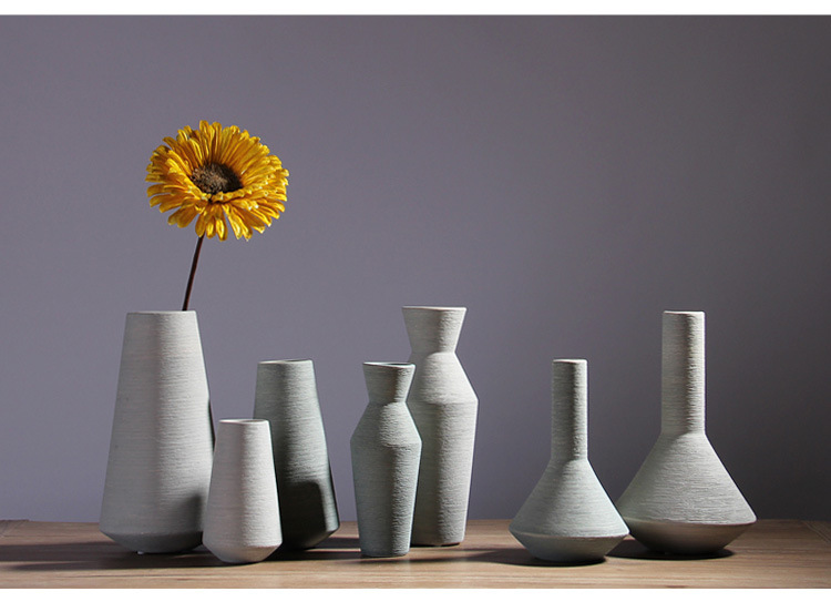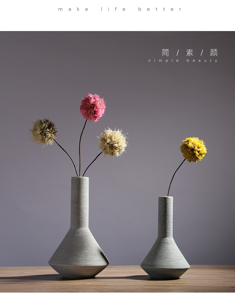 Nuevo chino creativo cepillado llano quema florero de cerámica flor seca arreglo Sala decoración suave adornos