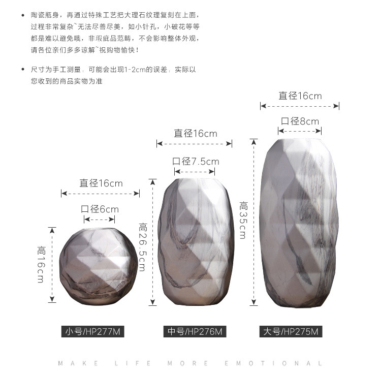 Creativo jarrón de cerámica decoración de la sala de estar decoración del hogar del vestíbulo del hotel artesanías de decoración al por mayor