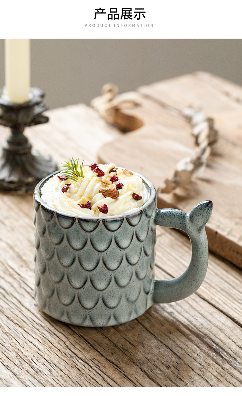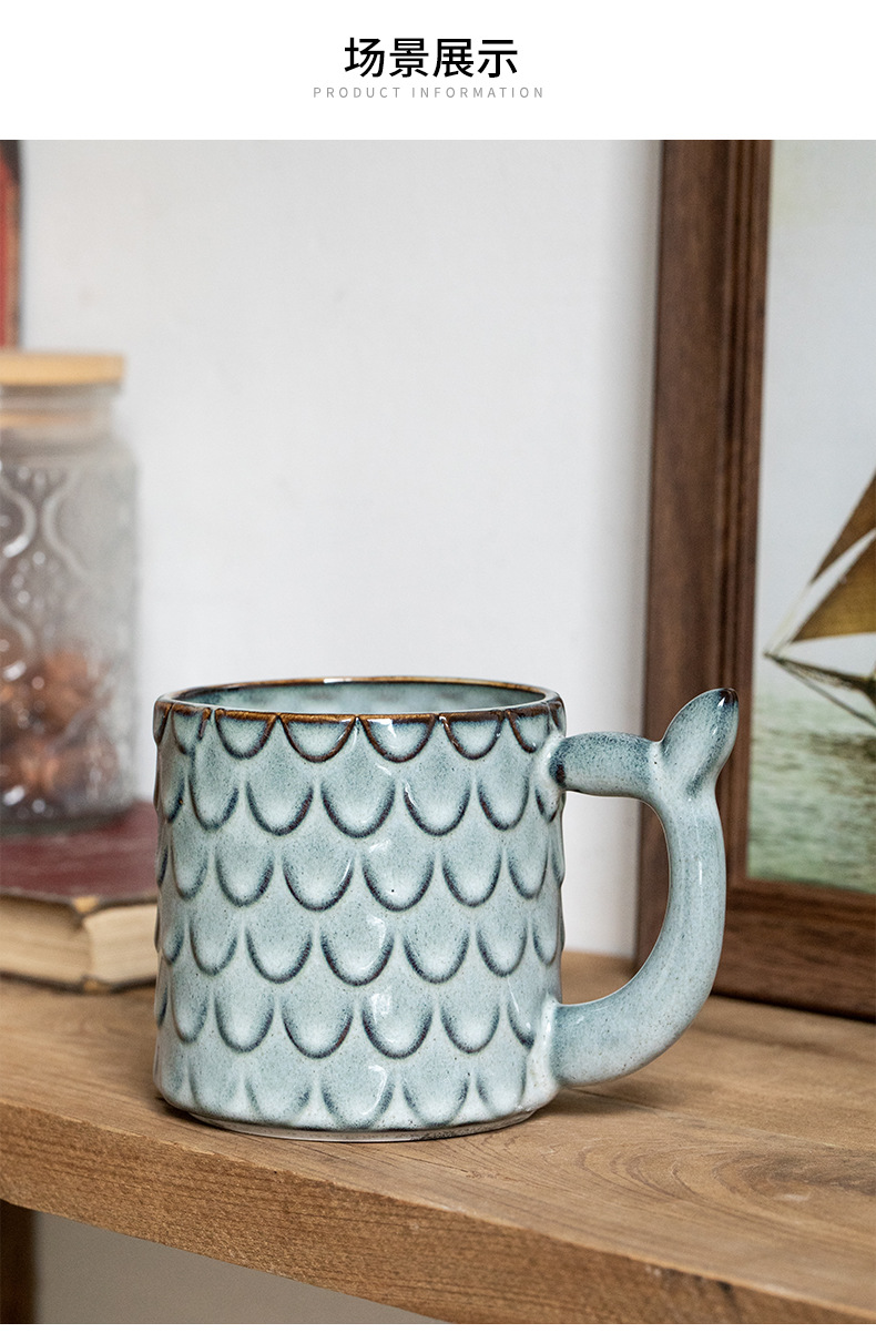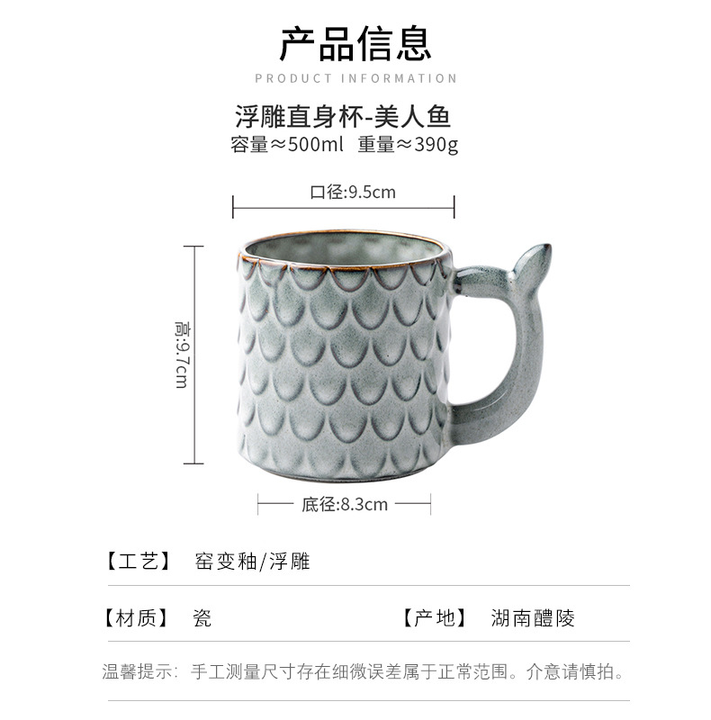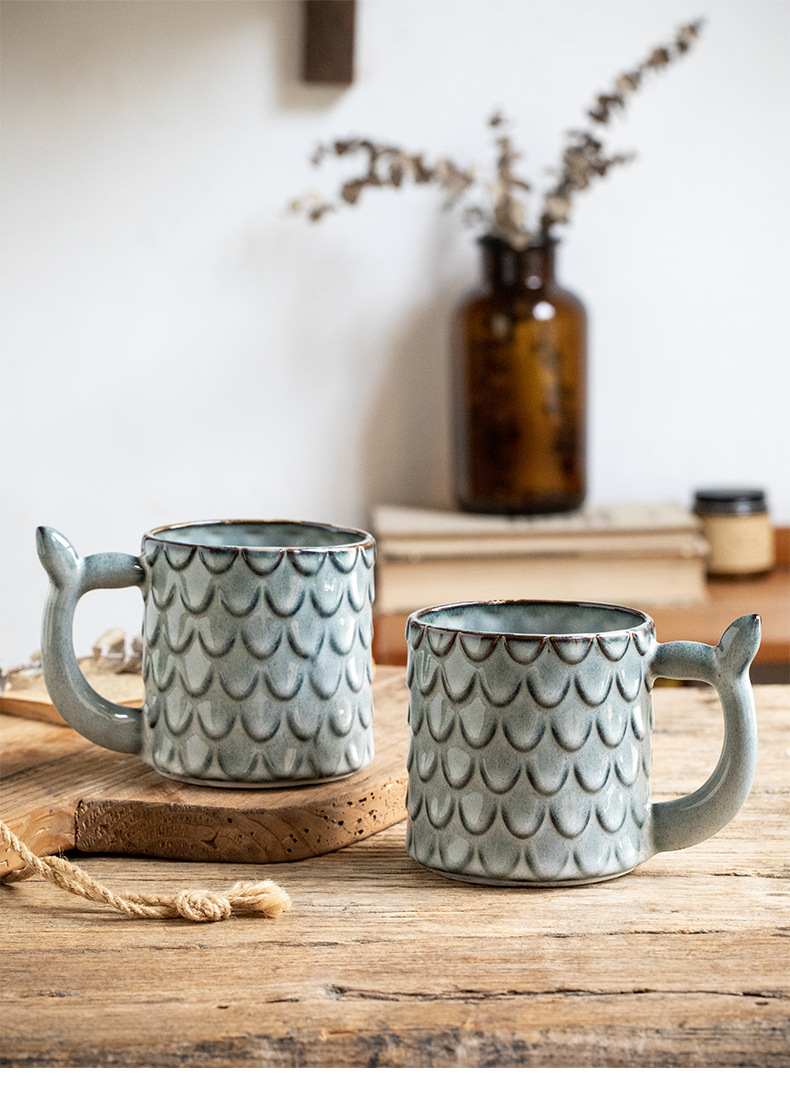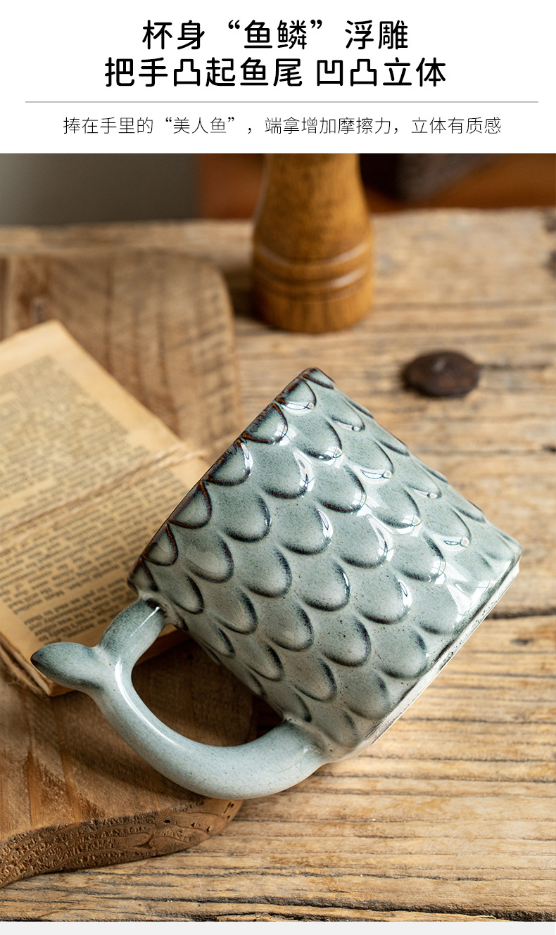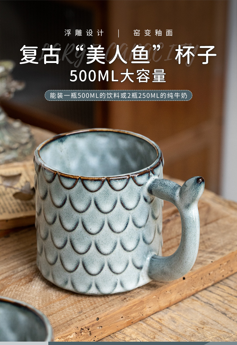 Nuevo diseño en relieve sirena Taza de cerámica personalizada taza vintage horno esmalte taza de café exportación transfronteriza