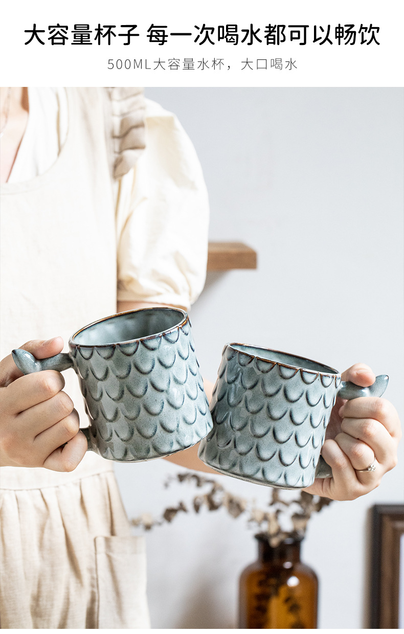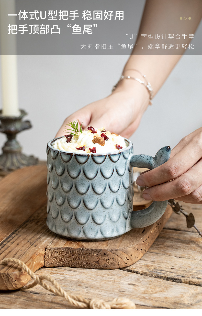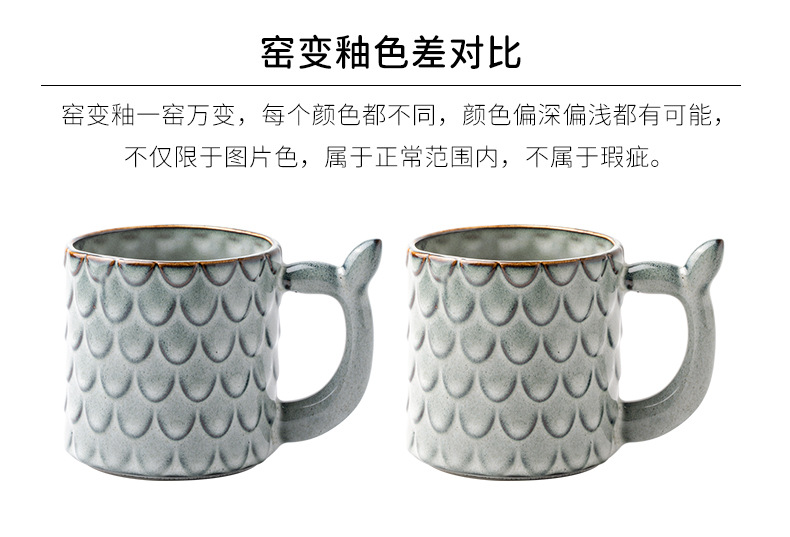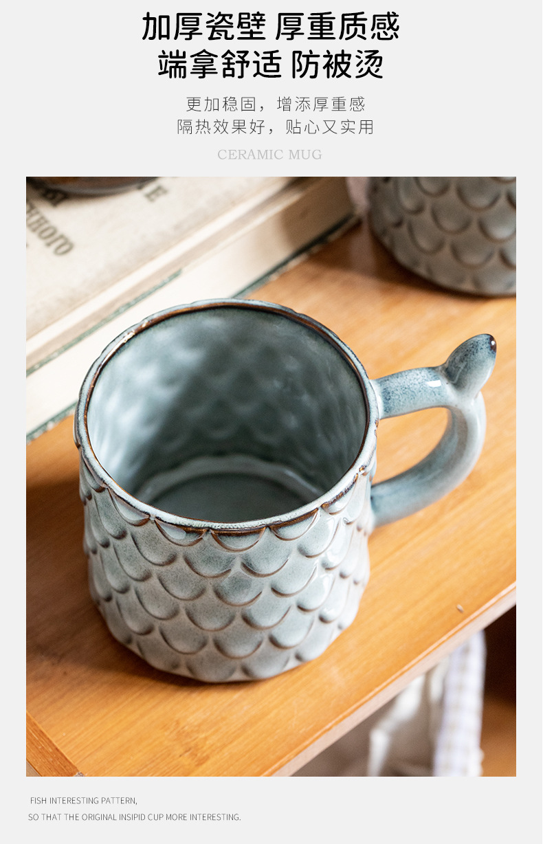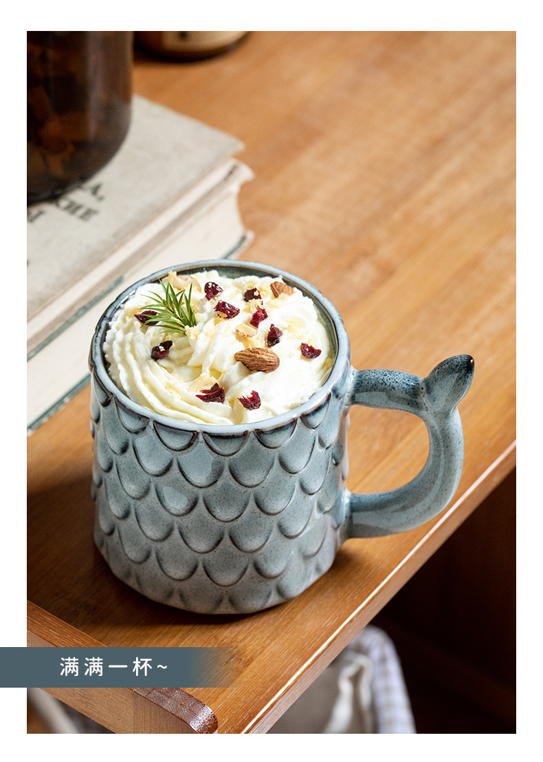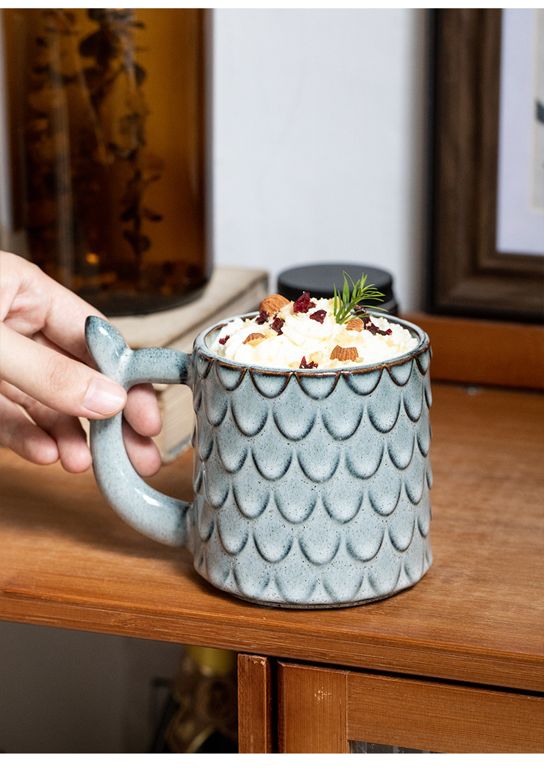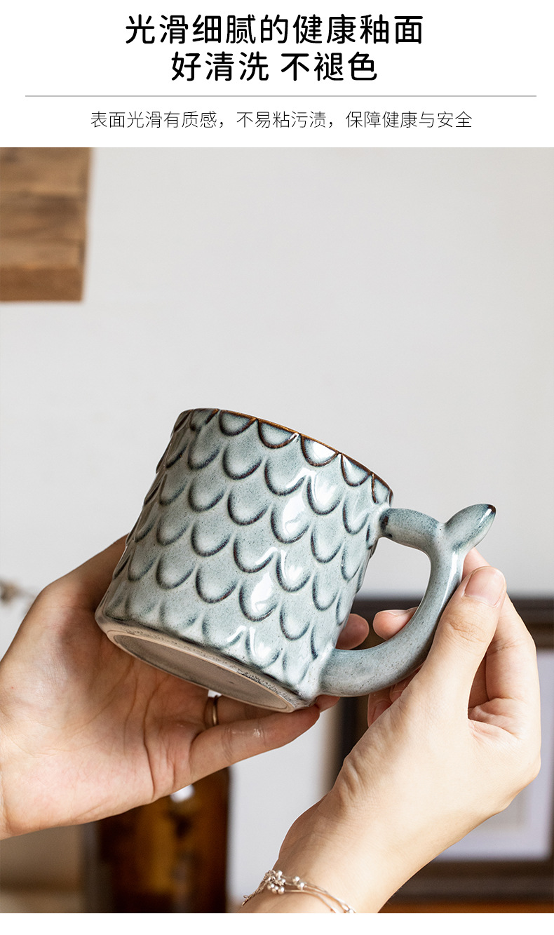 Nuevo diseño en relieve sirena Taza de cerámica personalizada taza vintage horno esmalte taza de café exportación transfronteriza