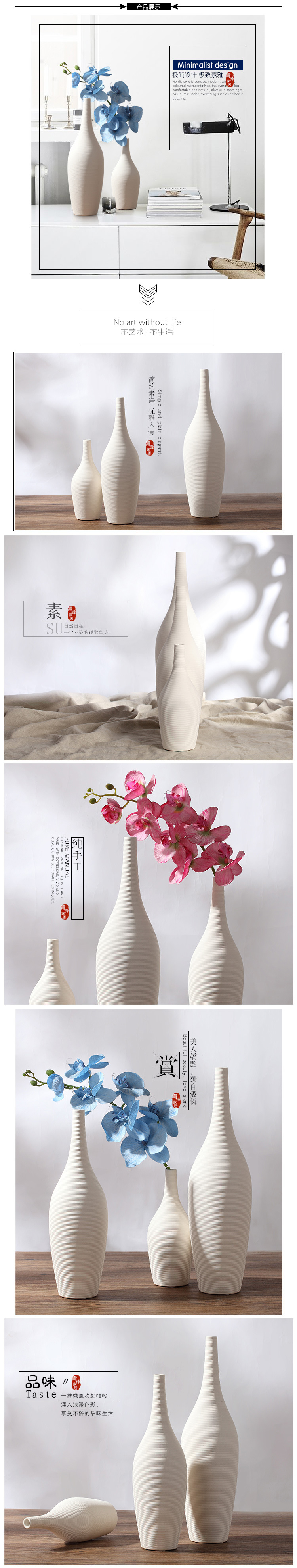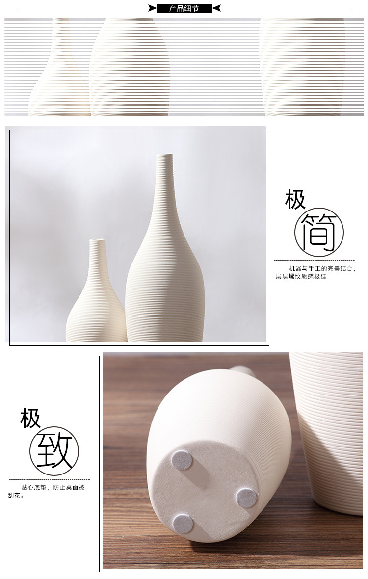 Nórdico ins estilo florero de cerámica decoración artesanía llano quema rayas arte flor seca al por mayor