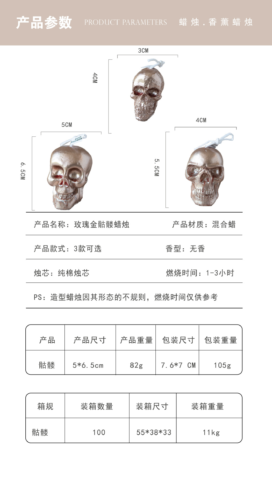 Ventas transfronterizas calientes de oro rosa de alto nivel de cráneo vela vela decoración adornos de Halloween al por mayor regalos de acompañantes