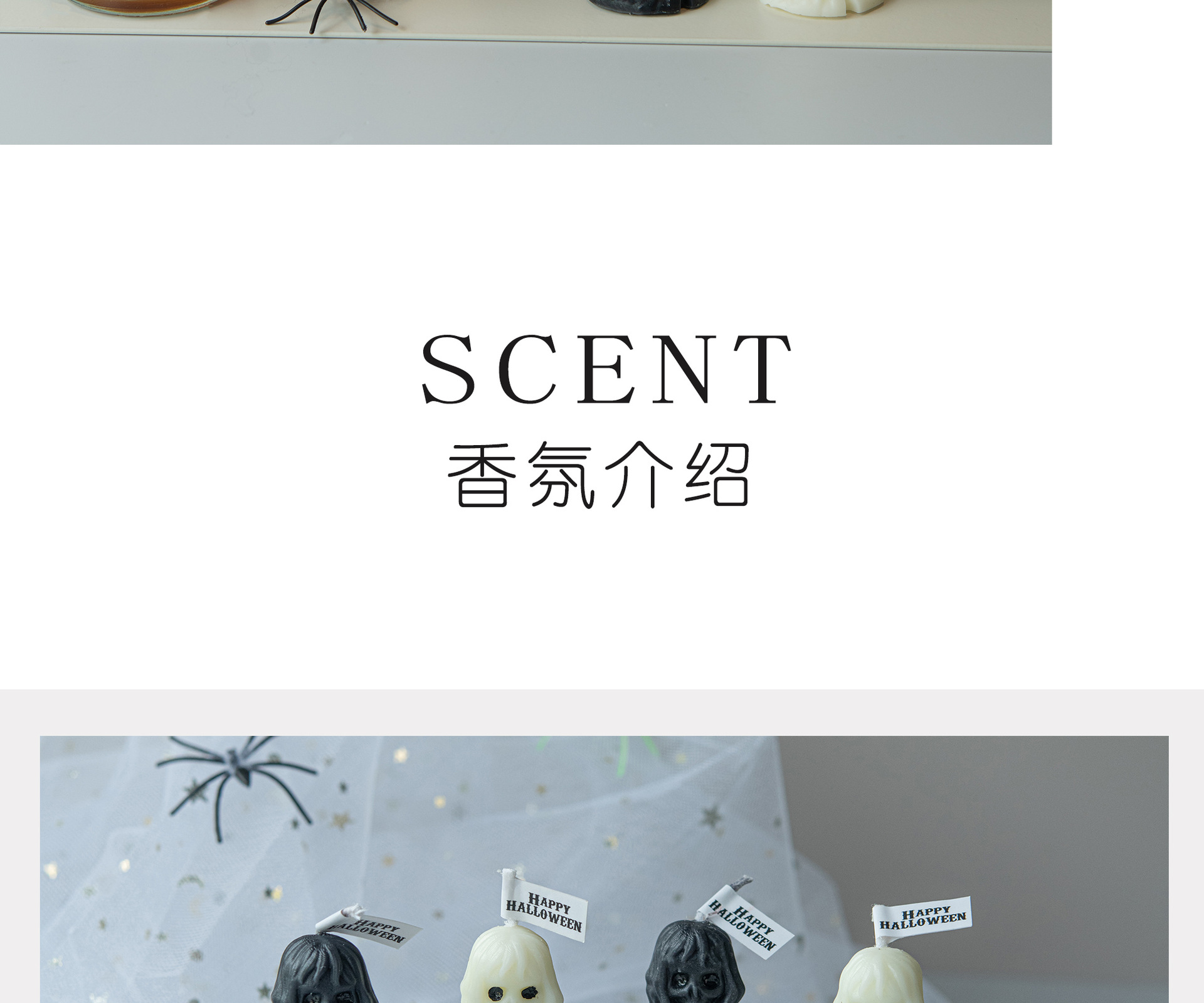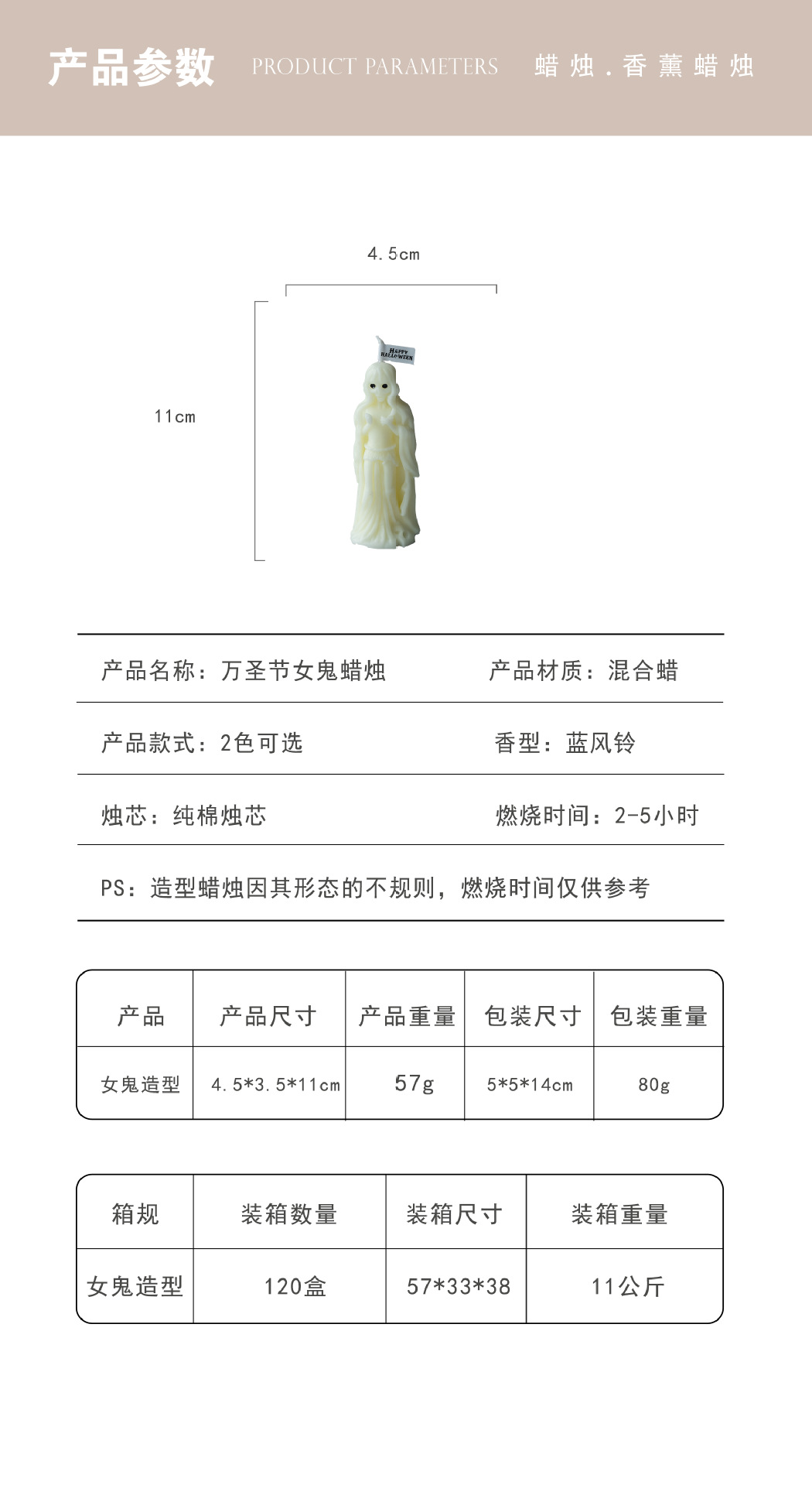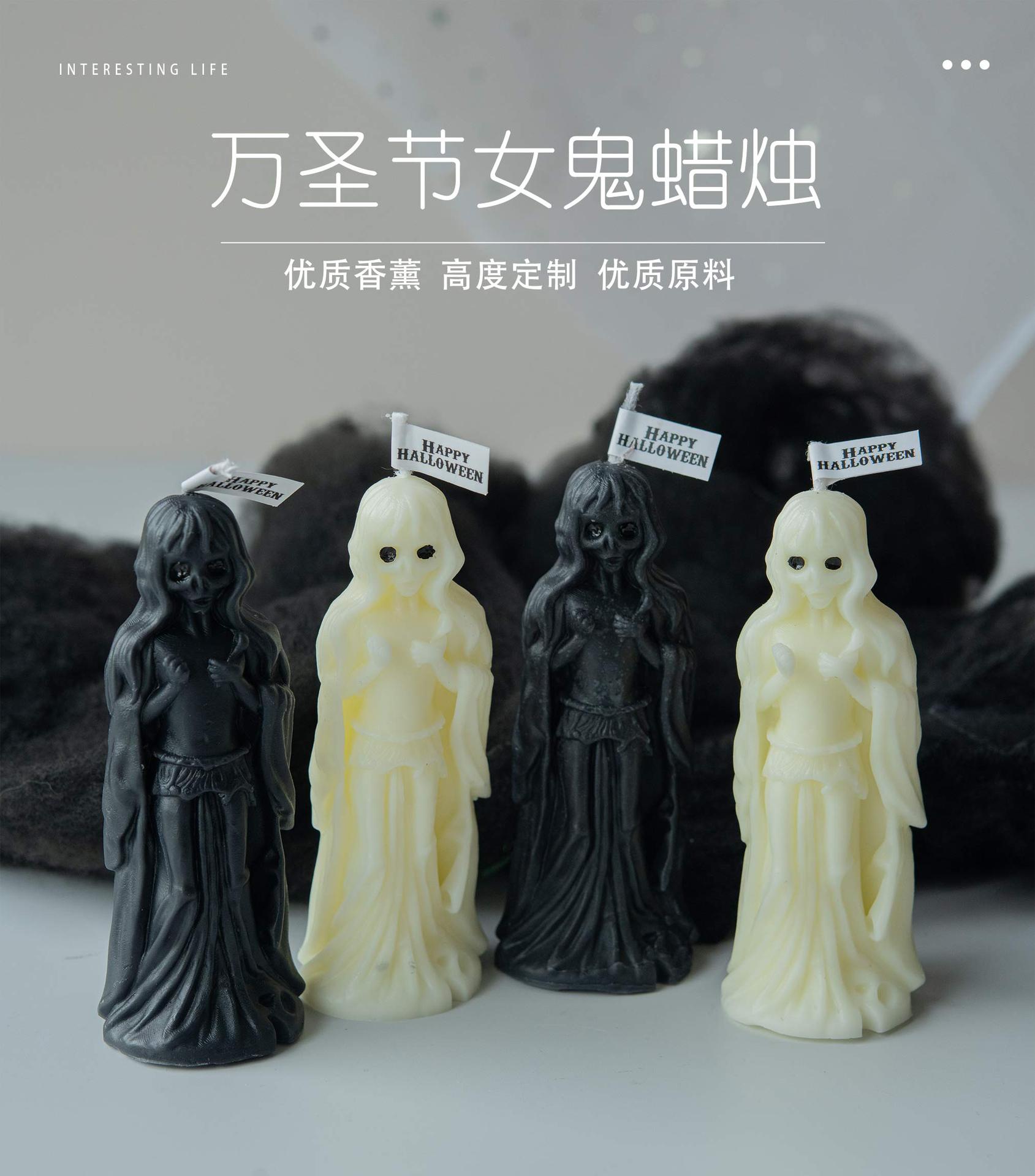 Vela de aromaterapia en forma de fantasma femenino de Halloween de venta caliente transfronteriza, recuerdos en blanco y negro, adornos decorativos explosivos al por mayor
