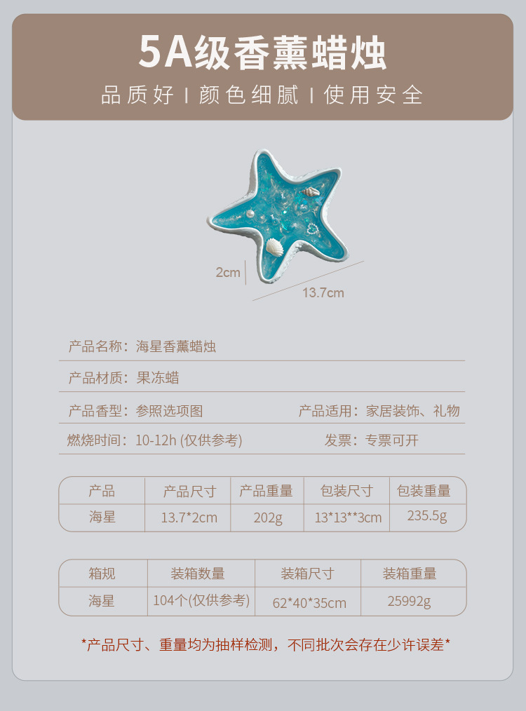 | Producto | Fragancia de estrella de mar, regalo de mano, vela de aromaterapia de caracol |