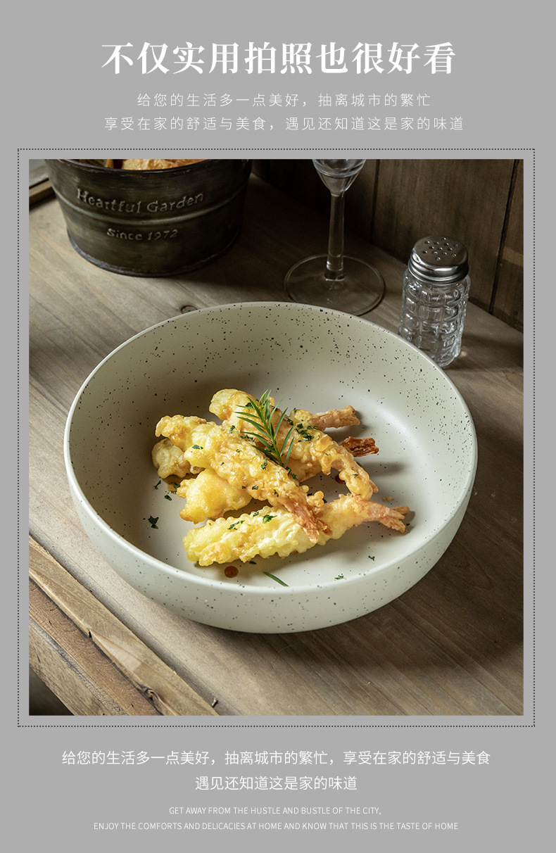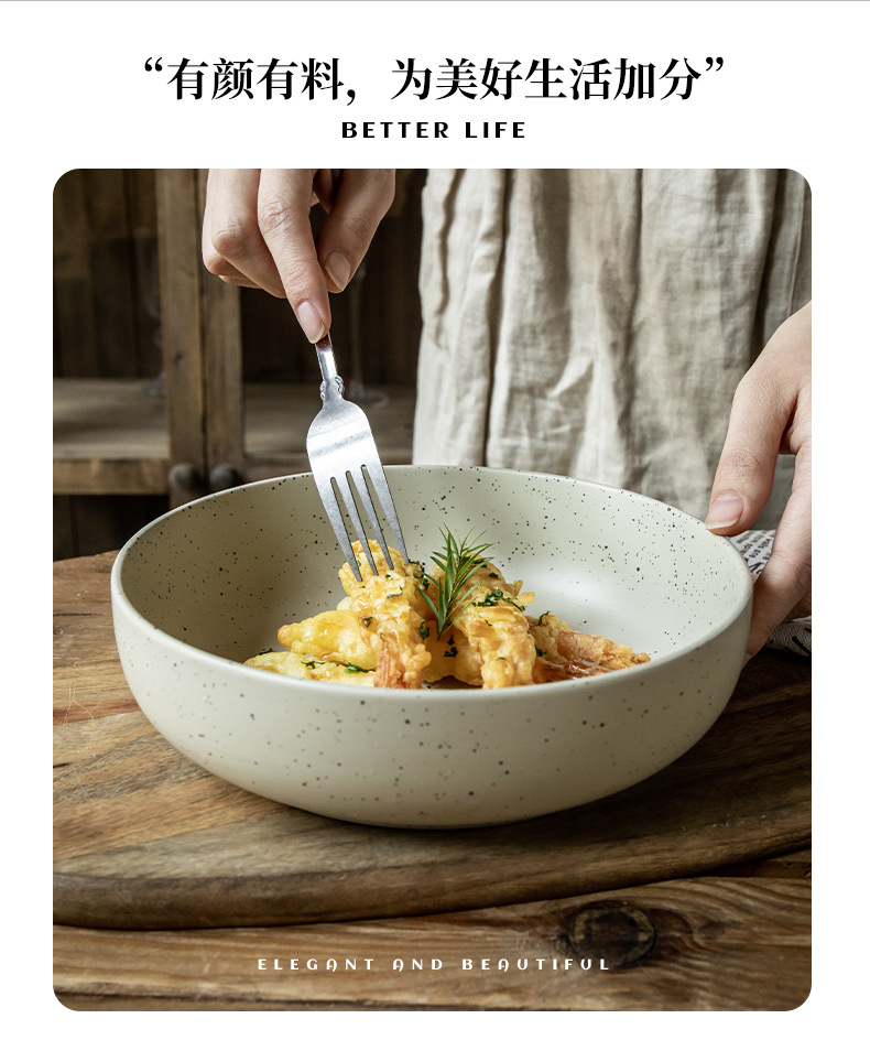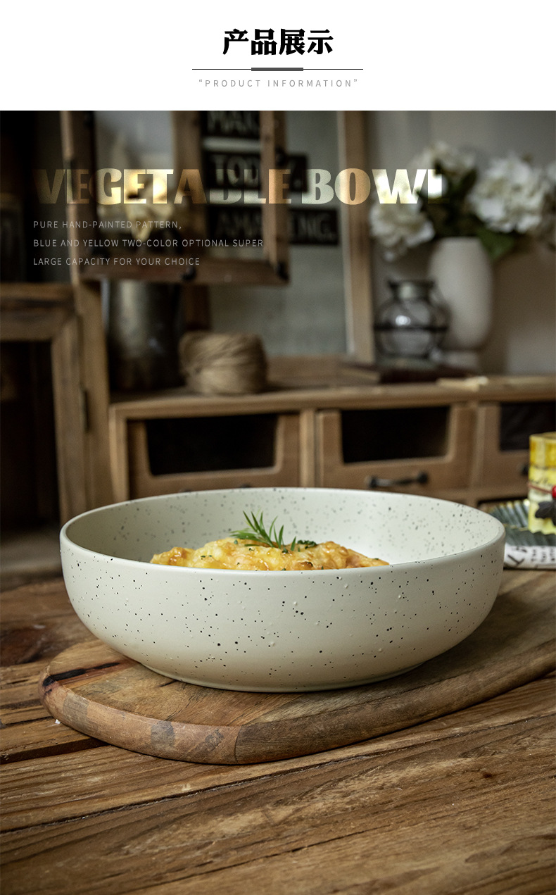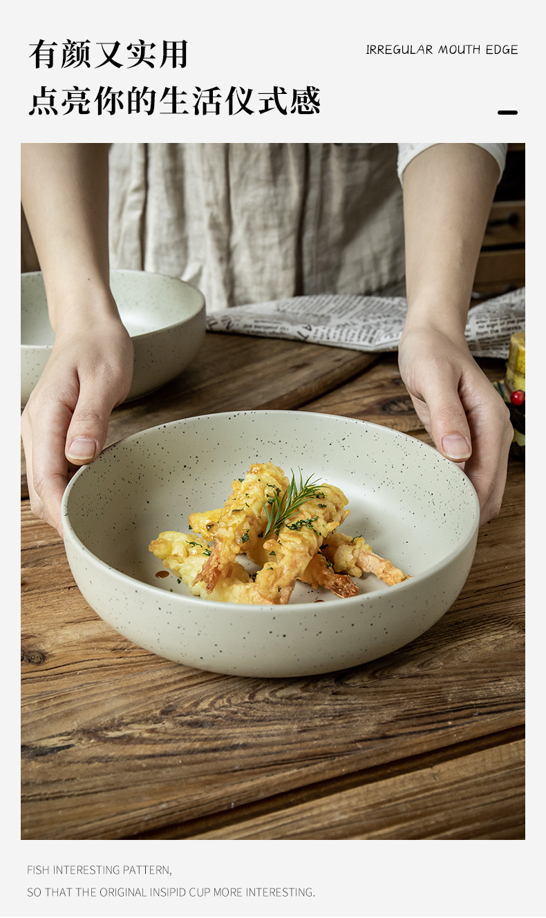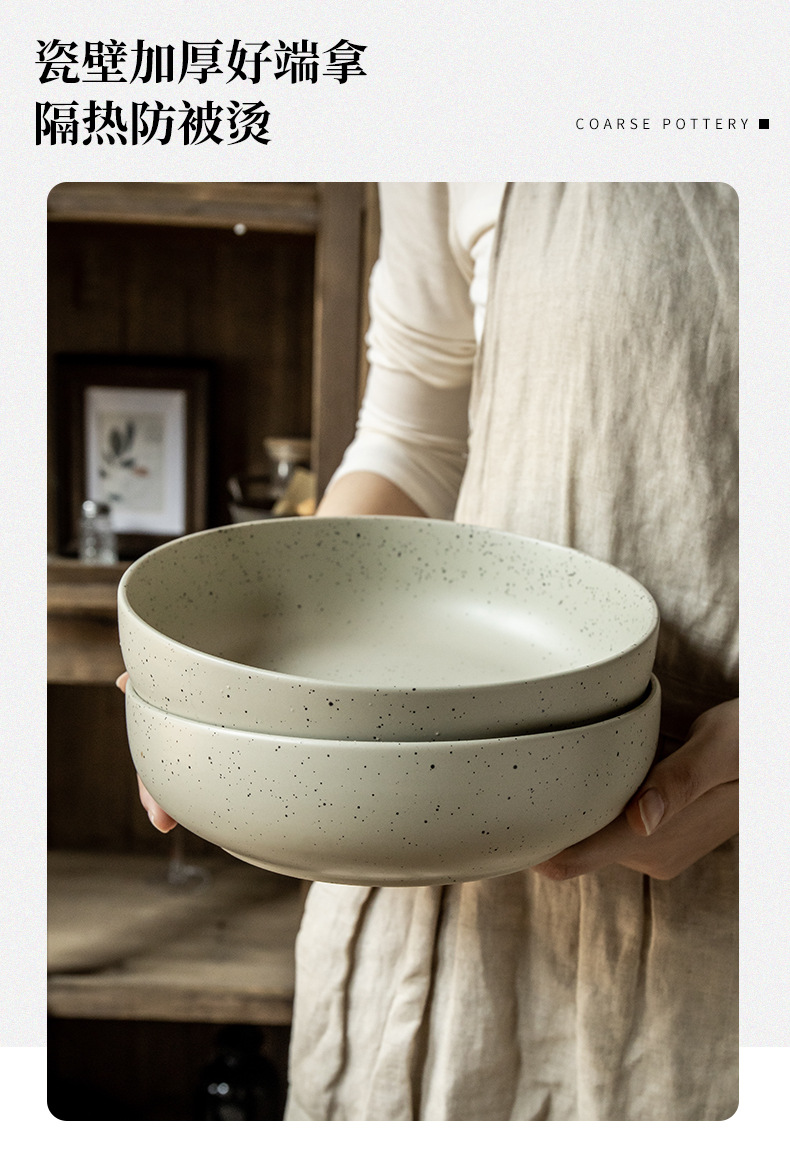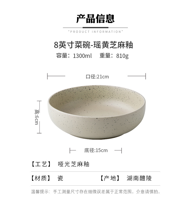 Práctico y grueso cuenco de sésamo de 8 pulgadas cuenco de esmalte cuenco de ensalada retro cuenco de exportación transfronteriza cuenco de cerámica