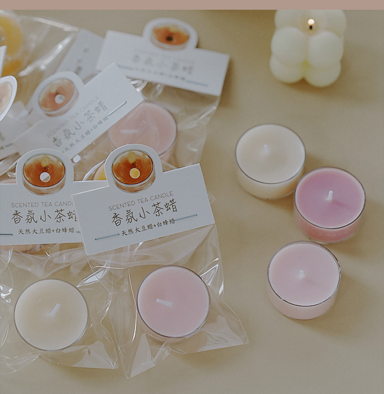Colorido redondo pequeño té fragancia regalo ambiente recuerdo boda día de San Valentín velas aromáticas hechas a mano al por mayor