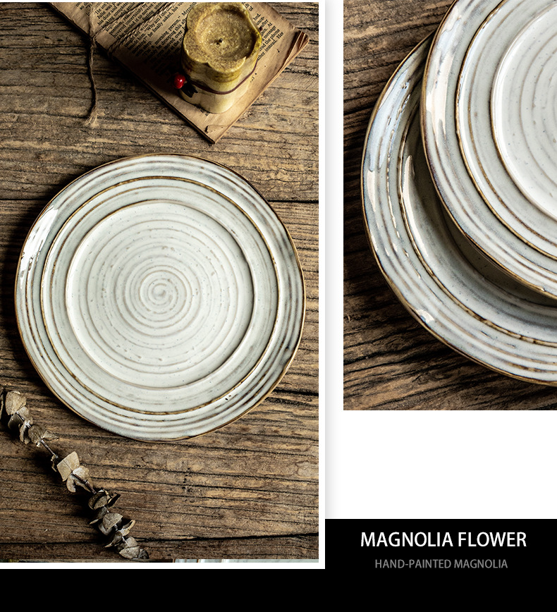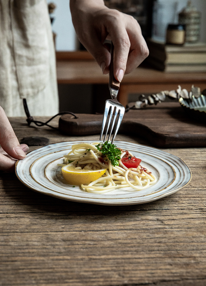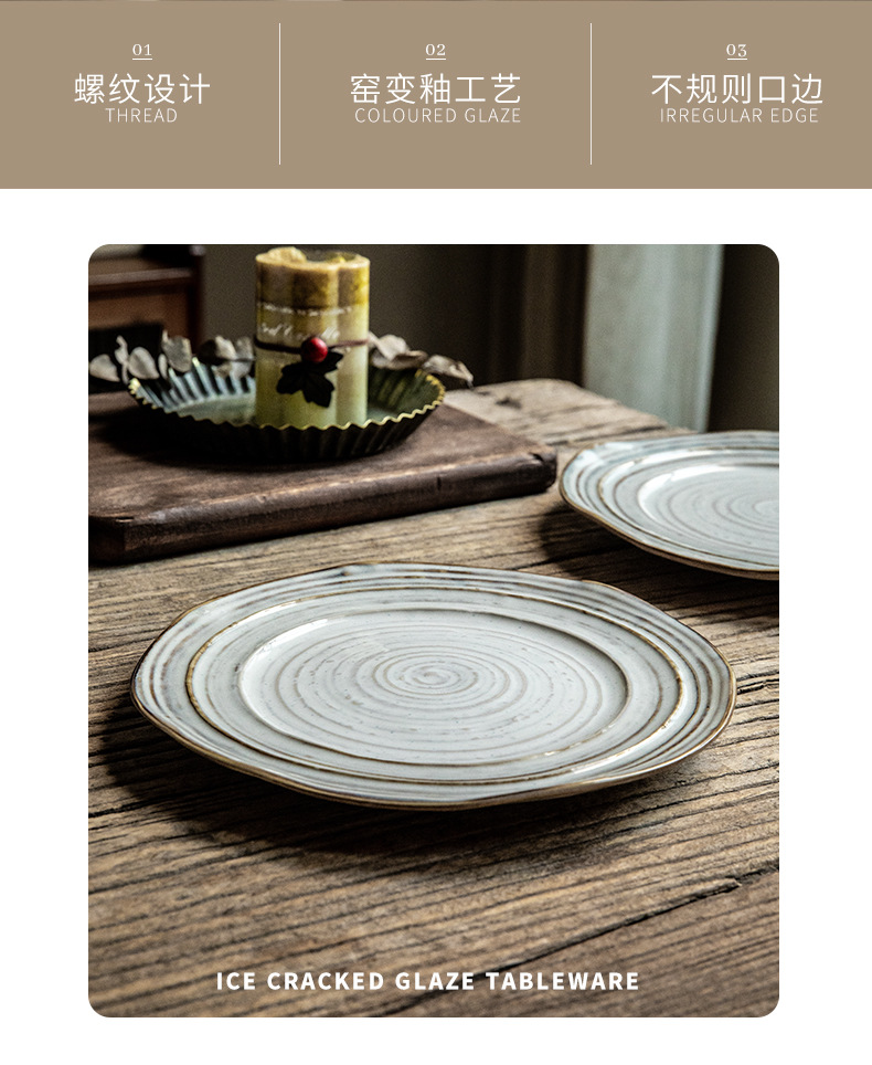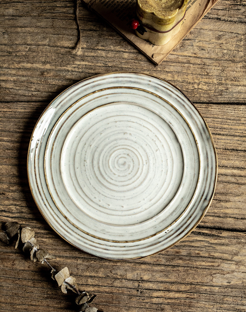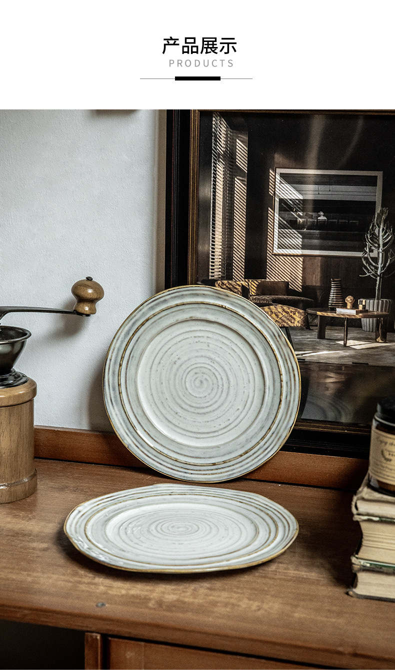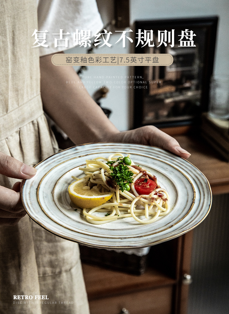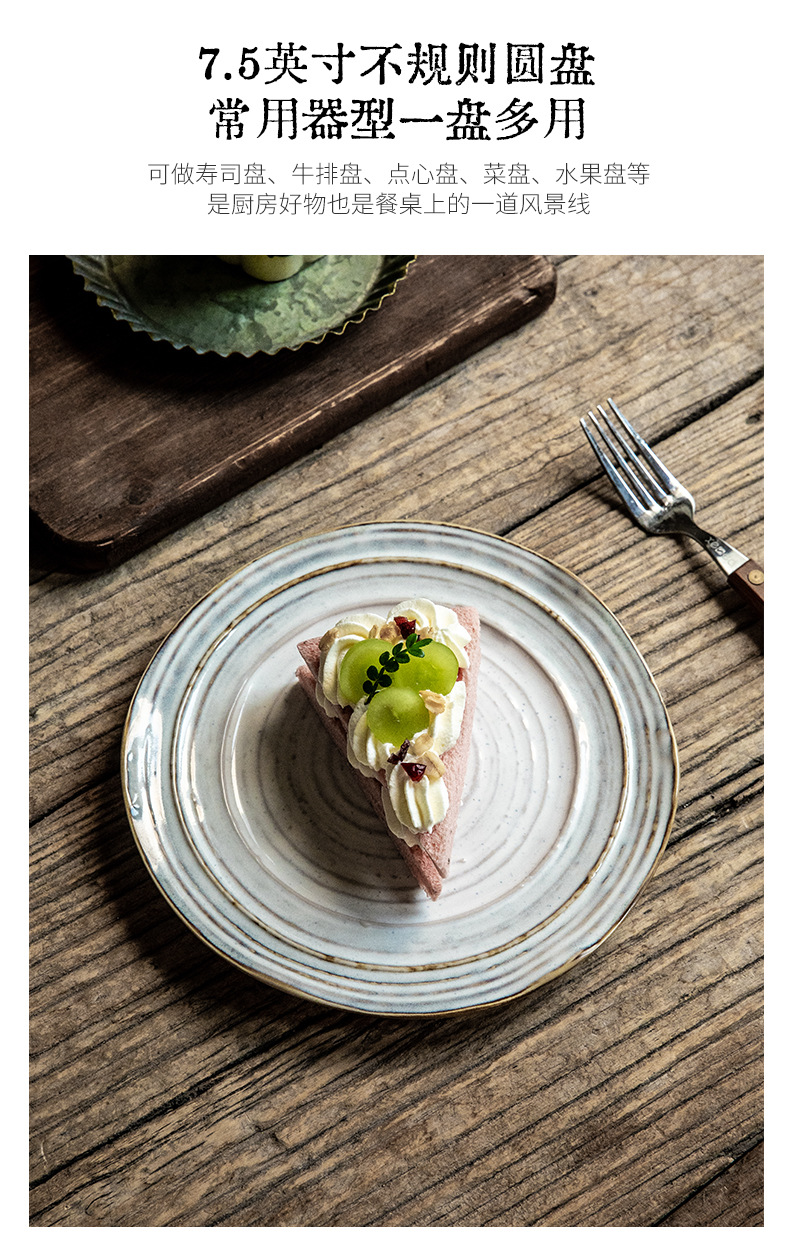 Placa de rosca irregular increíble, placas de cerámica de 7,5 pulgadas, placas de comida occidentales retro, placas de filete de exportación de restaurantes