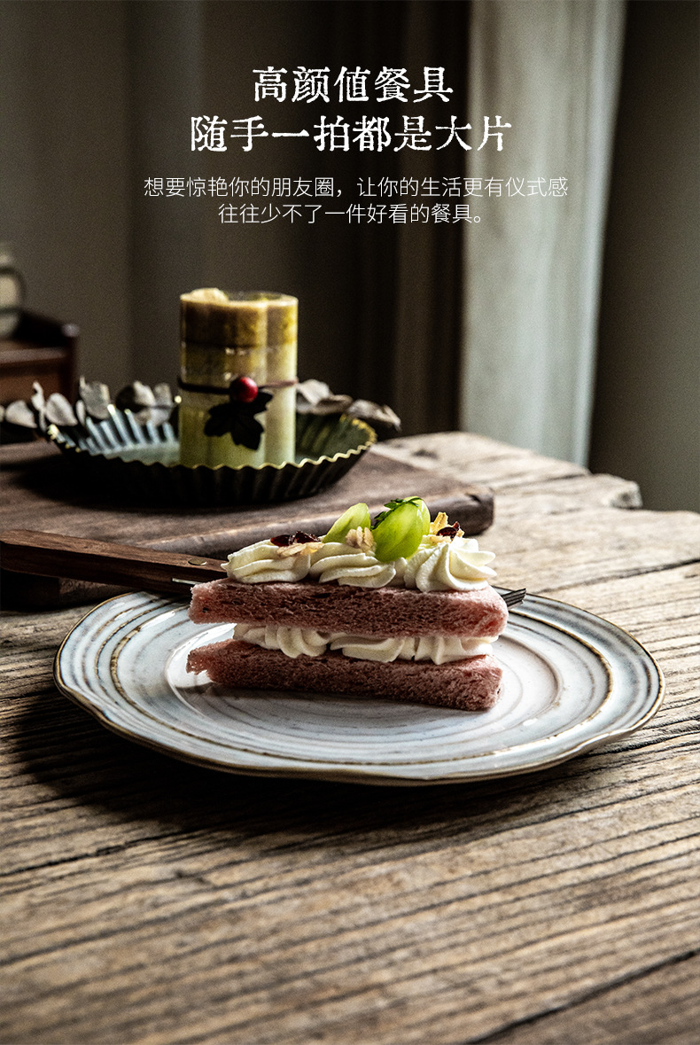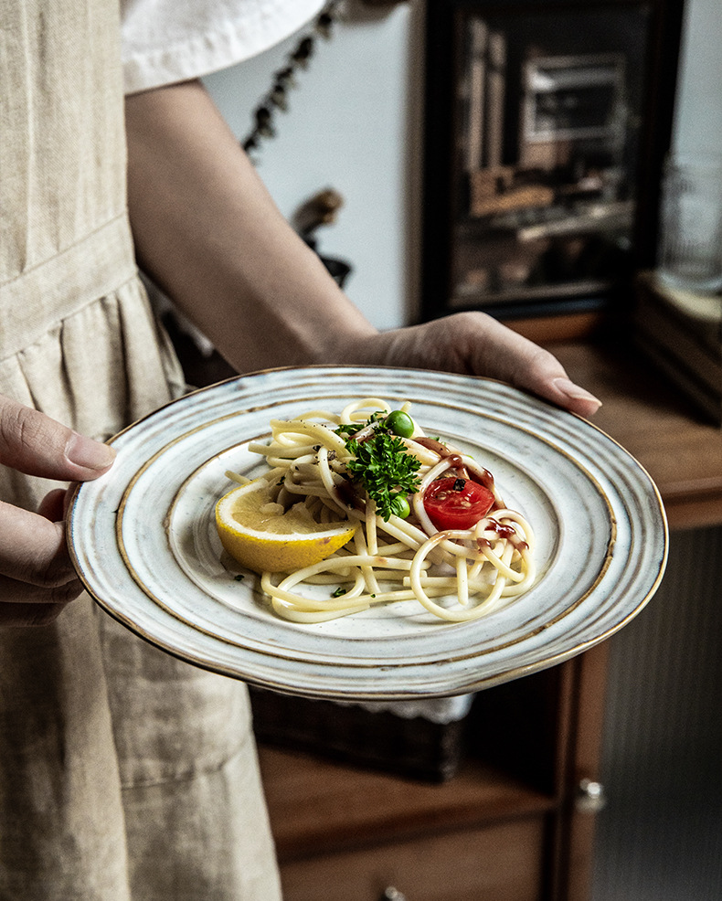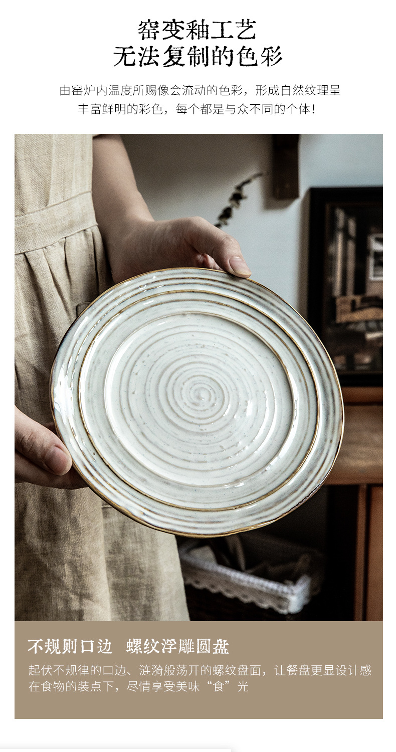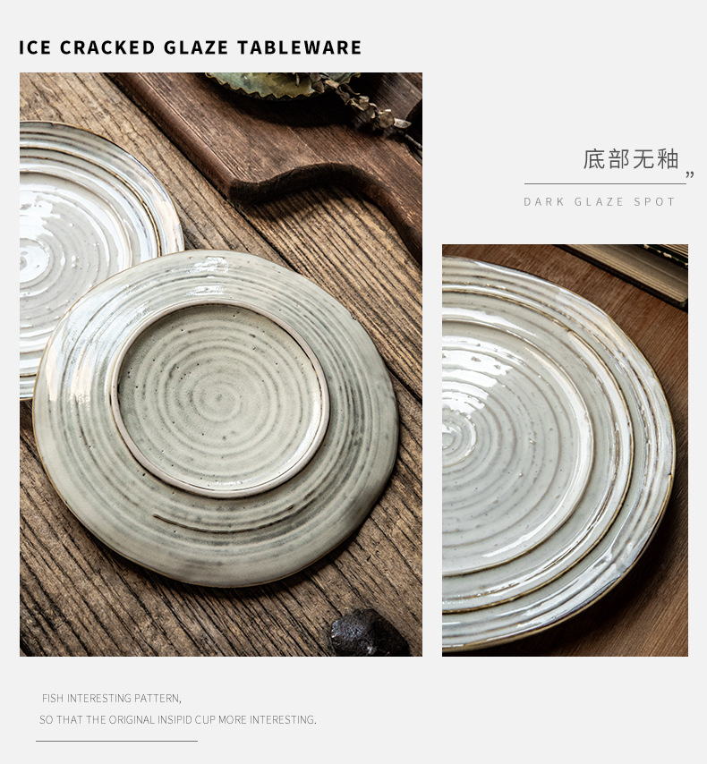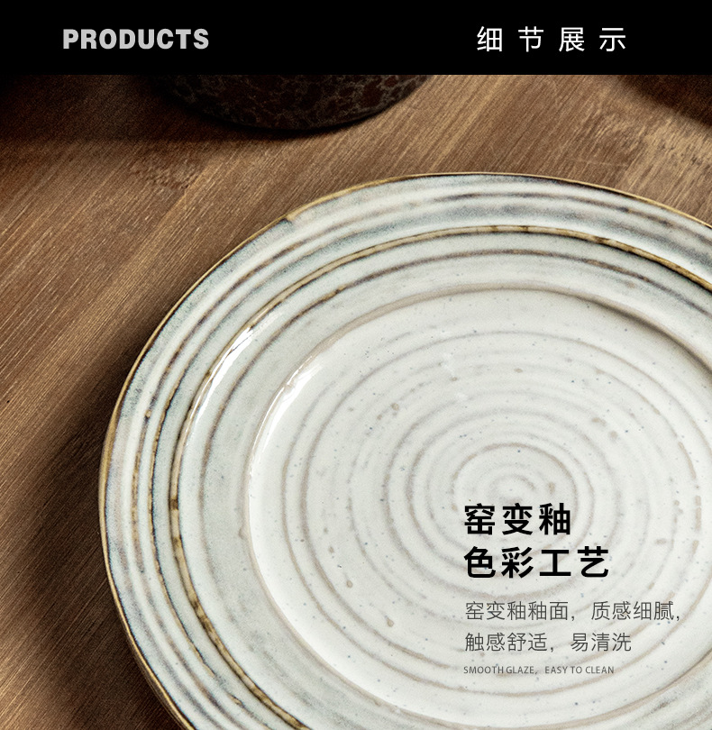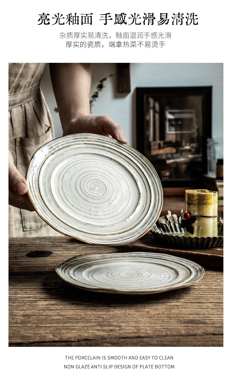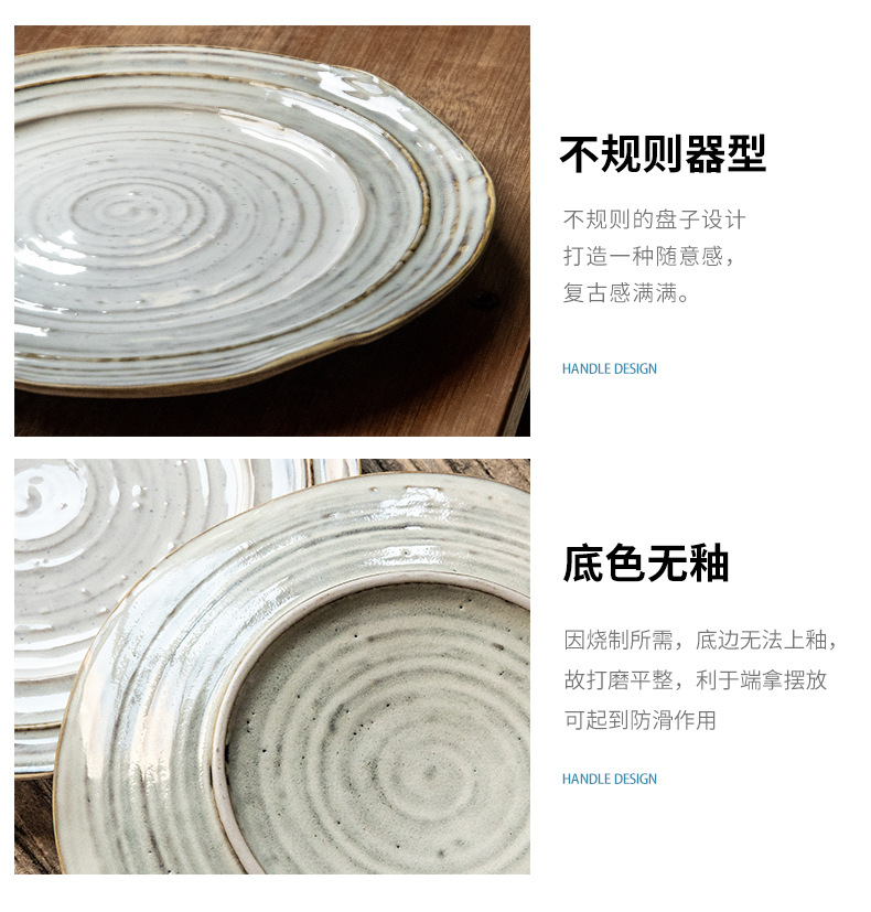 Placa de rosca irregular increíble, placas de cerámica de 7,5 pulgadas, placas de comida occidentales retro, placas de filete de exportación de restaurantes