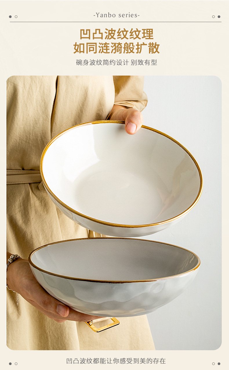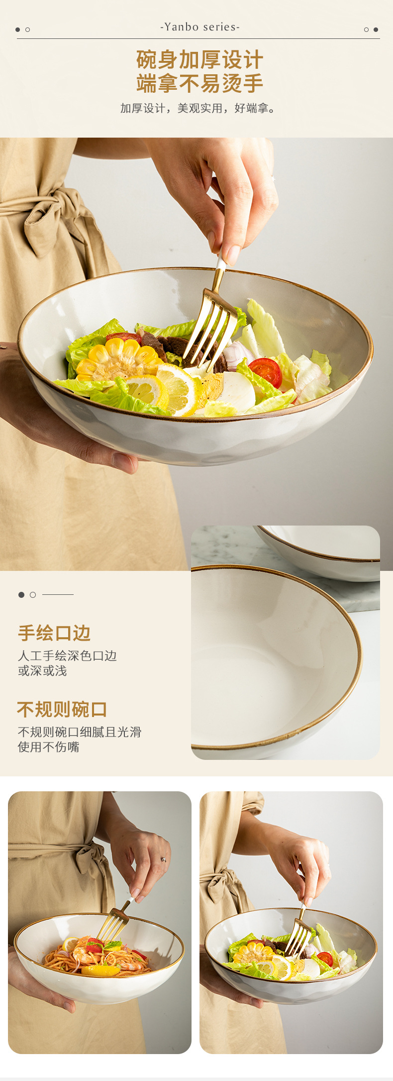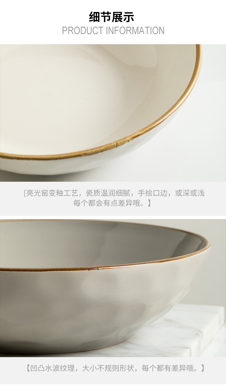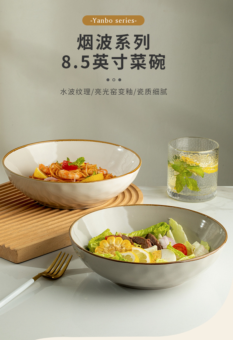 Tacos de 8.5 pulgadas de cigarrillos retrógrados Feng Shui ondulados tazón de ensalada tazón de cerámica personalidad exportación transfronteriza simple cubiertos