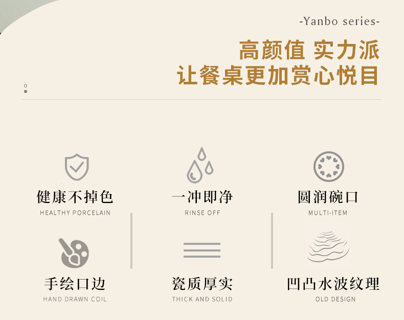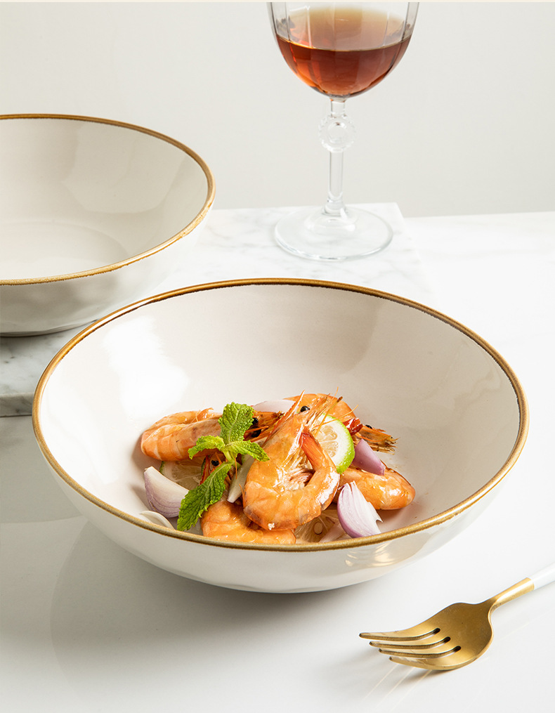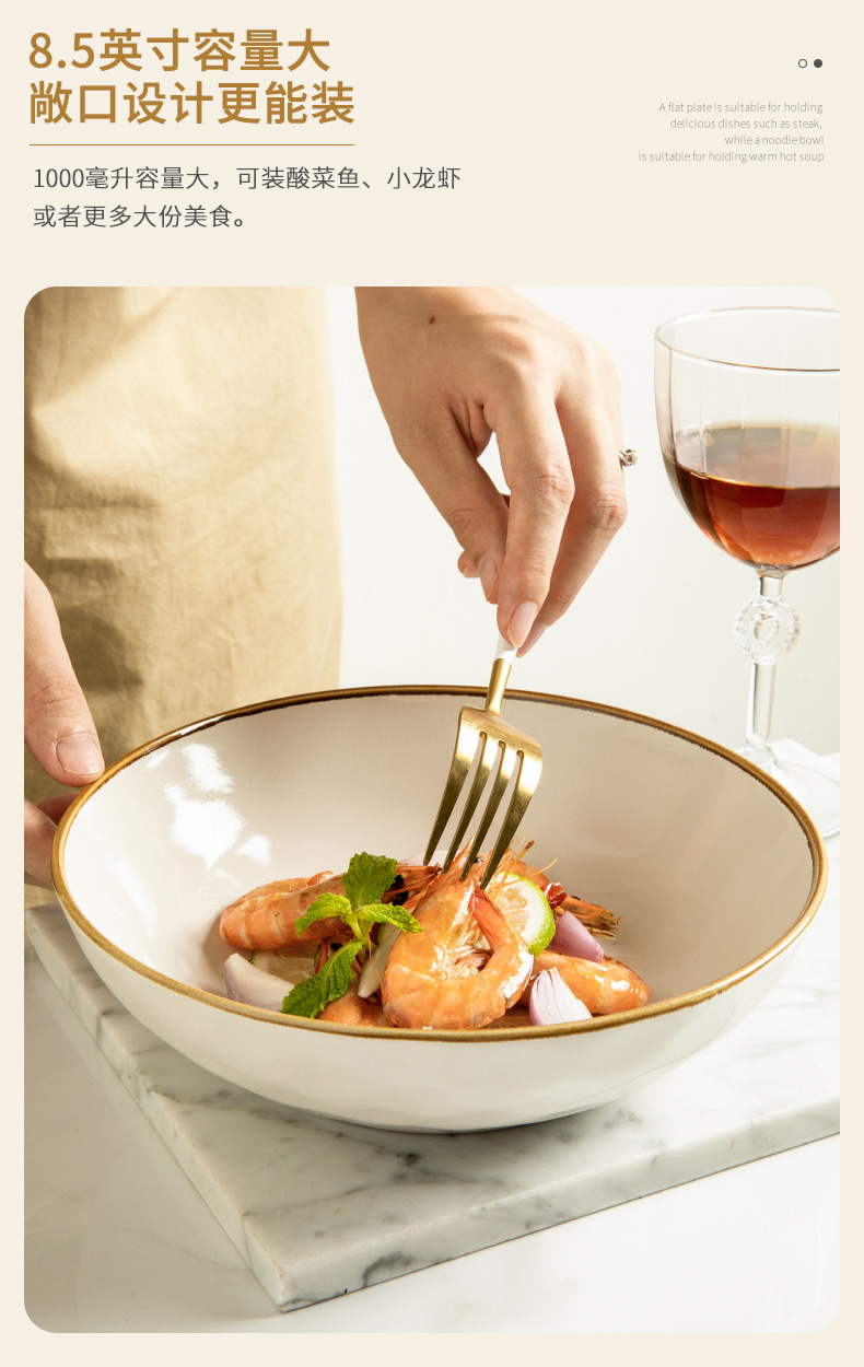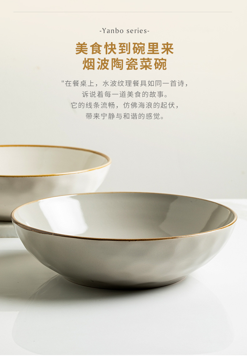 Tacos de 8.5 pulgadas de cigarrillos retrógrados Feng Shui ondulados tazón de ensalada tazón de cerámica personalidad exportación transfronteriza simple cubiertos