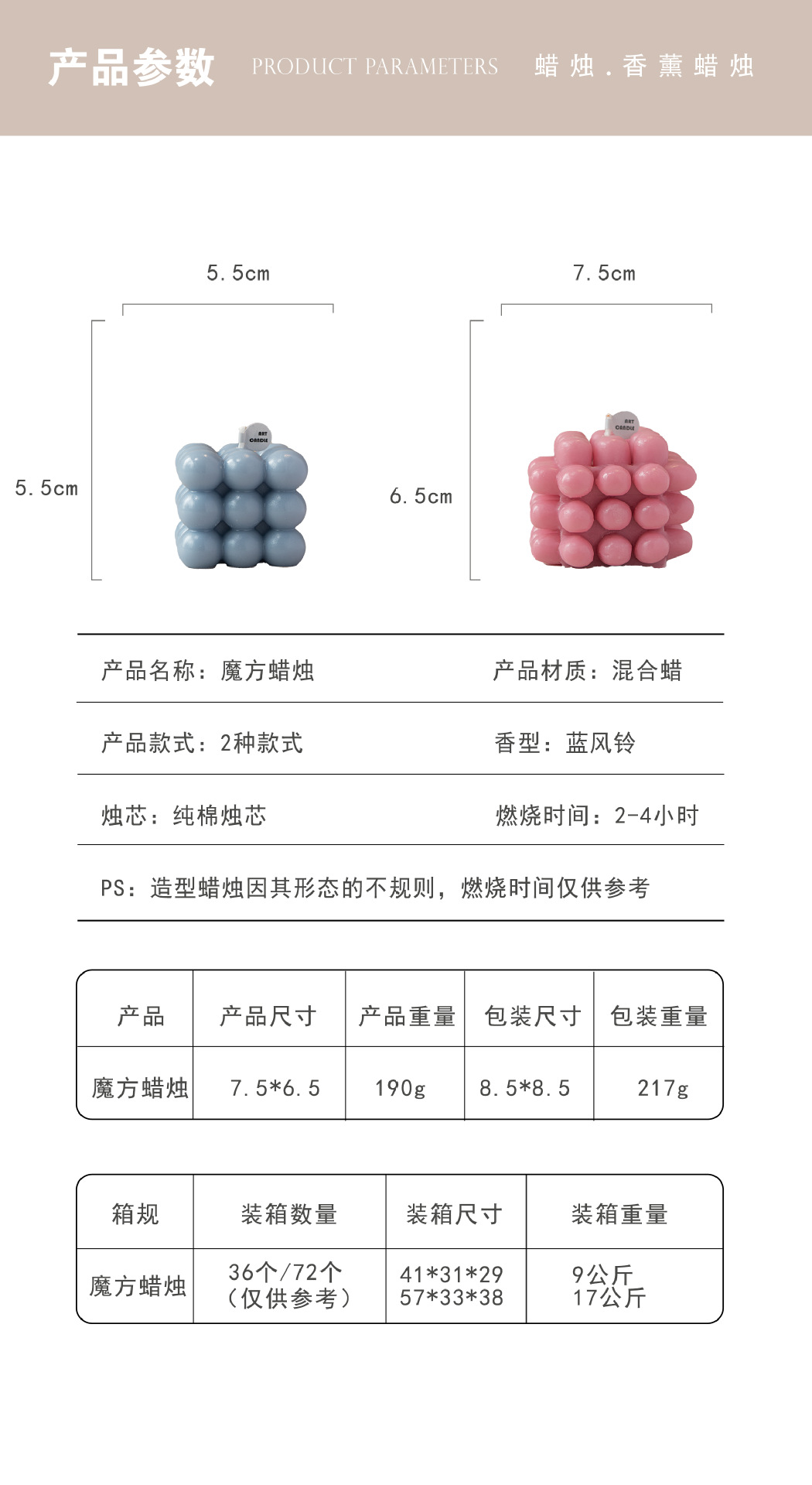 Explosión de atmósfera transfronteriza modelado cubo de rubico aroma vela sin humo dulce lindo regalo regalo de mano al por mayor venta caliente